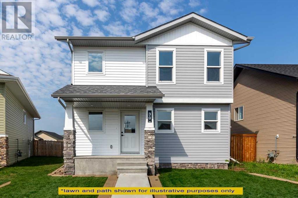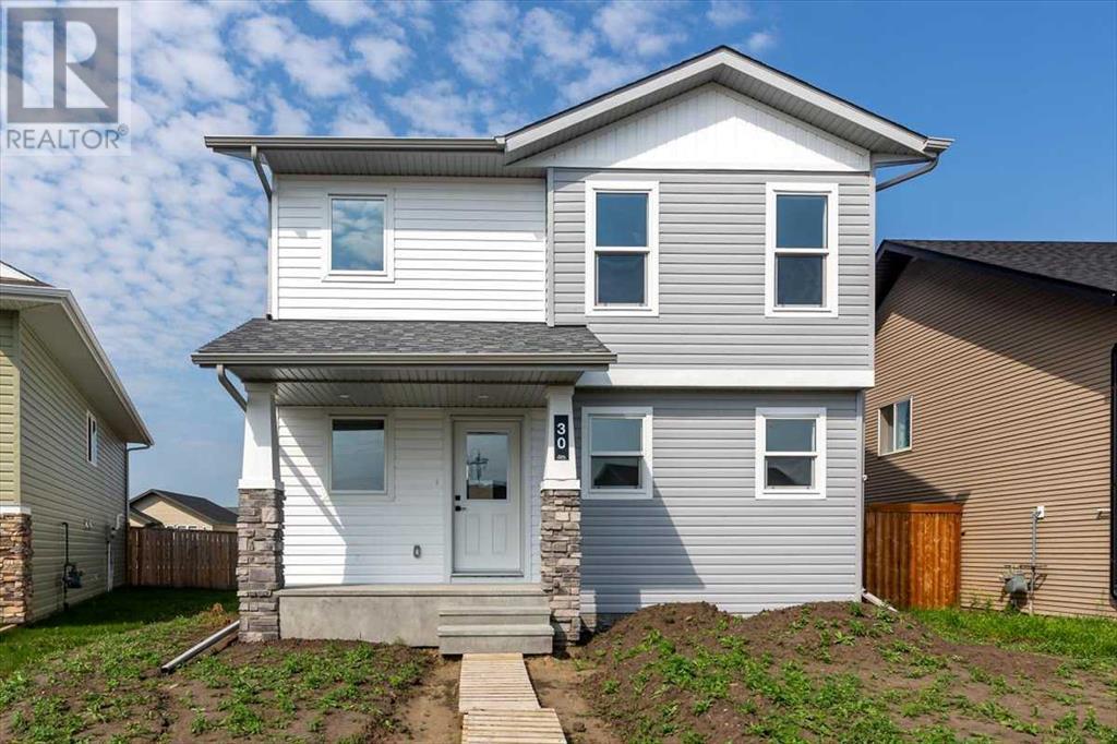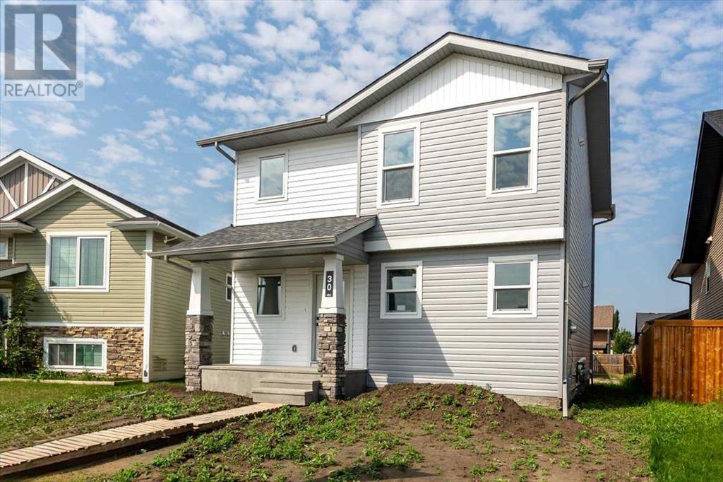 Welcome to 30 Cascade Street in Blackfalds! This quality family home was Built by Multiple Award winner builder Abbey Platinum Master built. This home is situated in desirable Cottonwood , close to all amenities, walking trail and numerous greenspaces. Morning coffee on the front veranda? Evening Sunset with a glass of Red off the west facing back deck. This home is perfect for the growing family. Step inside and be wowed by the massive foyer, the large numerous triple pane windows, the attention to detail and the upgrades throughout. The main floor is the hub of the home hosting a massive living room, convenient 2pce bath, plus a flex room for working out or kids play area. The two-tone kitchen boasts a centre island with sink, full tile backsplash, walk-in pantry, loads of prep area, numerous cabinets and pot and pan drawers. The upper level is complete with 3 good sized bedrooms, laundry area, 4pce bath and storage space. The primary bedroom has a 3pce bath(4ft shower) and spacious walk-in closet. The lower level is undeveloped, but it could host an additional bedroom, bathroom, and family room! There is ample space on this lot to build a detached garage but check with the town to ensure of the location. (id:22211)