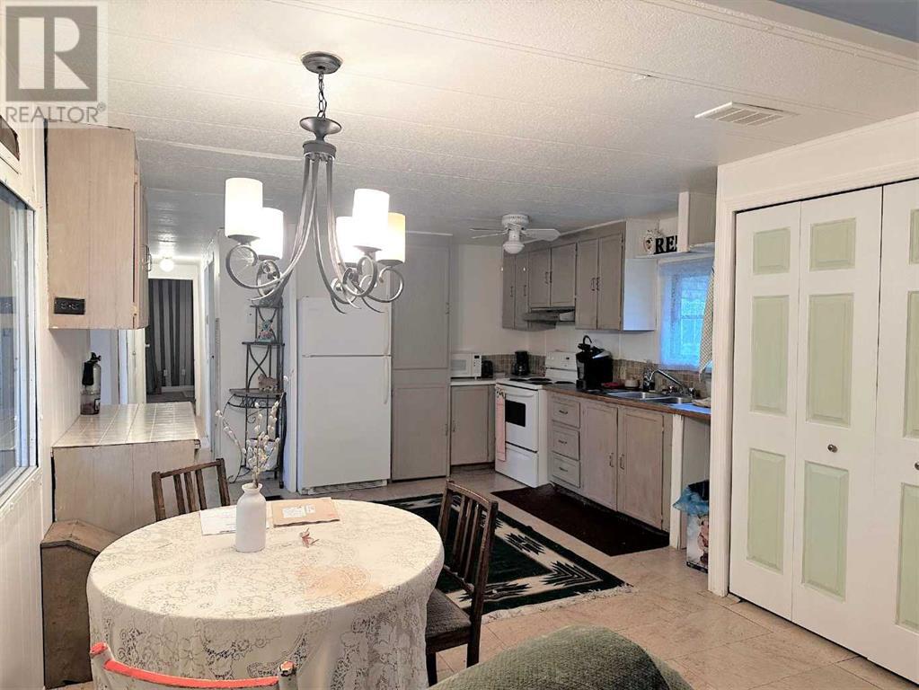 Welcome to this cute and cozy home in the Blackfalds Estates Mobile Home Park. This very affordable 1066 Sq Ft home would make a great place for the first time home owner, Investor or retirement home. Walk into a spacious boot room with a new roof and loads of room for storage. From there you will enter into a cozy den that could make a perfect home office/client space. Spacious kitchen, lots of cabinetry & cupboards, as well as a closet pantry. Open concept Living/Dining area. Down the hall you will find a well appointed 4 pc bathroom as well as 2 good sized bedrooms. A very nice enclosed deck off the side of the home would make a great space to entertain guests, or use it as a "shed" for some extra storage. Lot Fee is $600 - which includes water, sewer, garbage & recycling. They yard is a good size for pets & kids to enjoy! Walking distance to downtown, parks, grocery stores , & the new arena. (id:22211)