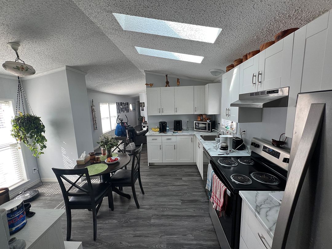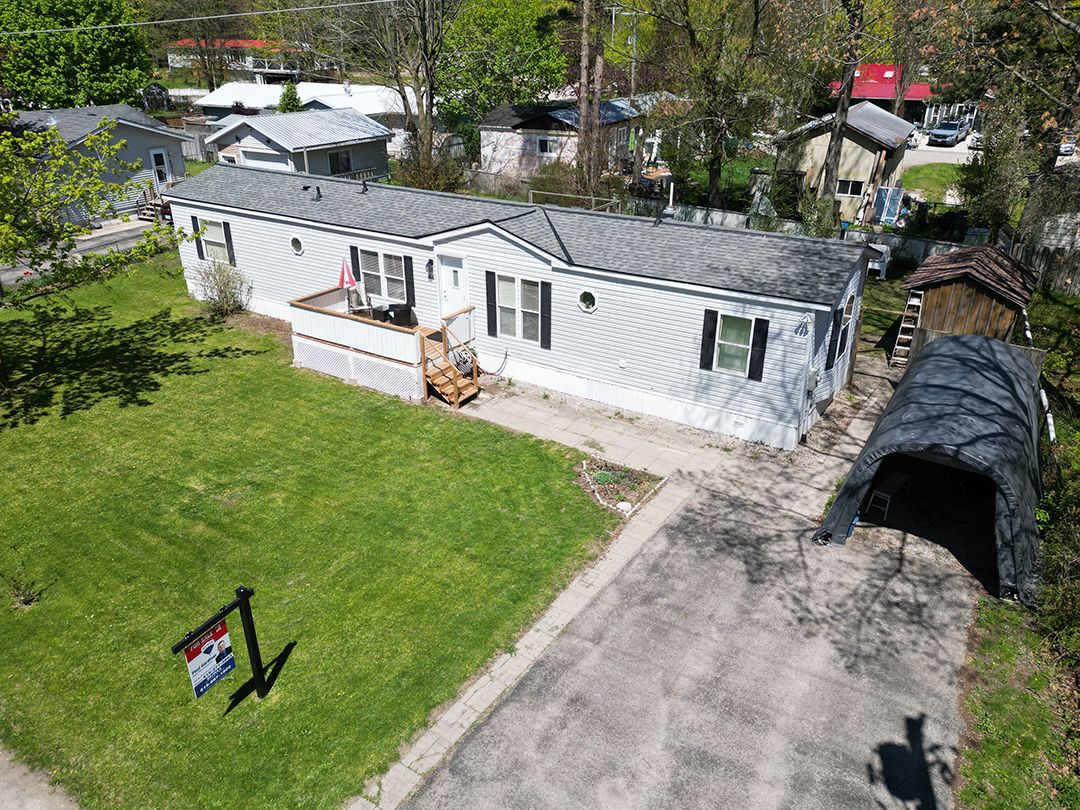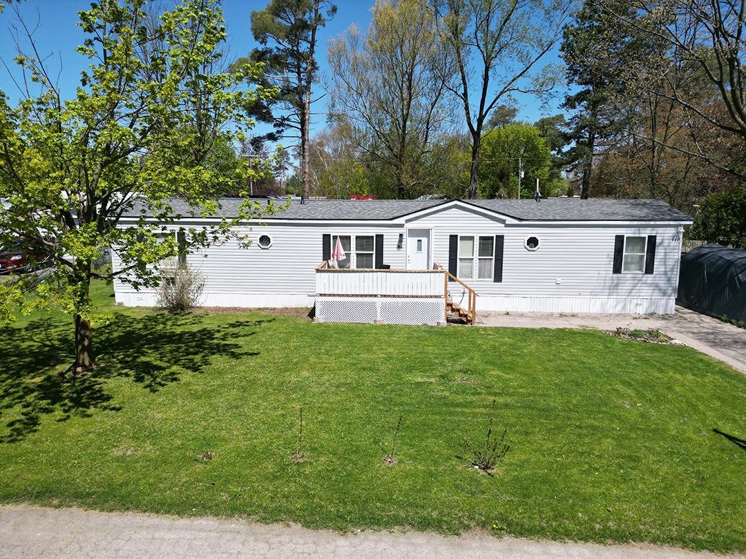 Bright, Beautiful & Fully Updated Bungalow Move-In Ready! Welcome to this charming open-concept bungalow, perfect for year-round living with style, comfort, and peace of mind. Bursting with natural light and loaded with recent upgrades, this two-bedroom, two-bathroom home offers modern convenience in a serene setting all at a remarkably low monthly cost. Key Highlights: Modern Comfort & Style: Step into a freshly updated kitchen with new appliances, sleek laminate flooring, and freshly painted ceilings and walls. The ensuite bathroom features a new walk-in shower, adding a spa-like luxury to your daily routine. Peace of Mind with Smart Upgrades: Enjoy worry-free living with shingles, skylights, doors, and a high-efficiency furnace all replaced approximately 6 years ago. Stay cool all summer with central air conditioning already in place. Workshop & Backup Power Perks: The backyard workshop is powered by a dedicated 60-amp panel ideal for hobbyists, woodworkers, or DIY enthusiasts. A tri-fuel generator with remote start, safely housed in its shed and professionally wired into a generator panel, ensures your home stays powered even during outages. Enjoy the Outdoors: Relax or entertain on the spacious 12x16 deck, store your tools in the tidy 8x12 wooden shed, and enjoy the added convenience of a portable garage. New wood on the front porch and steps adds charm and curb appeal. Affordable Living: As a part-owner of the park, you will enjoy one of the lowest monthly fees, just $165/month, covering standard area maintenance, park improvements, and even including water! More Thoughtful Updates: New front closet was added in 2023, Full skirting was replaced in 2018, and the Septic system was professionally inspected & cleaned in April 2025. Whether you're downsizing, investing, or just looking for a hassle-free home with everything already done for you, this bungalow stands out from the crowd. Approx. 7 min to HWY 401. The Listing agent is related to the seller.