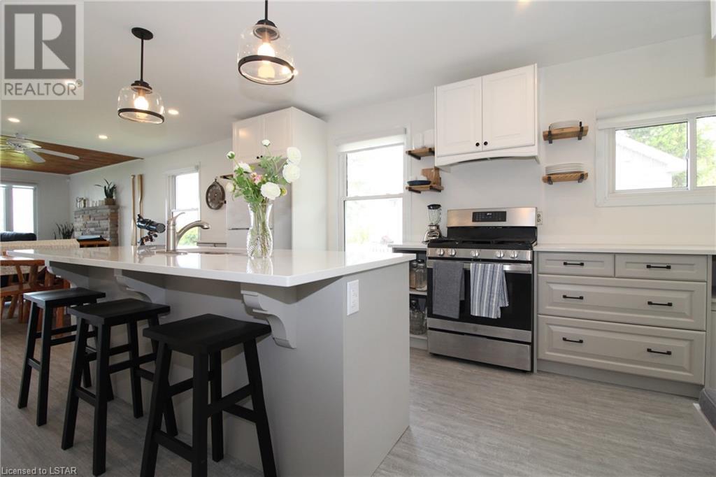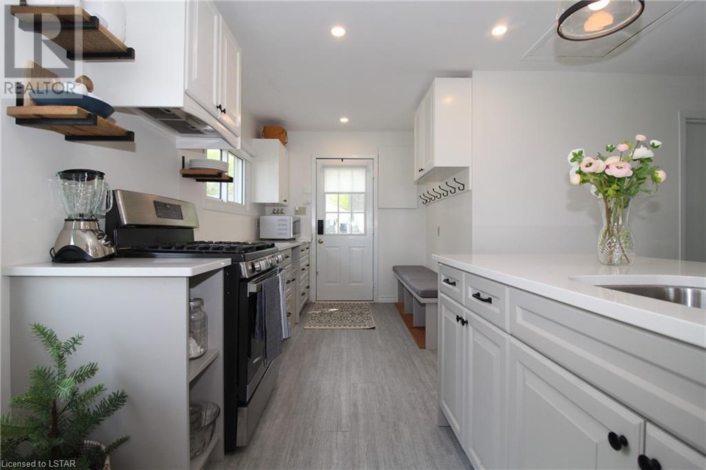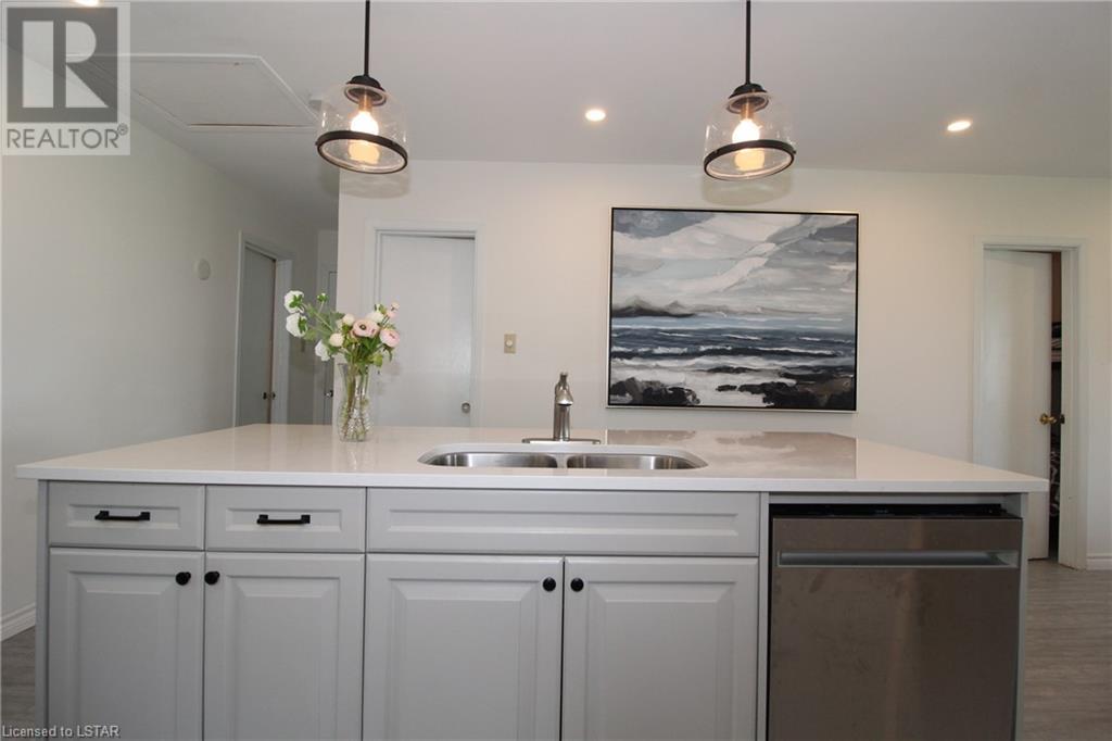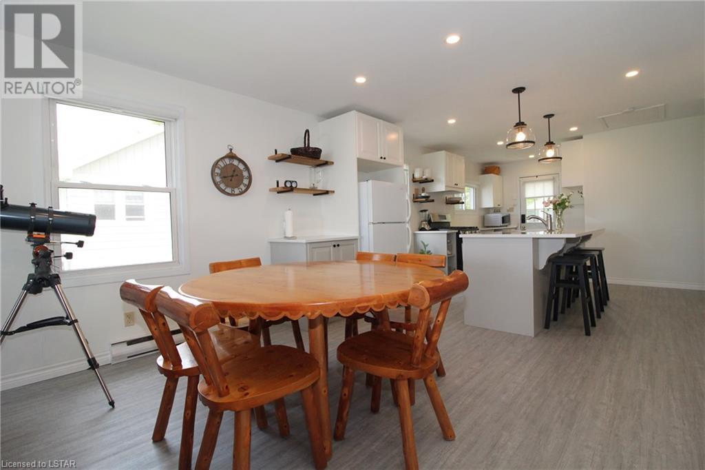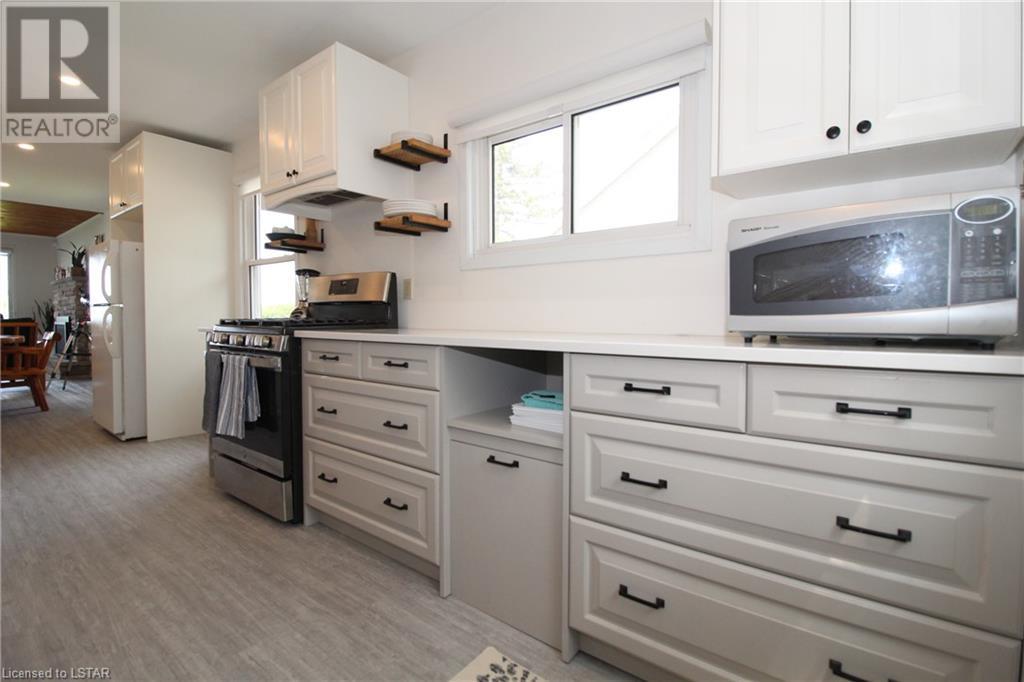 Welcome to this turnkey fully updated lakefront home or cottage at 71209 Karen Drive in Highlands 1 just north of Grand Bend! So close that you can walk to Grand Bend along the coastline with your toes in the sand! Enjoy all the benefits of living your best life on the sandy shores of Lake Huron. The home is fully updated from its original cottage finishing and most recently in the last year a brand new kitchen, stone retaining wall, on demand gas hot water heater, pot lights, light fixtures and luxury vinyl plank flooring. Updated vinyl exterior with metal roof installed in 2019. Nicely landscaped property with lots of space for four cars to park on private double wide gravel driveway. Entering the home you have incredible views of Lake Huron with the large windows in living room. Open concept design gives the home a great feel and makes it great for entertaining! Brand new kitchen offers two tone cabinetry with eat up island, quartz counters and brand new appliances including gas stove. Dining area offers lots of room for the whole family to sit down and enjoy dinner after a long day on the beach! Living room with brand new gas fireplace, pine ceiling and large window overlooking Lake Huron is a great spot to relax in the morning or evening. Offering three bedrooms with primary bedroom facing Lake Huron. Along with the full bathroom and laundry (full size washer and dryer) to make extended stays an easy task! With both the siding, attic and crawl space being reinsulated making this an efficient year round home or cottage for the new buyer! Septic system was totally redone in 1998. Bonus there are two sheds and the one lakeside shed would make for a super cute bunkie. Coming fully furnished minus a couple items the new buyer can come in and start enjoying the cottage this summer! Highlands 1 is a great cottage style subdivision just 2 KM north of Grand Bend and close to all amenities including grocery stores, pharmacy, hardware store and golf courses! (id:22211)