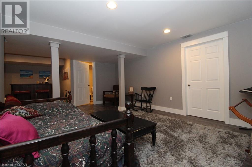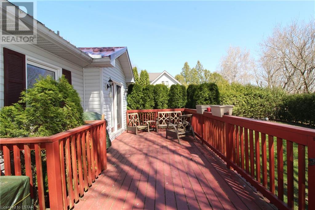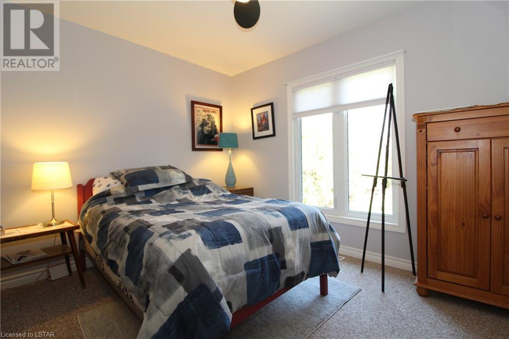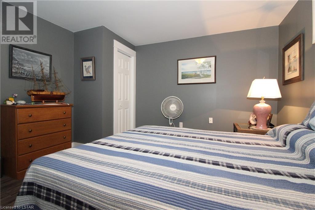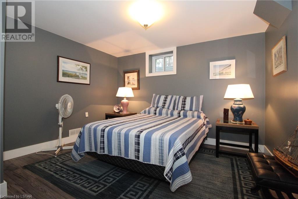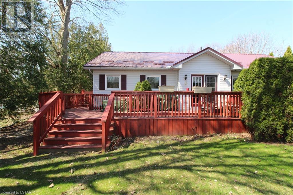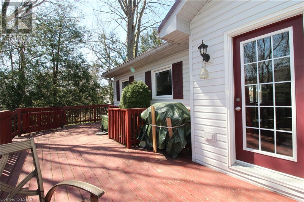 Located between Grand Bend and Bayfield, in the Lakeside community of Poplar Beach, this fourteen year old 2+1 bedroom year-round bungalow has a great private lot just across the road from the lake, so you have a view. Mature trees surround the home with parking for 4 cars and there is a 10'x8' wood storage shed in the backyard, for your tools and lawnmower. The large 32’x12’ back deck is a great place to enjoy summer with room for the BBQ and lots of people. The new metal roof was just recently installed so no worries there! The open concept design makes this 1340 sq.ft. home seem spacious plus the tray ceilings and laminate floors are very contemporary. The gas fireplace in the great room will keep you warm and there are lots of cabinets in the kitchen with an island and seating for at least 2 plus the walkout to the back deck. There are 1 ½ baths upstairs and 1 downstairs with a 28’x12’ family room and lots of storage in the lower level. All the appliances are included plus most of the furniture, so you can be ready for the summer fun instead of shopping for them. This well appointed and cared for home has been used as a summer residence, so it almost looks like new. (id:22211)