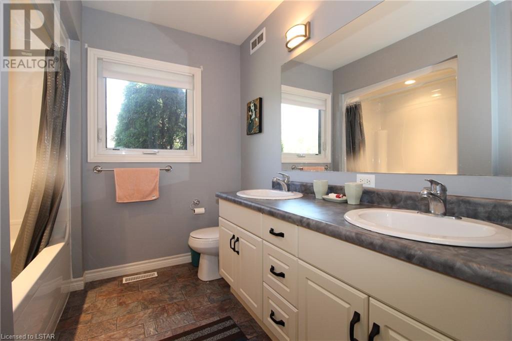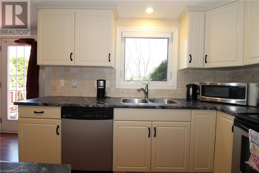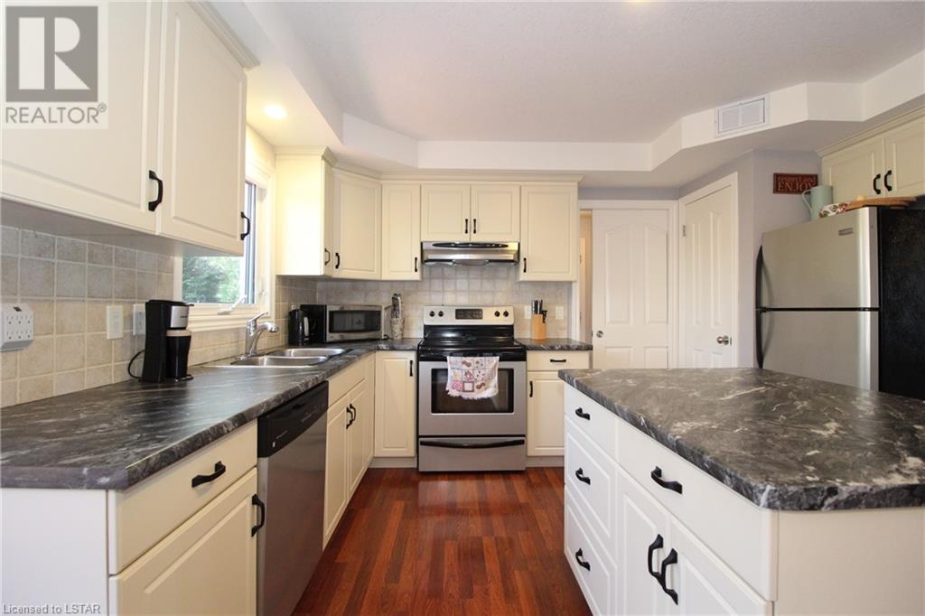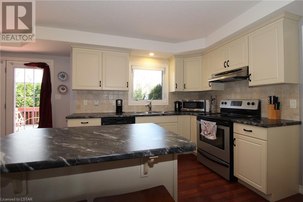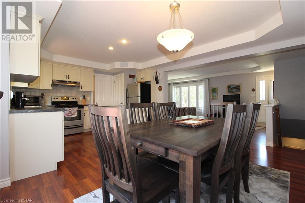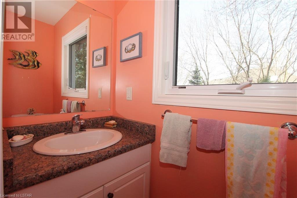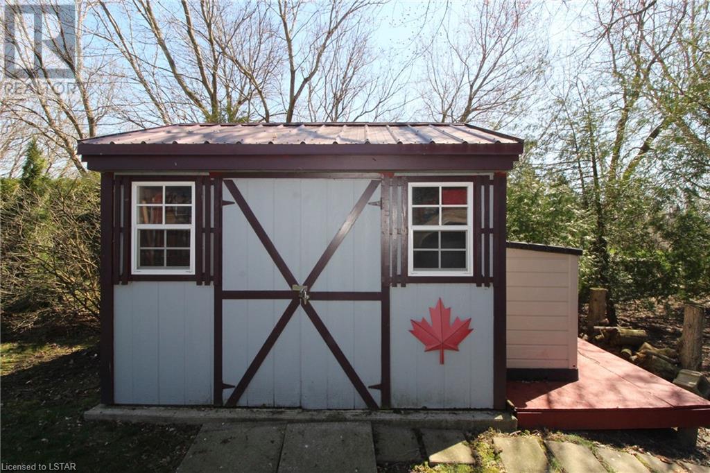 Located between Grand Bend and Bayfield, in the Lakeside community of Poplar Beach, this fourteen year old 2+1 bedroom year-round bungalow has a great private lot just across the road from the lake, so you have a view. Mature trees surround the home with parking for 4 cars and there is a 10'x8' wood storage shed in the backyard, for your tools and lawnmower. The large 32’x12’ back deck is a great place to enjoy summer with room for the BBQ and lots of people. The new metal roof was just recently installed so no worries there! The open concept design makes this 1340 sq.ft. home seem spacious plus the tray ceilings and laminate floors are very contemporary. The gas fireplace in the great room will keep you warm and there are lots of cabinets in the kitchen with an island and seating for at least 2 plus the walkout to the back deck. There are 1 ½ baths upstairs and 1 downstairs with a 28’x12’ family room and lots of storage in the lower level. All the appliances are included plus most of the furniture, so you can be ready for the summer fun instead of shopping for them. This well appointed and cared for home has been used as a summer residence, so it almost looks like new. (id:22211)