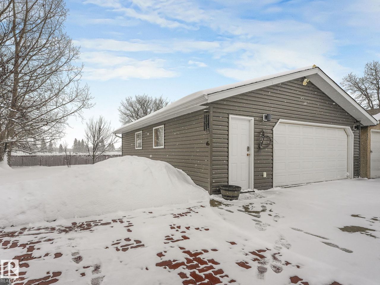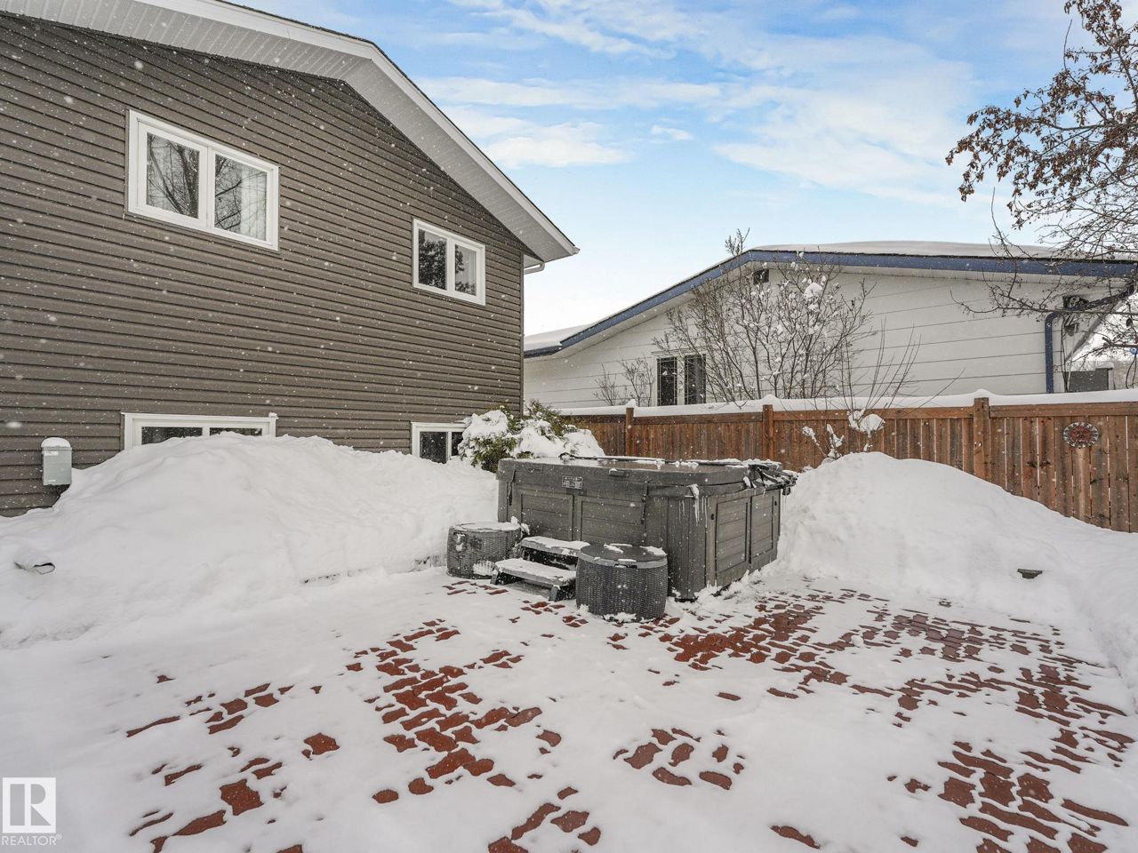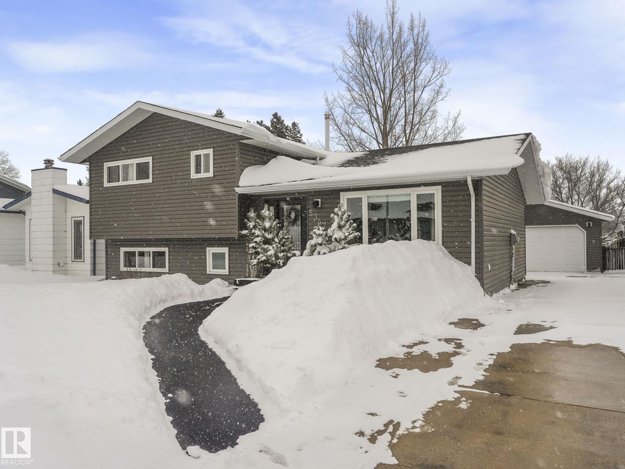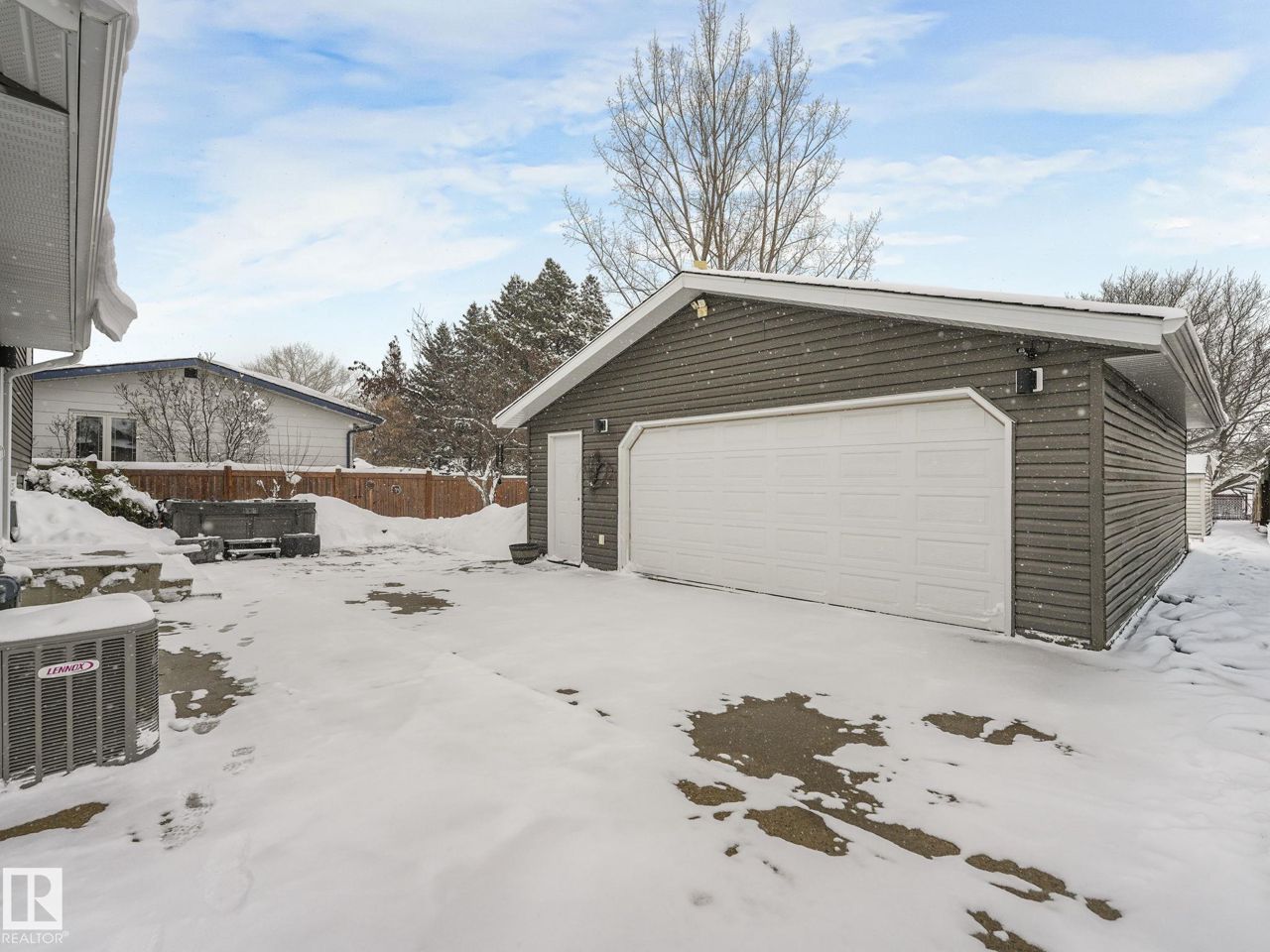 BACKING ONTO PARK & School! This STUNNING UPGRADED 4 Bedroom, 2.5 Bath home is a must-see & has over 2000 sq ft of total living area! UPDATED and move-in ready it presents a Modern Kitchen with Stainless Steel appliances, Stylish VINYL PLANK flooring on the main level, FULLY FINISHED plus UPDATED Baths, NEWER Vinyl Siding, NEWER Windows, Doors, Shingles, Eaves, Soffits for added curb appeal and efficiency. Enjoy year-round comfort with a NEWER Furnace, NEWER Hot Water Tank and Central A/C. Relax in the NEWER hot tub or take advantage of the OVERSIZED 26 x 28 Double Garage for all your storage and parking needs. This 10/10 home offers both convenience and quality - 20 Minutes to Lancaster Base and Edmonton -- don’t miss out!