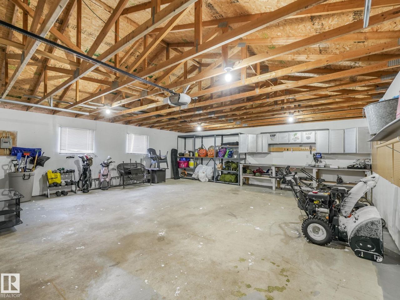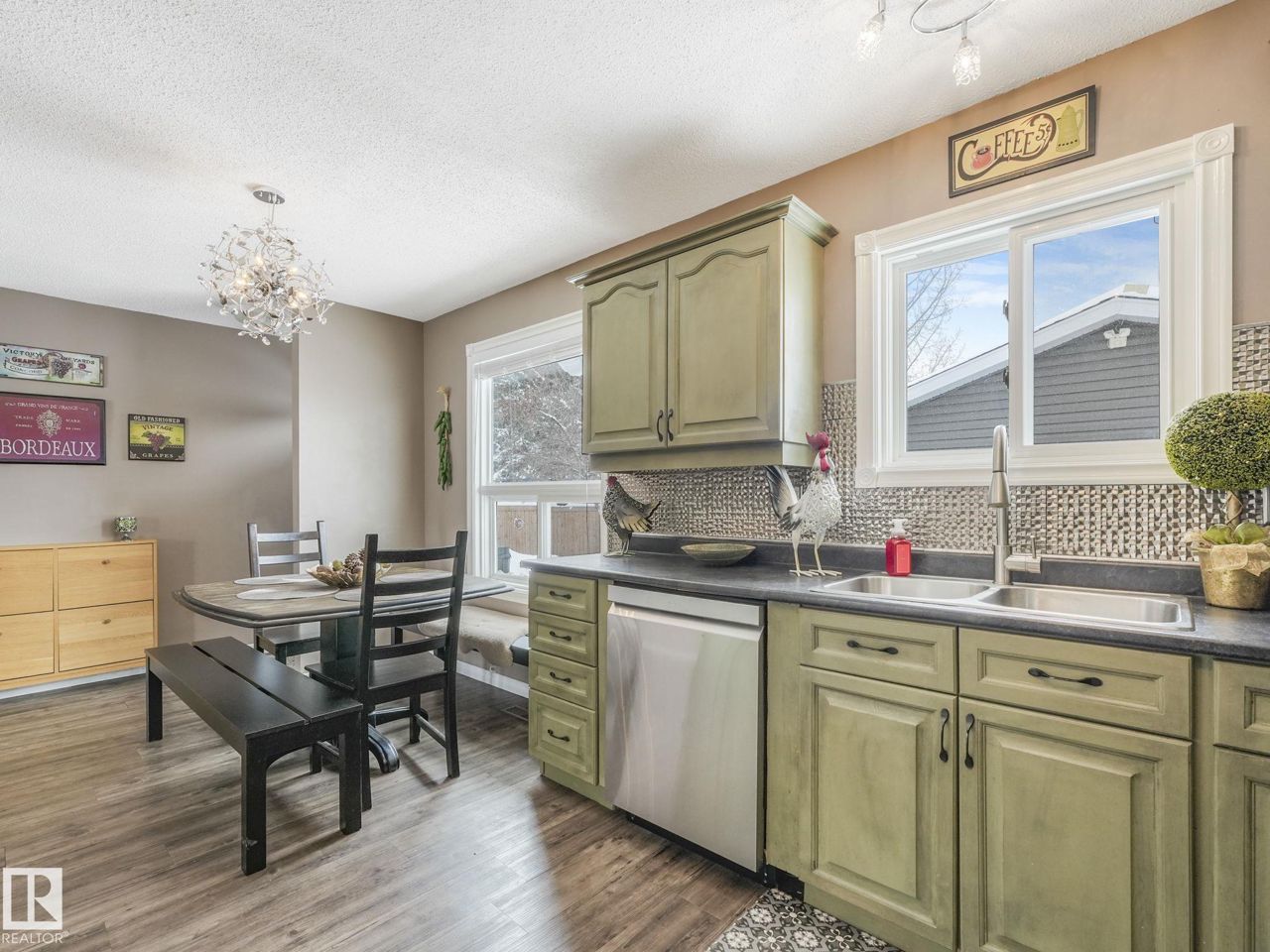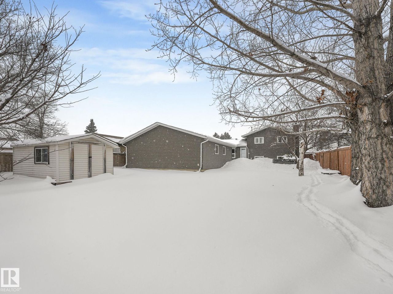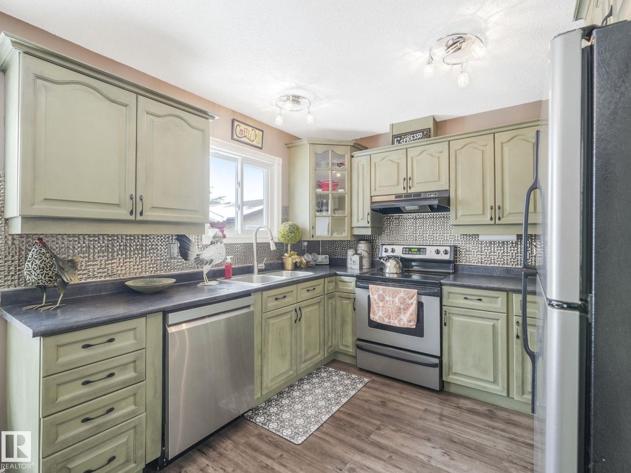 BACKING ONTO PARK & School! This STUNNING UPGRADED 4 Bedroom, 2.5 Bath home is a must-see & has over 2000 sq ft of total living area! UPDATED and move-in ready it presents a Modern Kitchen with Stainless Steel appliances, Stylish VINYL PLANK flooring on the main level, FULLY FINISHED plus UPDATED Baths, NEWER Vinyl Siding, NEWER Windows, Doors, Shingles, Eaves, Soffits for added curb appeal and efficiency. Enjoy year-round comfort with a NEWER Furnace, NEWER Hot Water Tank and Central A/C. Relax in the NEWER hot tub or take advantage of the OVERSIZED 26 x 28 Double Garage for all your storage and parking needs. This 10/10 home offers both convenience and quality - 20 Minutes to Lancaster Base and Edmonton -- don’t miss out!
