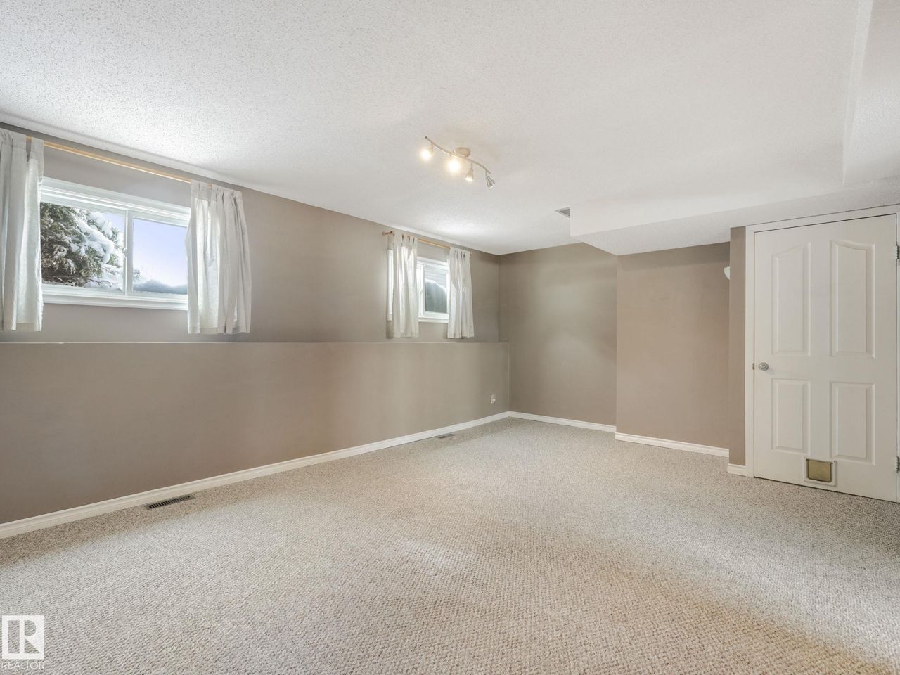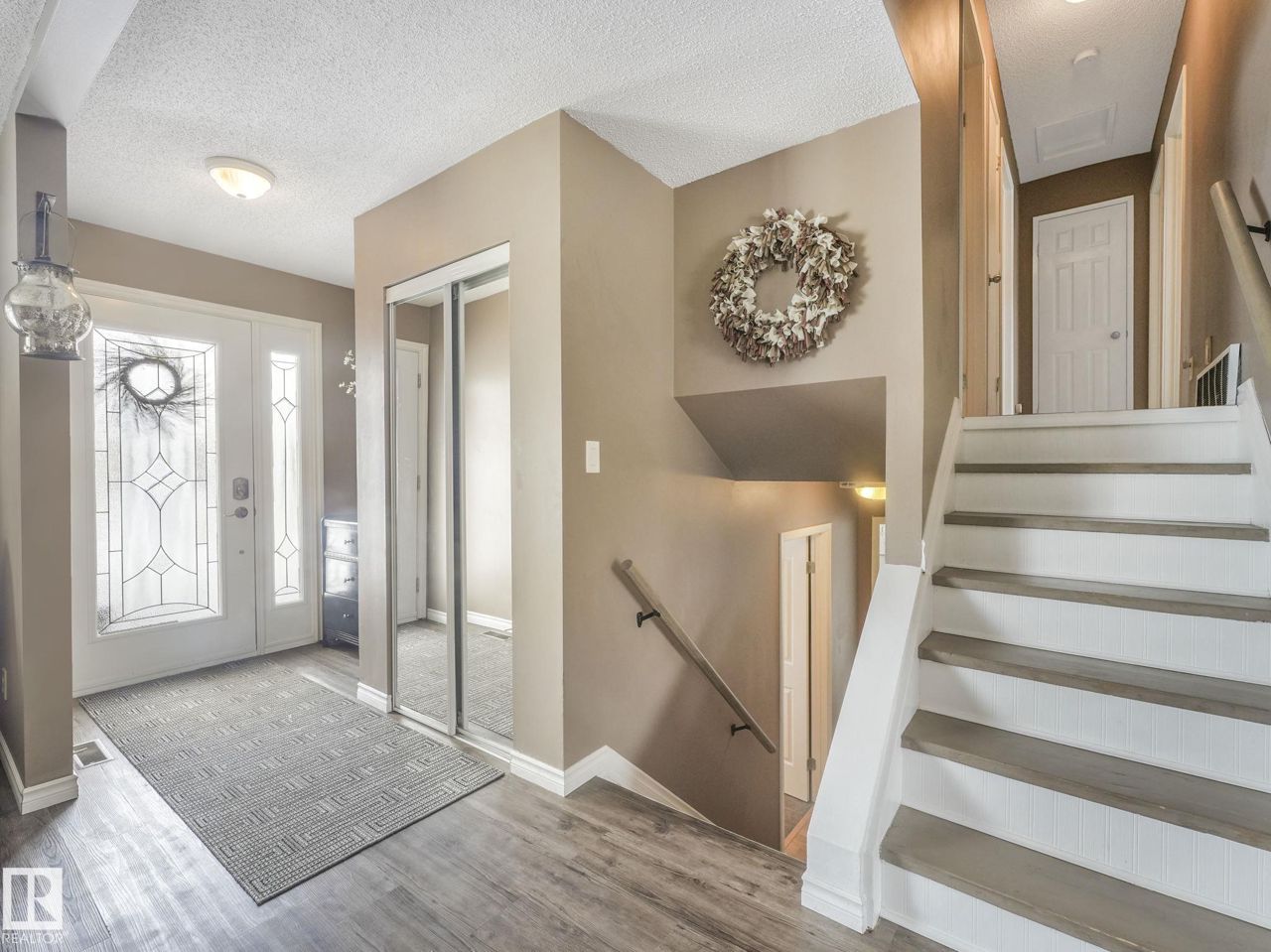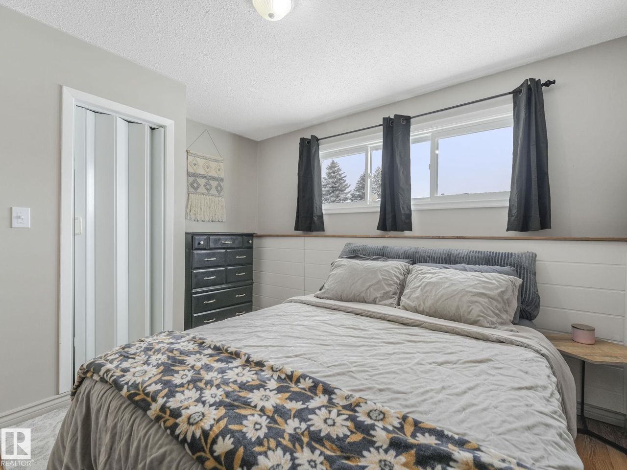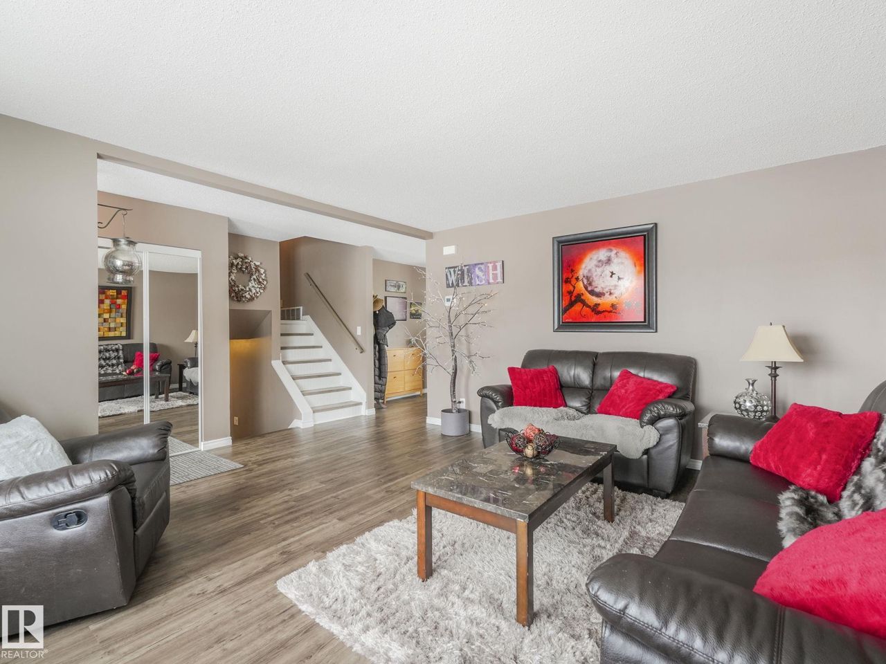 BACKING ONTO PARK & School! This STUNNING UPGRADED 4 Bedroom, 2.5 Bath home is a must-see & has over 2000 sq ft of total living area! UPDATED and move-in ready it presents a Modern Kitchen with Stainless Steel appliances, Stylish VINYL PLANK flooring on the main level, FULLY FINISHED plus UPDATED Baths, NEWER Vinyl Siding, NEWER Windows, Doors, Shingles, Eaves, Soffits for added curb appeal and efficiency. Enjoy year-round comfort with a NEWER Furnace, NEWER Hot Water Tank and Central A/C. Relax in the NEWER hot tub or take advantage of the OVERSIZED 26 x 28 Double Garage for all your storage and parking needs. This 10/10 home offers both convenience and quality - 20 Minutes to Lancaster Base and Edmonton -- don’t miss out!