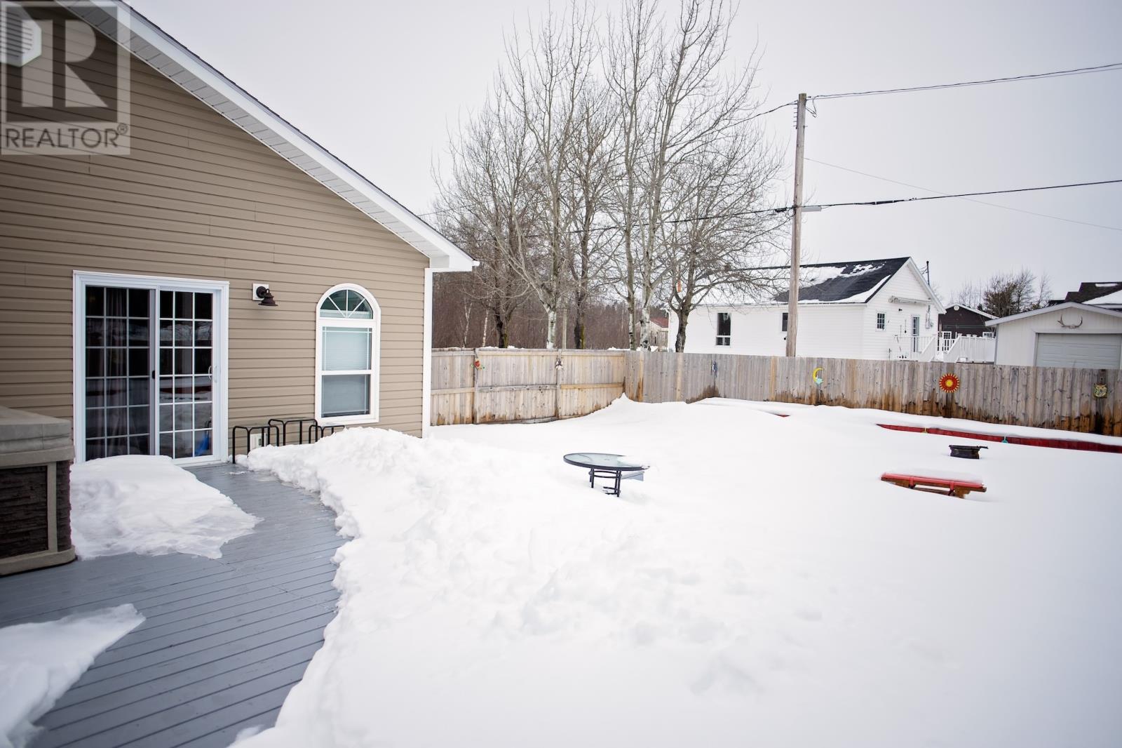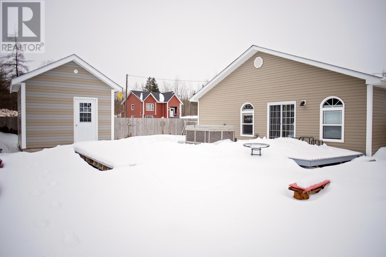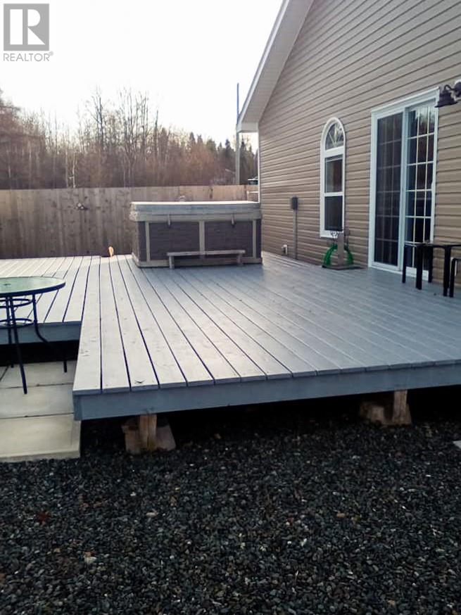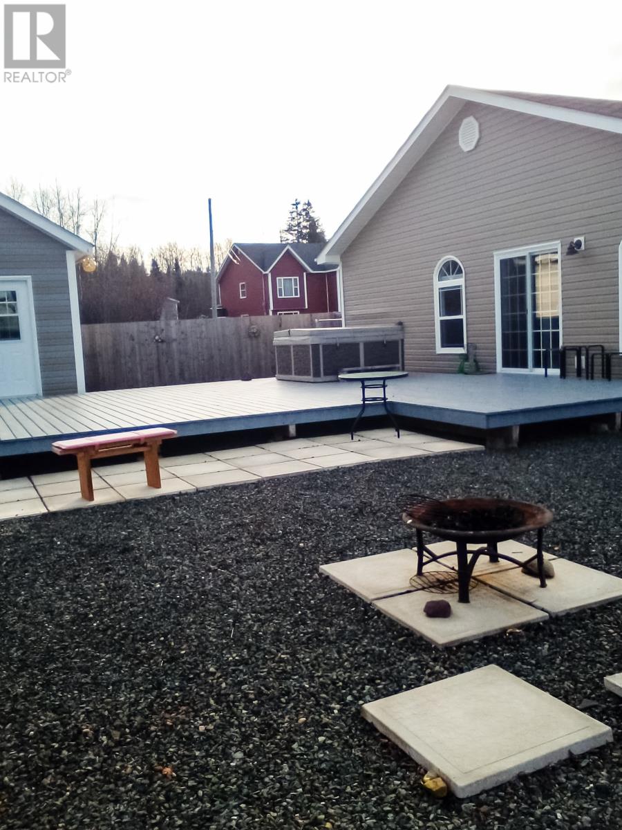 Welcome to your oasis at 9 Hancock's Lane in Botwood! Nestled on a quiet Cul-de-sac street, this meticulously maintained property and 8 year-old bungalow invites you to experience the epitome of comfort and relaxation. As you approach, the charm of this home is evident with its 6' x 16' covered deck with screened floor and oversized driveway providing ample parking space for you and your guest. The maintenance free crushed stone surrounds the property, complemented by thoughtfully placed landscaping materials for effortless upkeep and patio stone walkways. Entering the home, you are welcomed into an open-concept area, kitchen, dining and living room. White custom cabinets with matching 9' pantry style cabinet in dining area plus an island. Zodiac stone countertops that marry aesthetics with durability. Large windows with cordless cellular light filtering blinds, for lots of natural light and privacy plus ceramic tile with electric in-floor heating. 3 bedrooms with oversized closets plus a walk-in closet. 2 full bathrooms, ensuite has additional whirlpool tub. An expansive laundry/utility room with lots of storage space. Both attic and 4' crawl space has extra insulation for heating efficiency. As you cross the threshold through the sliding patio door, you will enter another oasis. Step on your 612 sqft deck with hot tub which extends to the 10' x 12' storage shed wired with power, fully fenced in with 6' private fence, an array of planter boxes along 2 sides of fence, a patio stone area 6' x 12' for additional entertaining, 2 fire pits and crush stone for low maintenance. Don't miss your chance to own this exceptional property, where every detail has been carefully curated for your utmost enjoyment-welcome home to comfort, convenience and tranquility-welcome home to Botwood. (id:22211)