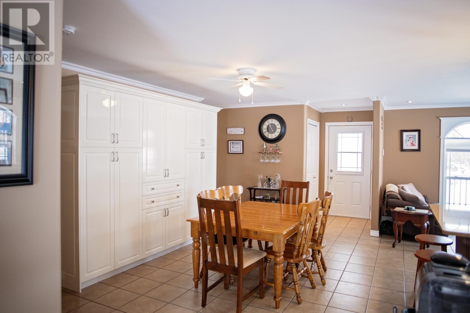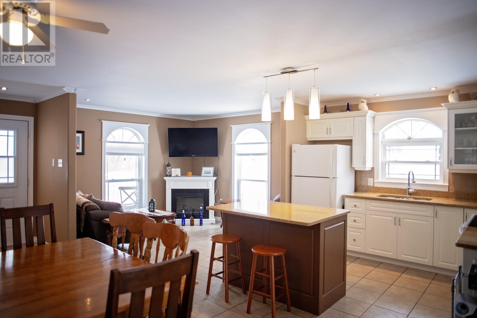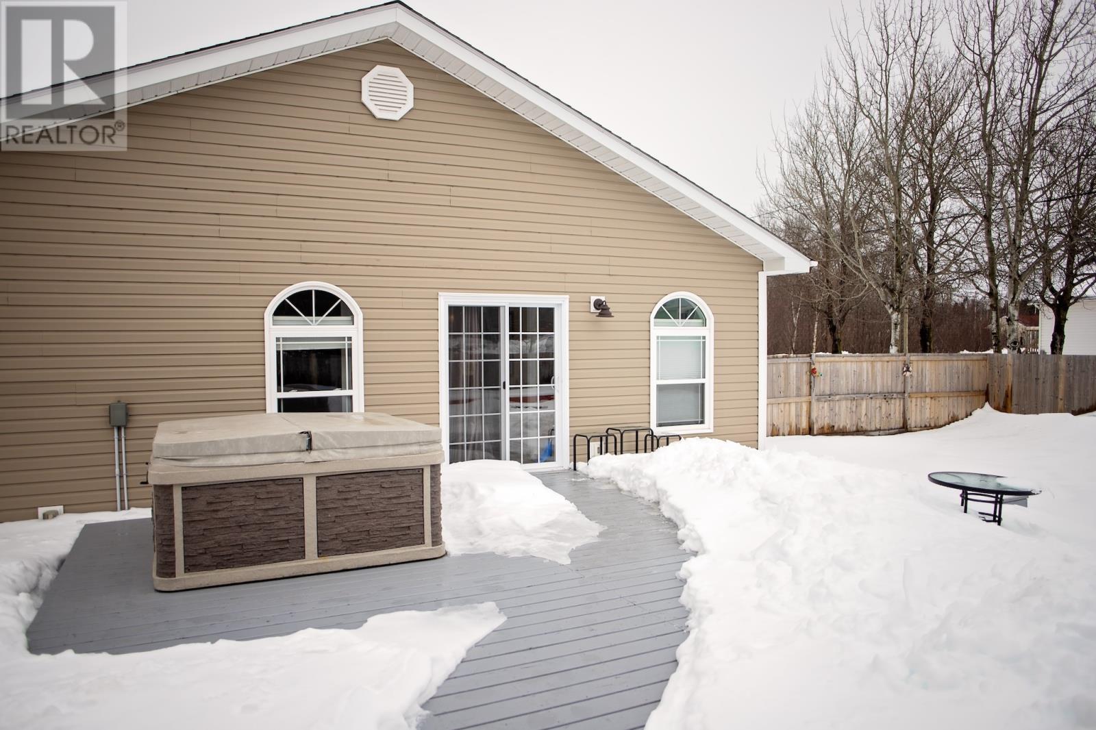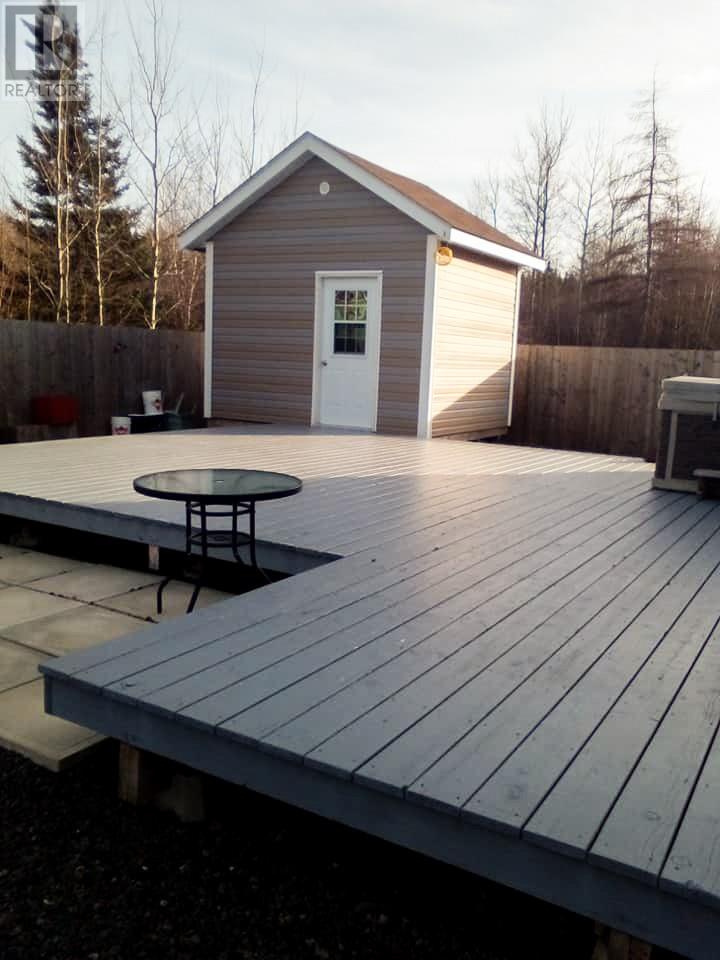 Welcome to your oasis at 9 Hancock's Lane in Botwood! Nestled on a quiet Cul-de-sac street, this meticulously maintained property and 8 year-old bungalow invites you to experience the epitome of comfort and relaxation. As you approach, the charm of this home is evident with its 6' x 16' covered deck with screened floor and oversized driveway providing ample parking space for you and your guest. The maintenance free crushed stone surrounds the property, complemented by thoughtfully placed landscaping materials for effortless upkeep and patio stone walkways. Entering the home, you are welcomed into an open-concept area, kitchen, dining and living room. White custom cabinets with matching 9' pantry style cabinet in dining area plus an island. Zodiac stone countertops that marry aesthetics with durability. Large windows with cordless cellular light filtering blinds, for lots of natural light and privacy plus ceramic tile with electric in-floor heating. 3 bedrooms with oversized closets plus a walk-in closet. 2 full bathrooms, ensuite has additional whirlpool tub. An expansive laundry/utility room with lots of storage space. Both attic and 4' crawl space has extra insulation for heating efficiency. As you cross the threshold through the sliding patio door, you will enter another oasis. Step on your 612 sqft deck with hot tub which extends to the 10' x 12' storage shed wired with power, fully fenced in with 6' private fence, an array of planter boxes along 2 sides of fence, a patio stone area 6' x 12' for additional entertaining, 2 fire pits and crush stone for low maintenance. Don't miss your chance to own this exceptional property, where every detail has been carefully curated for your utmost enjoyment-welcome home to comfort, convenience and tranquility-welcome home to Botwood. (id:22211)
