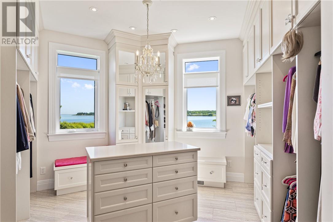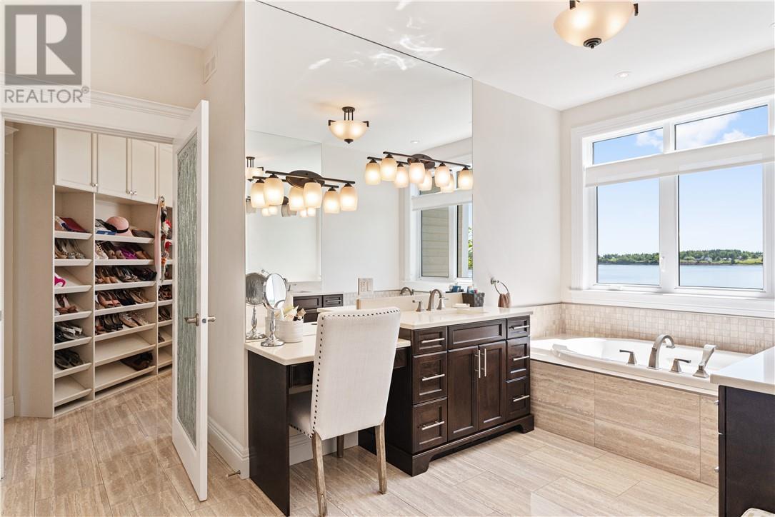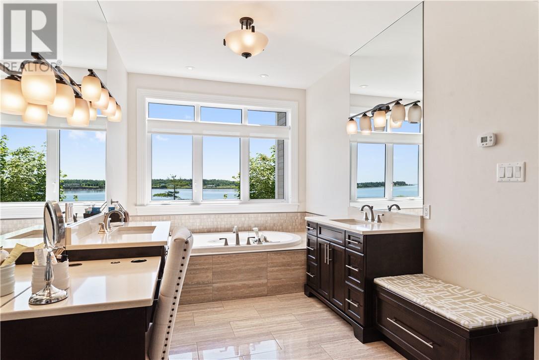 Pride of ownership is evident in this prestigious Bouctouche River waterfront home that offers panoramic sunrise/sunsets and is immaculately maintained sitting on over 2 acres of well-manicured property with breathtaking views. Upon arrival, you'll find a double paved driveway with phenomenal curb appeal that brings you inside to an impressive foyer with vaulted ceilings and decorative designed columns. main floor den/office with tray ceiling, and a propane fireplace surrounded by built-ins. Main floor living room is massive with vaulted ceilings, another propane fireplace, soaring windows showcasing the water views. A chef's dream kitchen with lots of wood cabinets, quartz counters, top-of-the-line appliances including propane stove, fridge & freezer combo, oversized island, peninsula used as breakfast counter. Garden doors lead to a back deck plus a side deck. Primary bedroom with luxurious 5PC ensuite bath and amazing walk-in closet. Another bedroom, 3PC bath, laundry with storage, 2PC powder room and 2 car garage complete this floor. Added bonus room on top of garage is ideal for exercise/theatre room. Down to the walk-out basement, large family room with lots of windows and access to backyard, additional 2 bedrooms, 3PC bath, storage, electrical room plus a boat room/toy garage. Other features: Geothermal, in-floor hot water heating, generator, alarm, central vac, covered lower deck. Enjoy kayaking, canoeing, sailing, or just relaxing on this waterfront property. (id:22211)