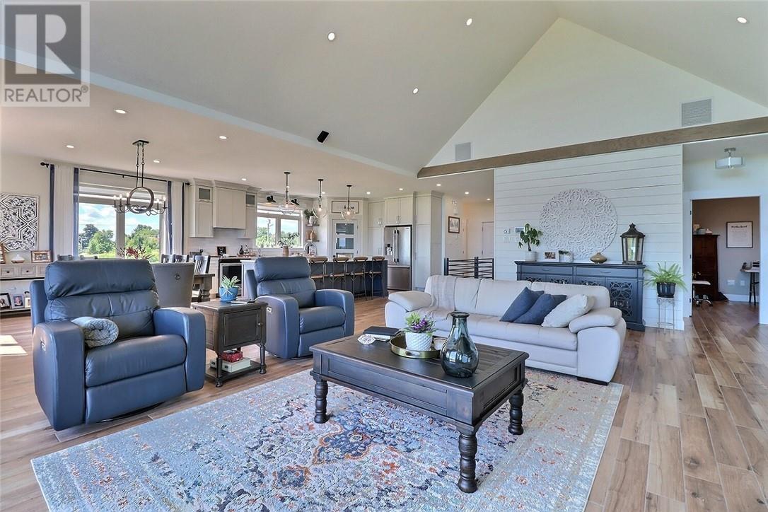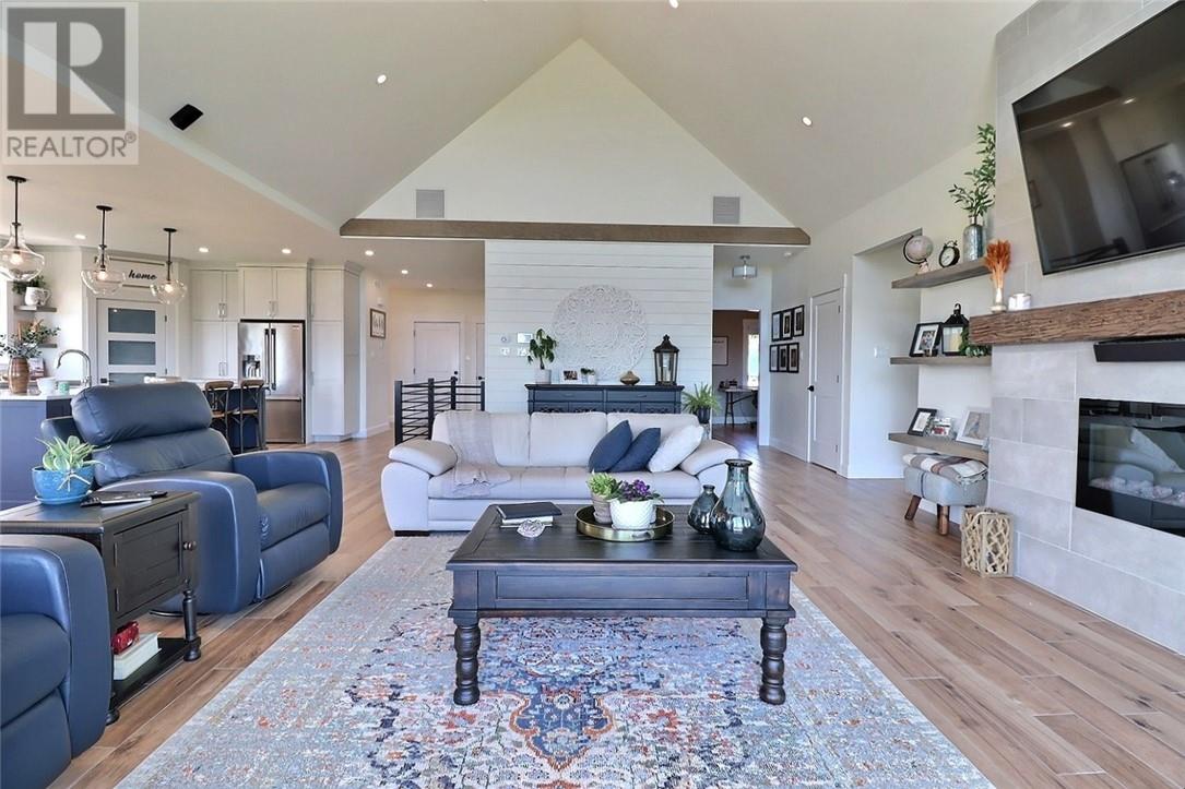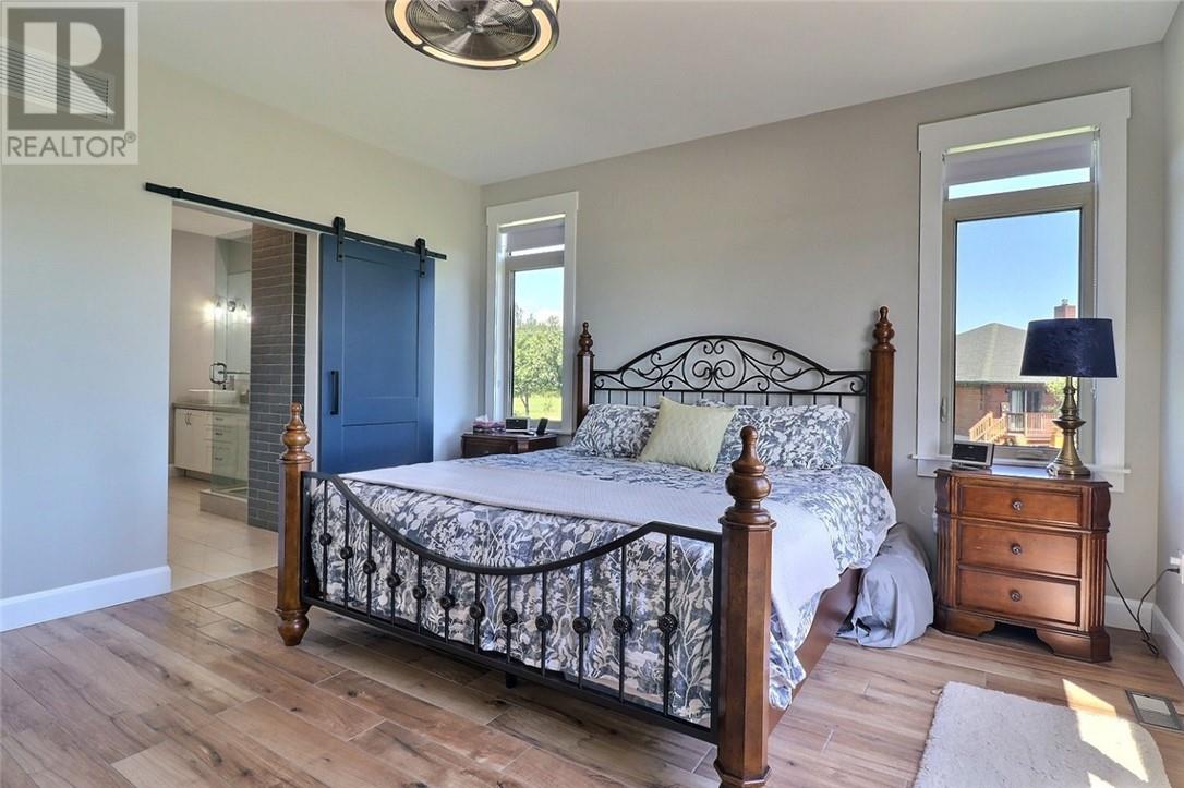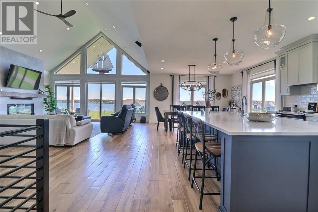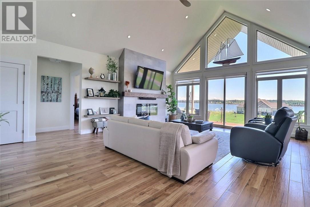When only the best will do! This water view quality built custom bungalow is in pristine condition and won't disappoint. You will feel right at home as you walk into the inviting foyer boasting 9' ceilings. The gourmet kitchen is definitely a chef's dream with a large center island topped with beautiful white quartz countertop, corner pantry and stainless steel appliances. The bright living room features 17' architectural ceilings highlighted with a gorgeous barnwood beam fireplace mantel. The master bedroom features a luxurious infloor heated ensuite with double vanity and a beautiful tiled shower with glass doors. Descend the hardwood staircase to the lower level walk out basement where you will find two additional bedrooms, a full bathroom, a large family room and an underneath garage for all of your summer and winter toys. The infloor heated double attached garage has beautiful polyurea floors and steel walls. The exterior is beautifully landscaped, features a large double paved driveway with additional parking space and a single detached garage. Enjoy the peaceful evenings, the spectacular views and the sunsets. Entertain friends and family, host gatherings and cookouts on the large deck. Enjoy the nearby beaches, the bicycle trails, fishing, canoeing and kayaking and so much more! This piece of paradise with stunning water views from all locations is turnkey and could be your dream come true! Please call, text or email for additional information. (id:22211)