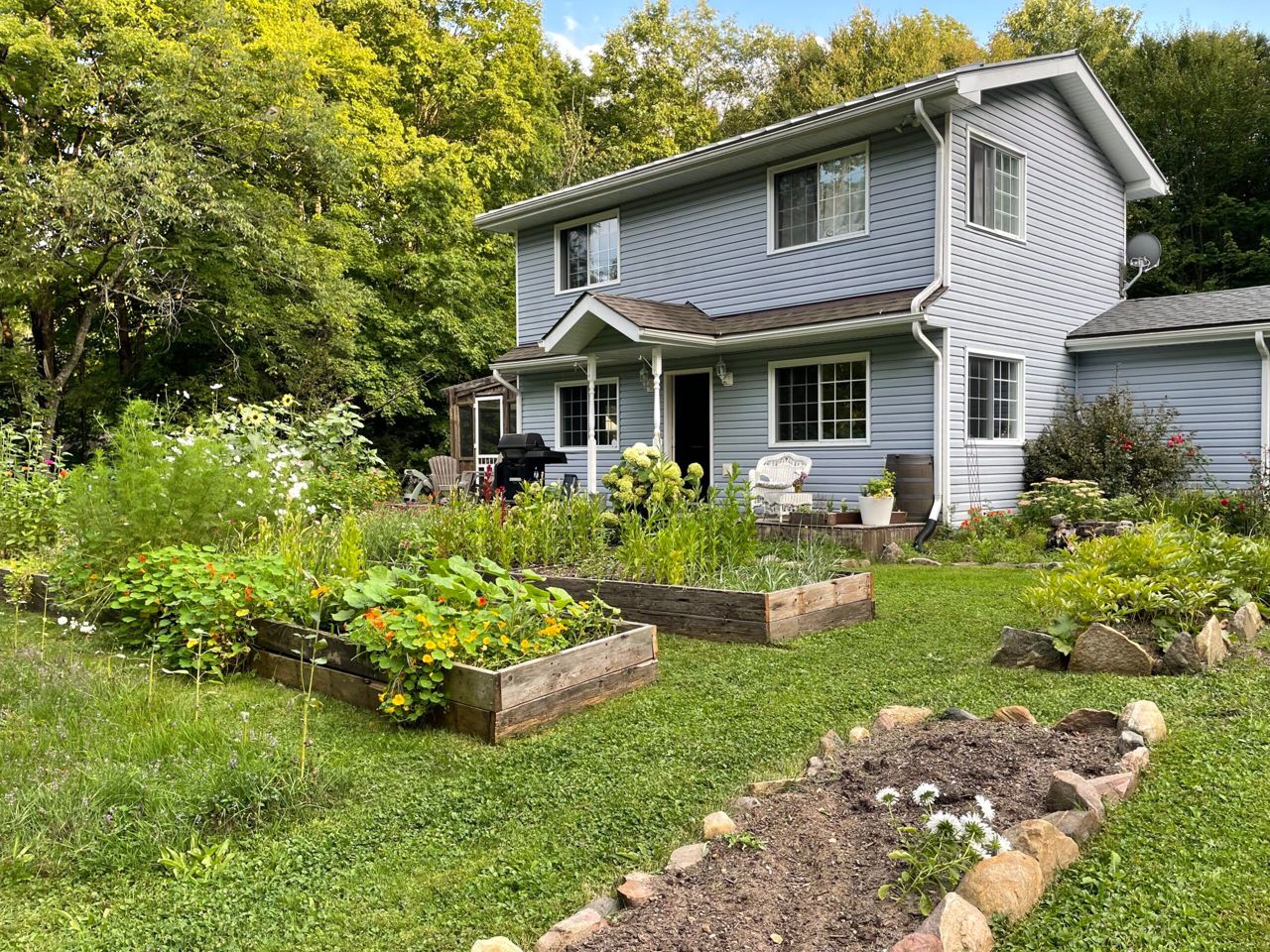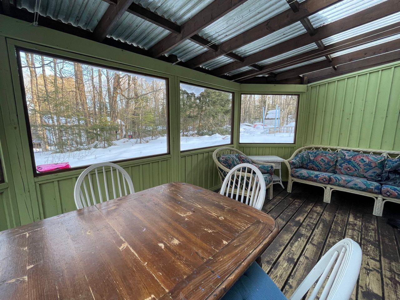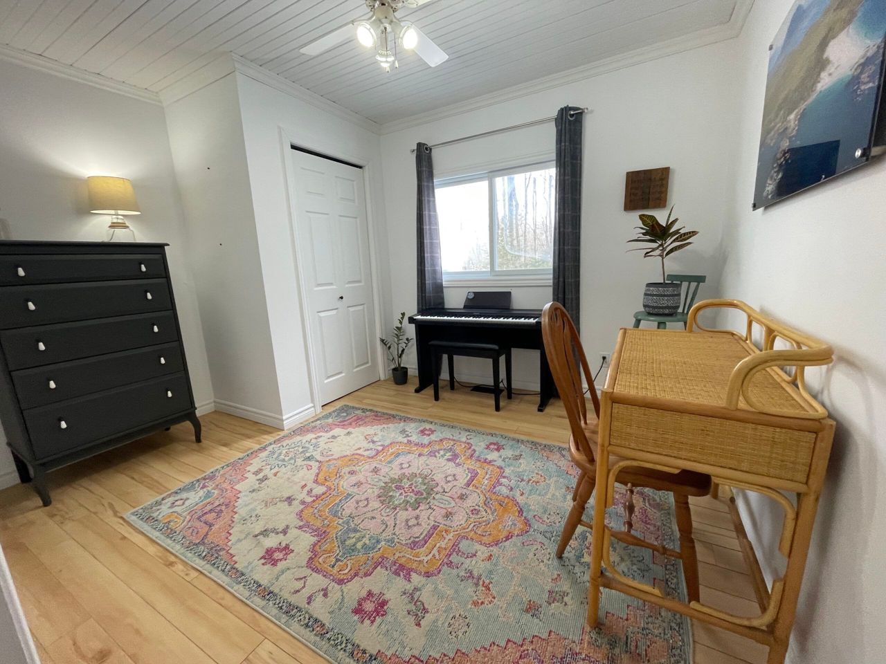 Welcome to your move in ready slice of heaven! 1600 sq ft country home on 2.4 acres only minutes to public access (beach and boat launch) on desirable wood lake. Home has had many updates in recent years. Features: 3 bedrooms (one on main floor), Large family bath upstairs features double vanity with plenty of storage, claw foot tub and shower. Lower bathroom features new vanity and toilet. Den or office with exterior entry can be used for many purposes. Large fully updated eat in kitchen with large island is a perfect gathering space. Outdoor Muskoka room attached to kitchen allows for indoor outdoor living, large living room with wood burning fireplace is cozy in winter. Sauna with walk in shower on main floor. Hobby farm sized lot with lots of parking, Garage/workshop with hydro, children's play house tree fort. Raised garden beds with good soil ready to go! Low maintenance quiet living awaits!! Easy access to Bracebridge via hwy 118, school bus route, welcoming community.Tree house, shed, firewood, appliances, forced air heat pump and furnace system(2024), new paint, new carpet, roof(2020), exterior doors(2023). Updated kitchen *For Additional Property Details Click The Brochure Icon Below*