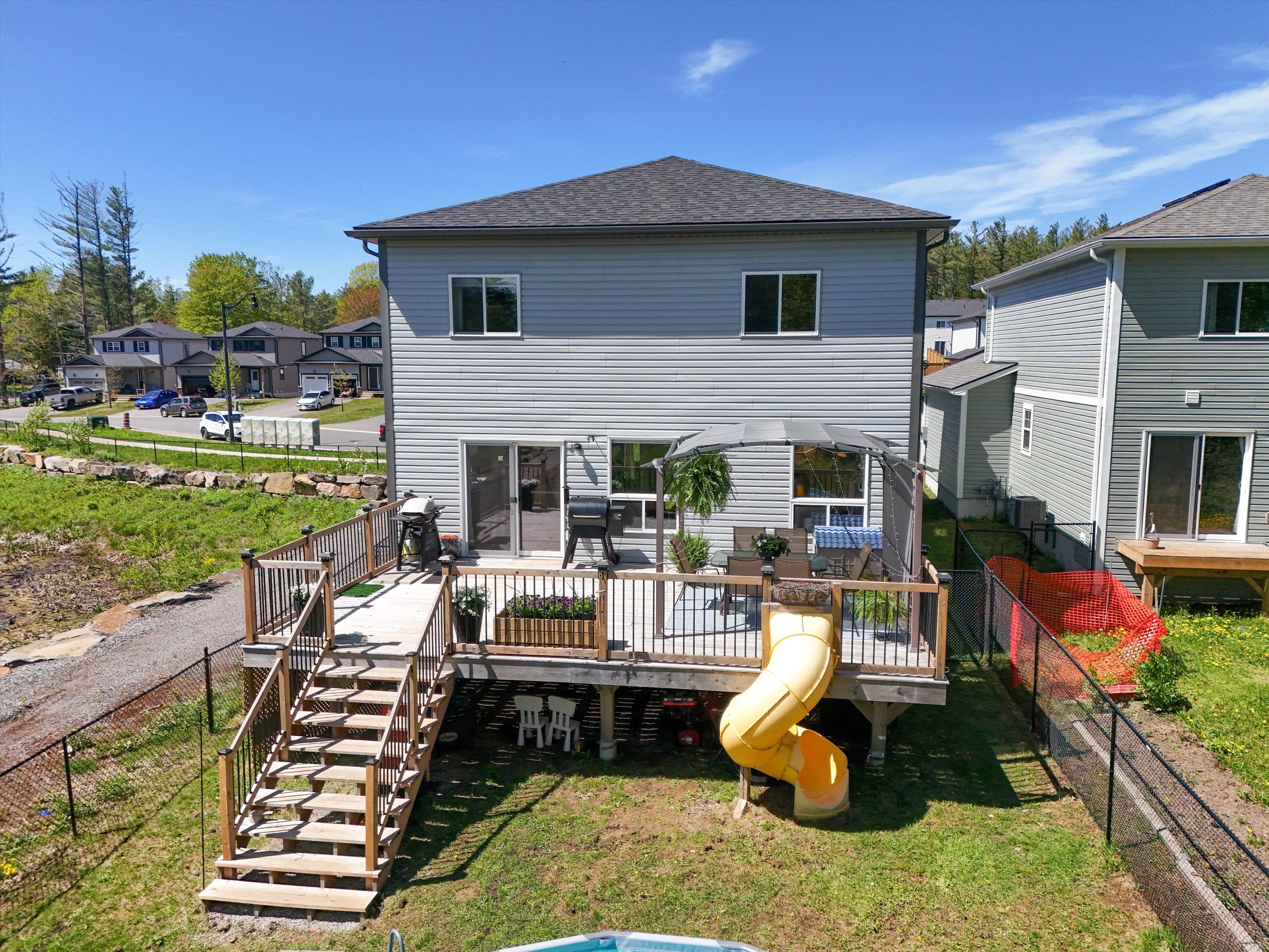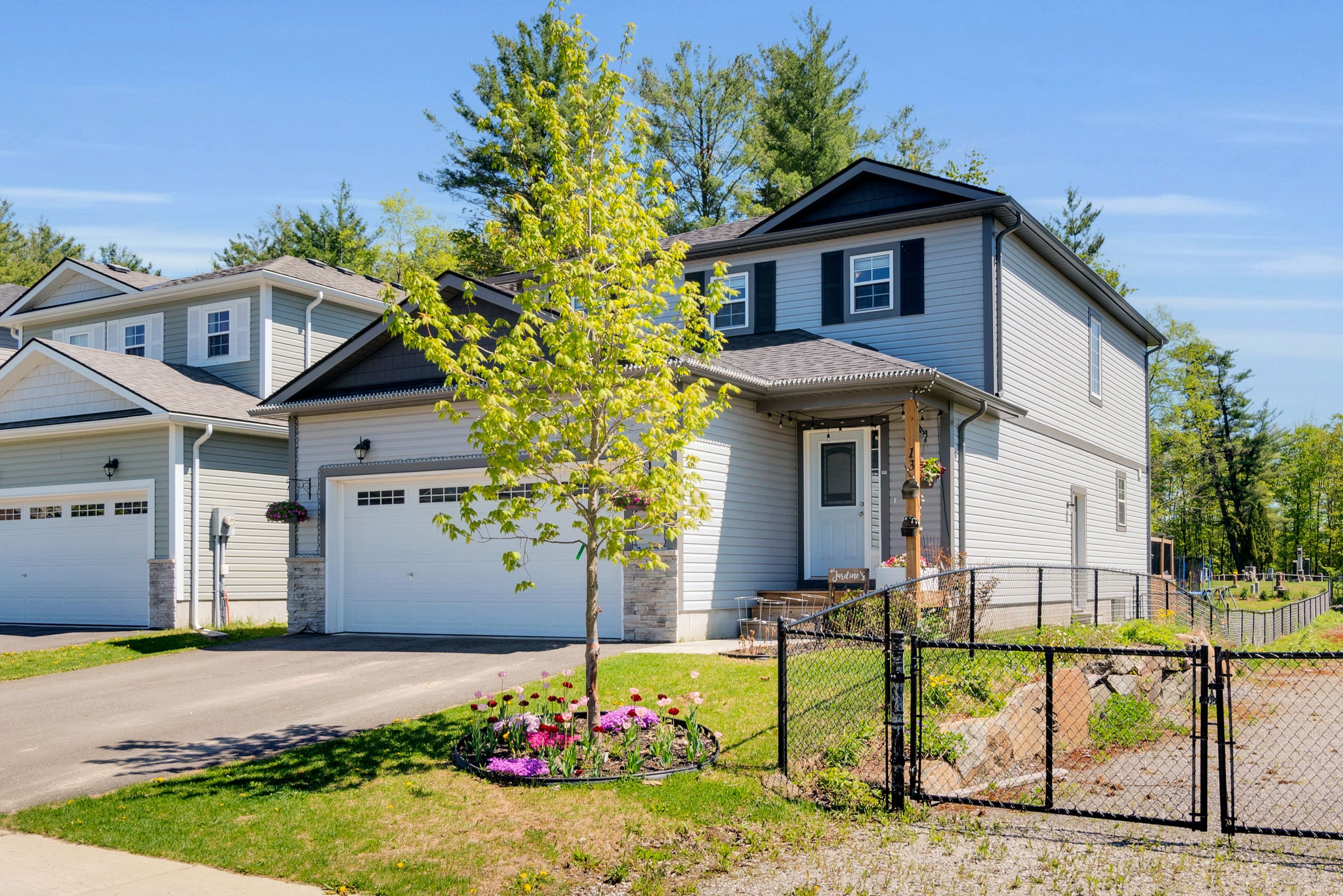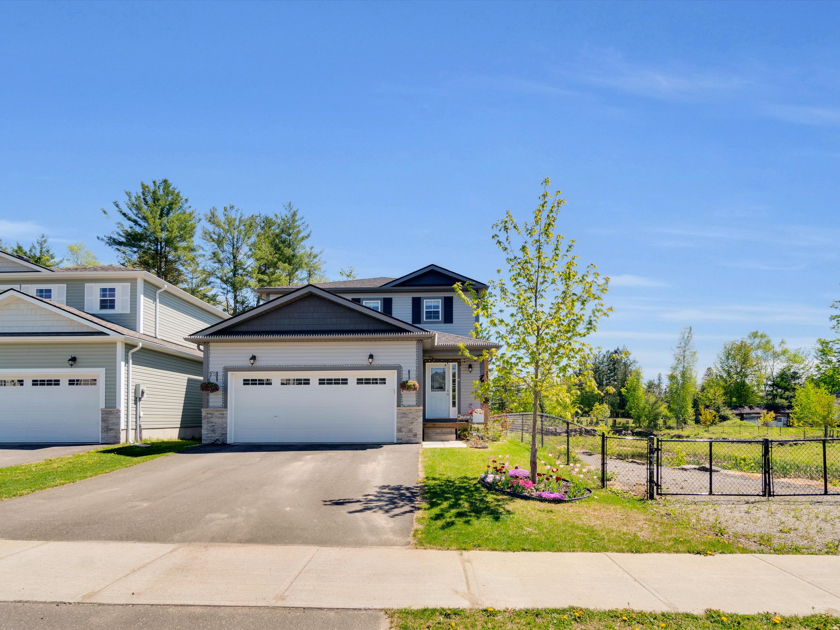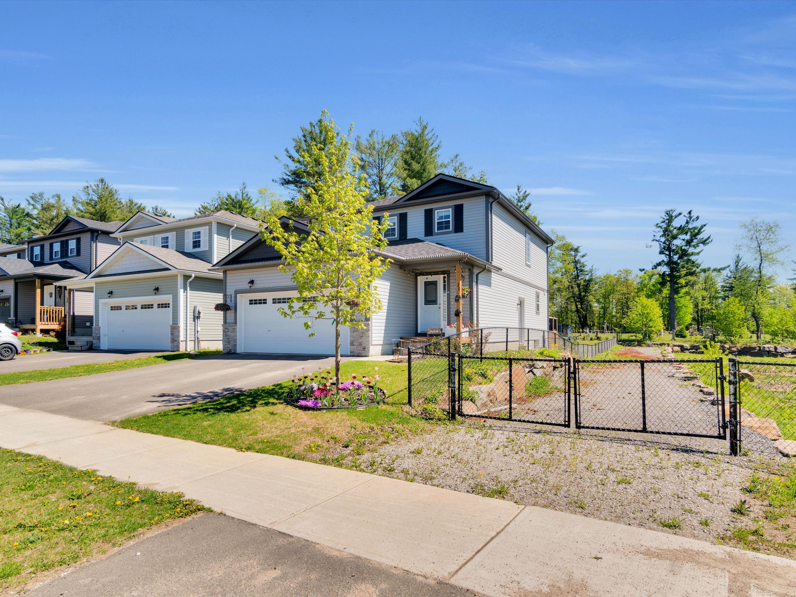 A beautifully designed family home in the heart of Bracebridge - close to schools, the Sportsplex, green spaces, and town amenities. Welcome to this beautifully presented 5-bedroom, 4-bathroom home, built in 2020 and ideally situated on a premium end lot with no neighbour to the west and a peaceful, fully fenced backyard backing onto a quiet green space. With an extra-deep lot and an extended back deck, this property offers privacy, space, and a tranquil setting that's hard to find. Inside, the home is thoughtfully designed with a bright, open-concept main floor featuring a sunlit kitchen with stone countertops, an oversized island, upgraded cabinetry, stylish backsplash, and stainless steel Samsung appliances. The spacious living area includes a gas fireplace, pot lights, and waterproof vinyl flooring - perfect for modern family living and entertaining. The main floor also includes a large front foyer, powder room, laundry room, and access to the double garage, which is extended for added storage. Upstairs, you'll find four generous bedrooms and a beautiful 4-piece main bathroom. The primary suite includes a walk-in closet and a luxurious ensuite with a deep soaker tub. The fully finished lower level offers incredible flexibility with a large rec/games room, media room (or fifth bedroom), 3-piece bathroom, and a kitchenette rough-in - plus a separate side entrance, making it ideal for an in-law suite. With its unbeatable location, thoughtful upgrades, and versatile layout, this is a home designed to grow with your family for years to come.