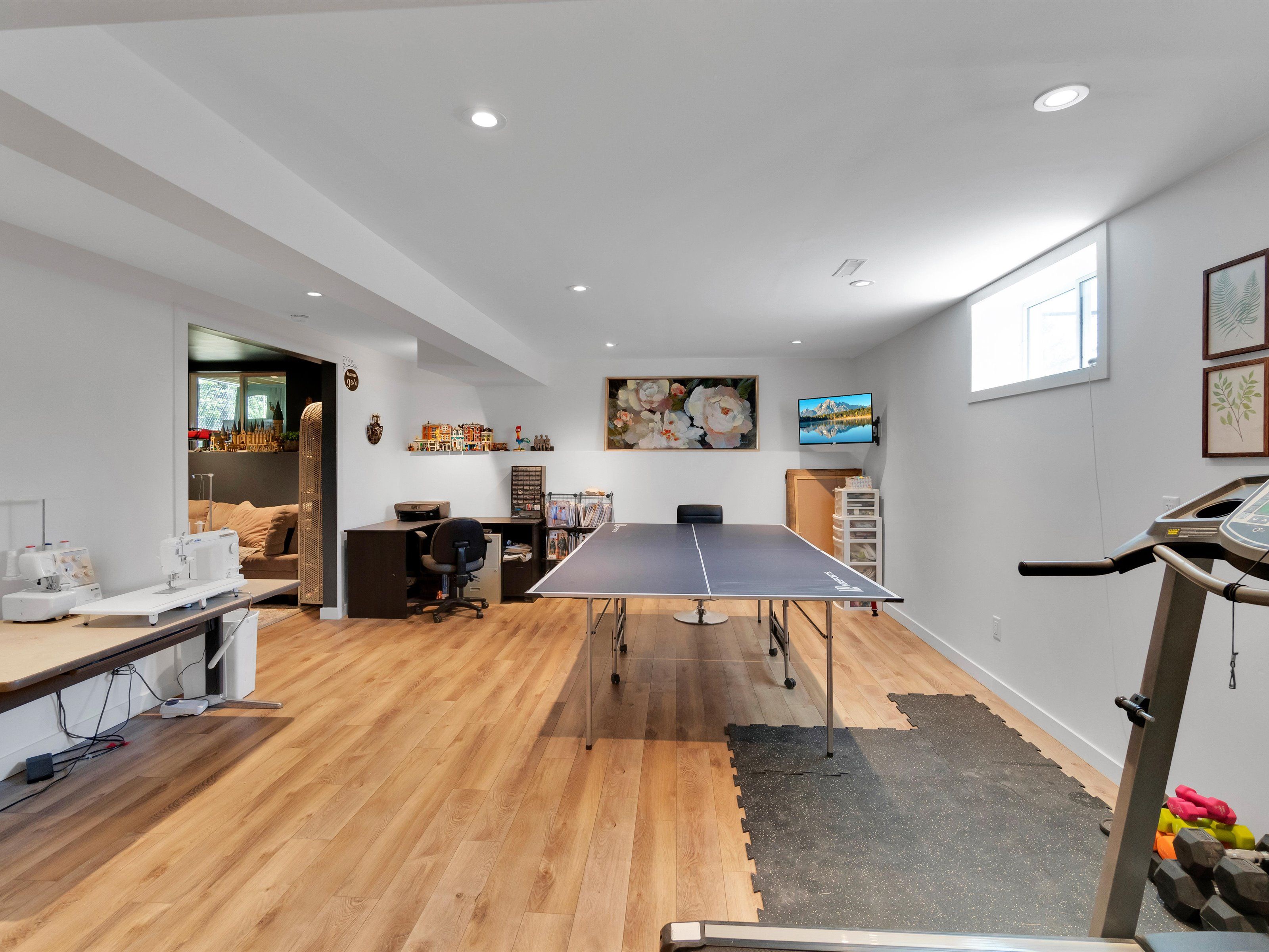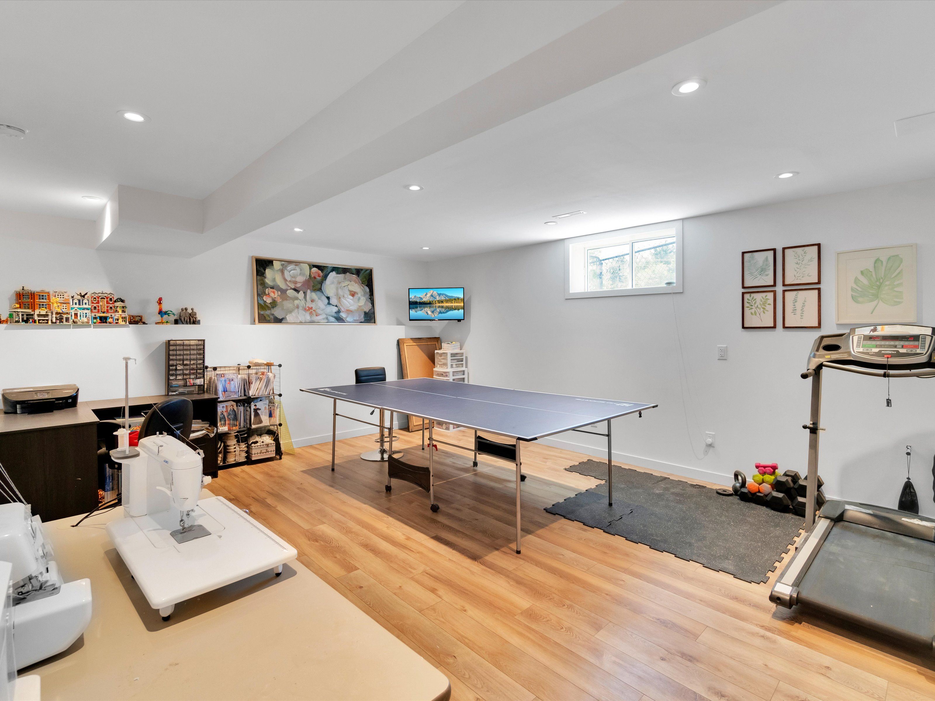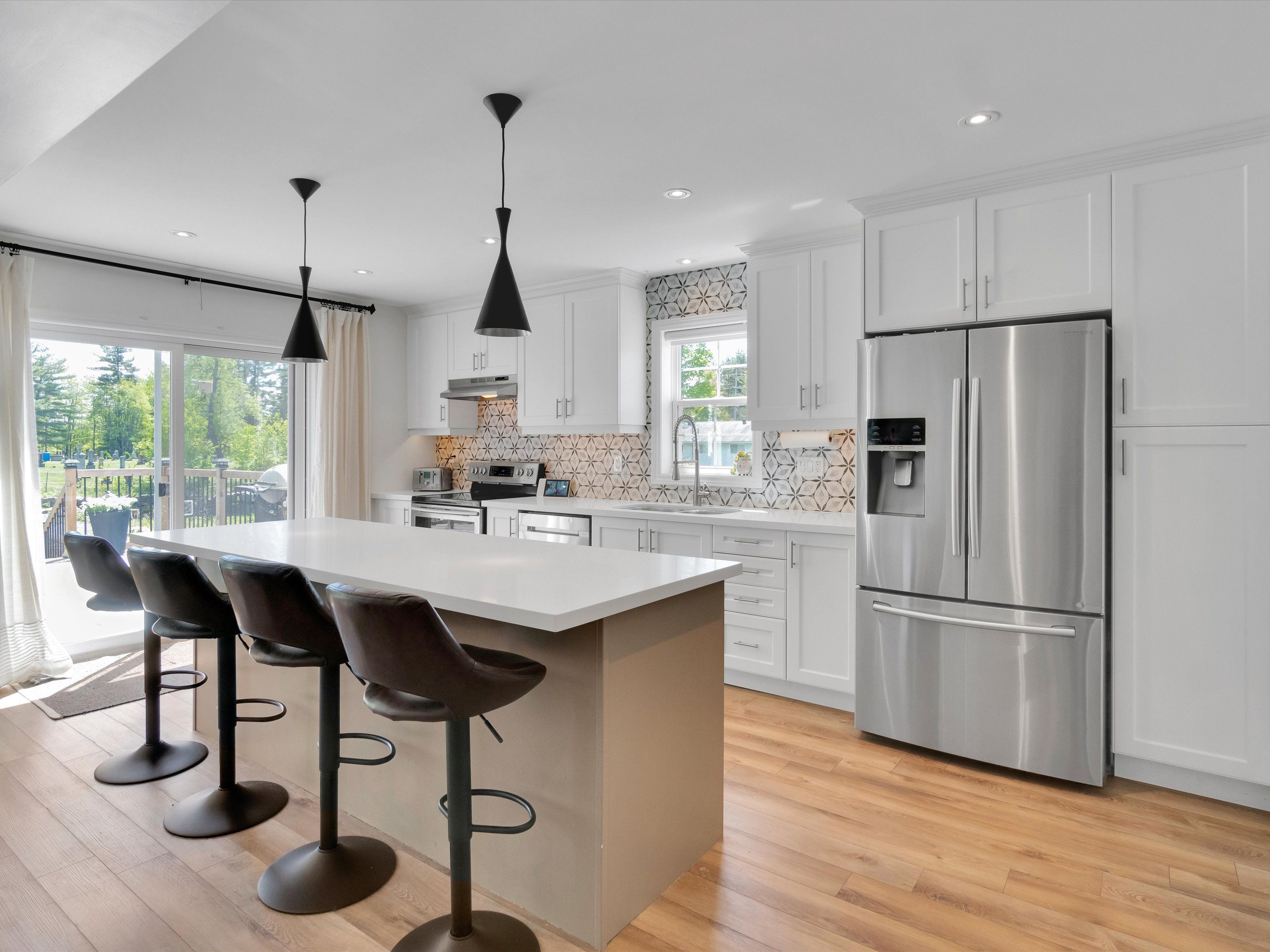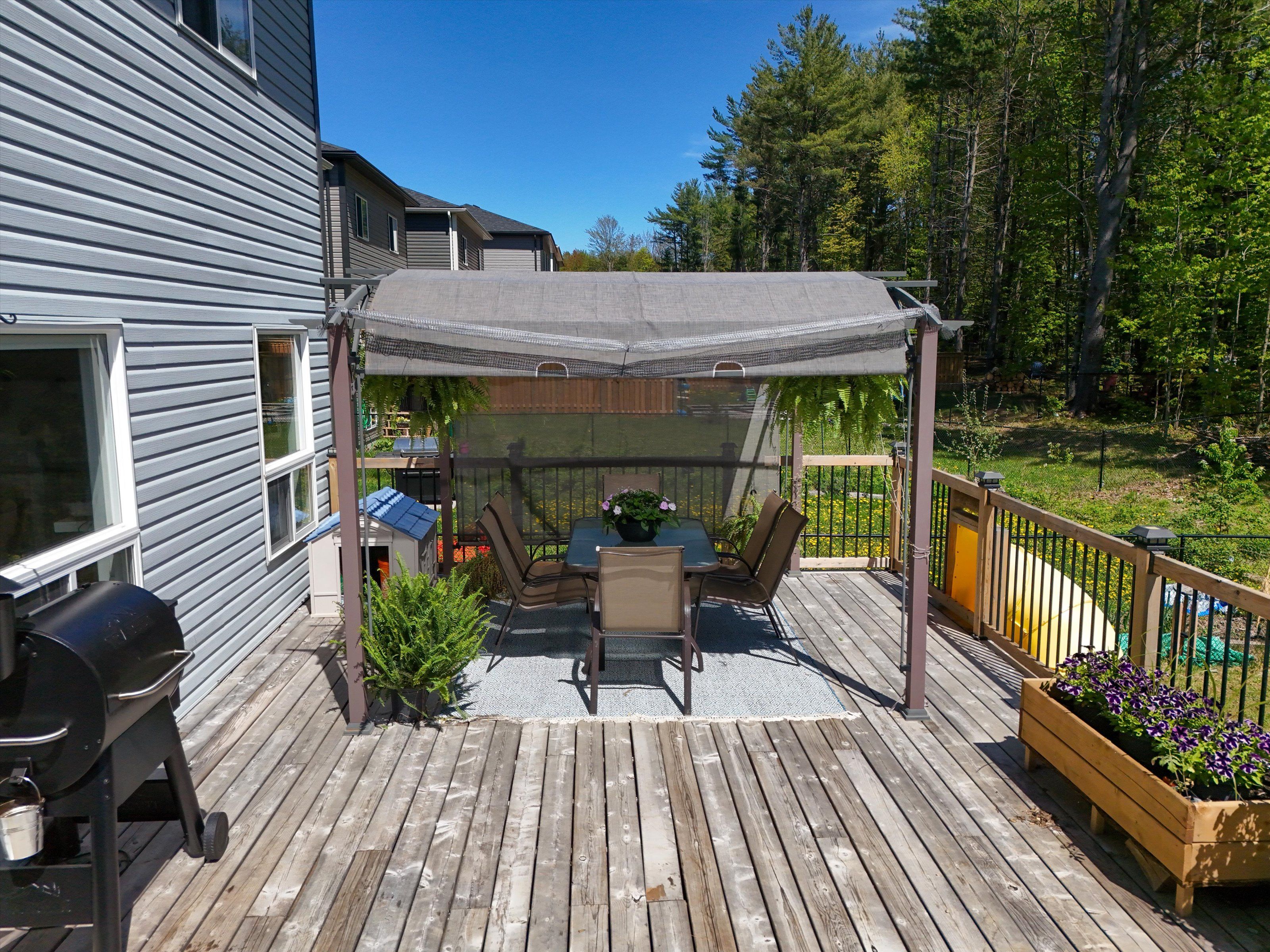 A beautifully designed family home in the heart of Bracebridge - close to schools, the Sportsplex, green spaces, and town amenities. Welcome to this beautifully presented 5-bedroom, 4-bathroom home, built in 2020 and ideally situated on a premium end lot with no neighbour to the west and a peaceful, fully fenced backyard backing onto a quiet green space. With an extra-deep lot and an extended back deck, this property offers privacy, space, and a tranquil setting that's hard to find. Inside, the home is thoughtfully designed with a bright, open-concept main floor featuring a sunlit kitchen with stone countertops, an oversized island, upgraded cabinetry, stylish backsplash, and stainless steel Samsung appliances. The spacious living area includes a gas fireplace, pot lights, and waterproof vinyl flooring - perfect for modern family living and entertaining. The main floor also includes a large front foyer, powder room, laundry room, and access to the double garage, which is extended for added storage. Upstairs, you'll find four generous bedrooms and a beautiful 4-piece main bathroom. The primary suite includes a walk-in closet and a luxurious ensuite with a deep soaker tub. The fully finished lower level offers incredible flexibility with a large rec/games room, media room (or fifth bedroom), 3-piece bathroom, and a kitchenette rough-in - plus a separate side entrance, making it ideal for an in-law suite. With its unbeatable location, thoughtful upgrades, and versatile layout, this is a home designed to grow with your family for years to come.