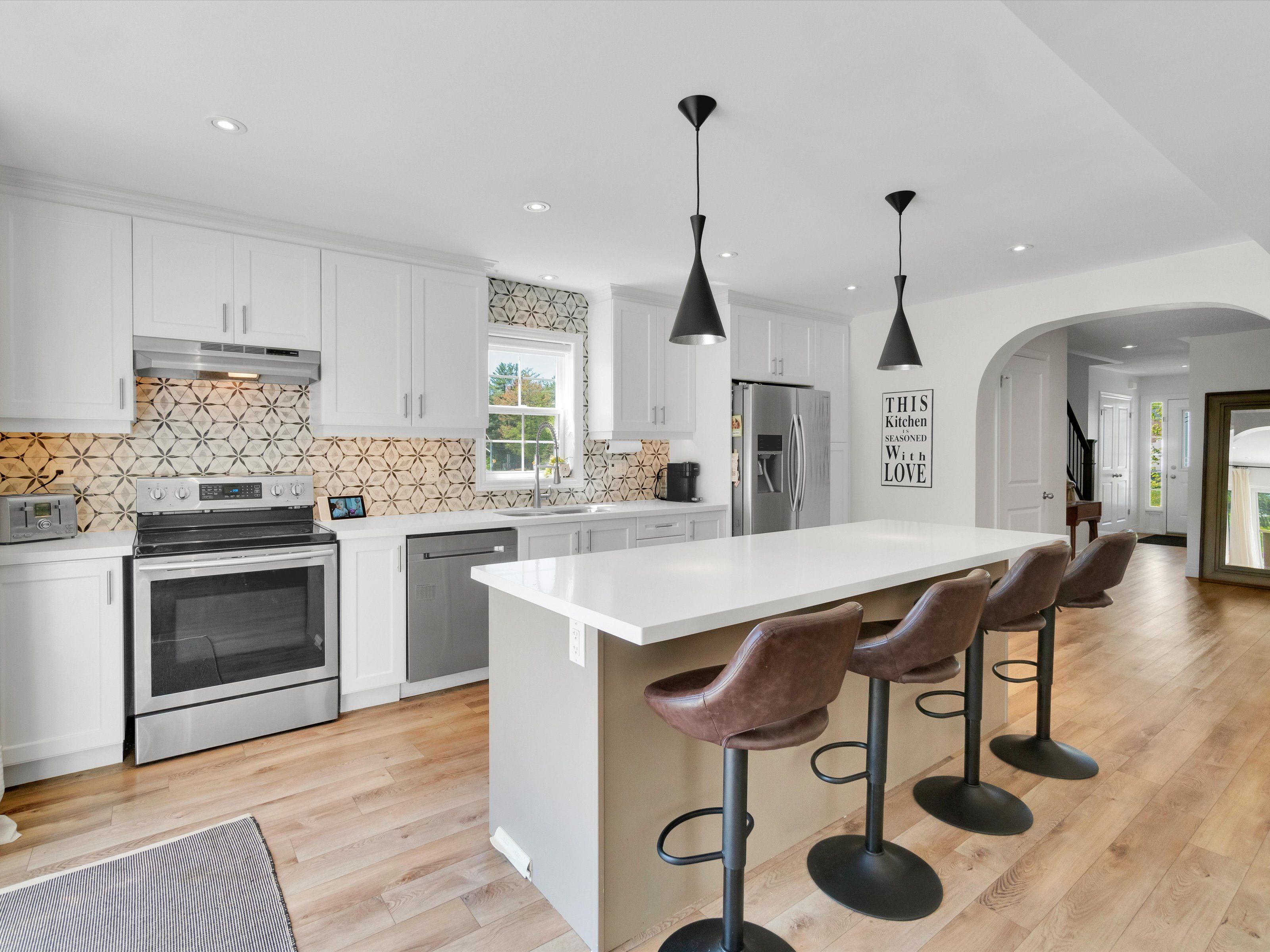 位于布雷斯布里奇市中心,设计精美的家庭住宅,毗邻学校、体育馆、绿地和城镇便利设施。欢迎来到这座精心呈现的5卧4卫住宅,于2020年建成,坐落在优质的尽头地段,西侧没有邻居,拥有安静、完全围栏的后院,可俯瞰宁静的绿地。这座房产拥有超深的土地和延伸的后甲板,提供隐私、空间和难以寻觅的宁静环境。室内设计巧妙,一楼采光明亮,采用开放式概念,设有阳光普照的厨房,配有石英台面、超大岛屿、升级的橱柜、时尚的 backsplash 以及不锈钢三星家电。宽敞的起居空间设有燃气壁炉、射灯和防水乙烯基地板,非常适合现代家庭生活和娱乐。一楼还包括宽大的前门厅、洗手间、洗衣房以及通往双车位的车库通道,车库已延伸,提供额外的储物空间。二楼有四个宽敞的卧室和一个漂亮的4件式主卫浴。主卧套房设有步入式衣帽间和豪华的套间浴室,配有深浸浴缸。完全装修的地下室提供令人难以置信的灵活性,设有宽敞的休闲/游戏室、媒体室(或第五间卧室)、3件式浴室和一个厨房的预留管道,外加独立的侧门通道,使其非常适合作为岳父母房。凭借其无与伦比的地理位置、经过深思熟虑的升级和多功能布局,这座住宅的设计旨在让您的家人在未来数年不断成长。