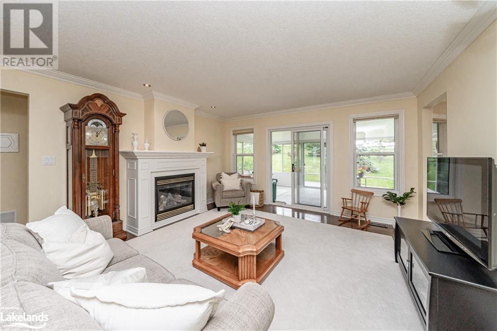Welcome to the epitome of luxurious living in the coveted Covered Bridge neighbourhood. This immaculate sprawling bungalow offers a blend of elegance and comfort. With 4 bedrooms, 3.5 bathrooms, and breathtaking treed and landscaped views from the Muskoka room, this home is a true gem. Upon arrival, you'll be greeted by the charming curb appeal and the convenience of an attached 1.5 car garage. A paved driveway not only enhances the aesthetic appeal but also provides ample parking space for guests. The heart of the home lies in the well-appointed kitchen, featuring a beautiful granite countertop with plenty of counter and storage space. Whether you're preparing a family feast or enjoying a quick bite, the formal dining room and eat-in kitchen provide the perfect spaces to create lasting memories with loved ones. The primary bedroom is a true sanctuary, featuring a 5-piece ensuite bathroom with double walk-in closets. Two guest bedrooms share a jack and jill bathroom, creating a comfortable and practical arrangement. Recently installed brand new carpet adds a touch of modern and comfort. Indulge in the beauty of nature as you retreat to the living room with fireplace and Muskoka room, both overlooking the backyard which backs onto the Muskoka Highlands Golf Course. Relax and unwind while admiring the picturesque treed and landscaped views that surround the property. The lower level of the home features an additional bedroom and 4-piece bathroom, providing extra flexibility for guests or family members. The remainder of the basement offers ample storage space or the potential to be finished according to your needs and preferences. This remarkable property offers an exceptional lifestyle in a highly sought-after location. Don't miss the opportunity to make this stunning bungalow your new home. Contact us today to arrange a viewing and experience the allure of this remarkable property for yourself. (id:22211)