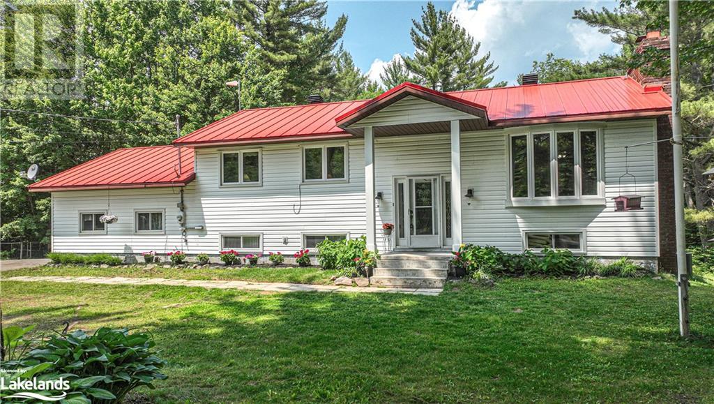 S-T-I-L-L A-V-A-I-L-A-B-L-E - MUSKOKA LAND - Great Opportunity to own and build equity in Muskoka! This 3 bedroom 2 bath home sits on over 11 acres of land and offers plenty of potential to modernize it and make it your own. The main floor features a large kitchen, open concept dining/living room, sunroom and balcony. The basement offers in-law potential with a den, recreation room, walkouts to the back yard and garage, a 3pc bathroom and kitchen/laundry room. Many big ticket items have been recently updated; AC & Propane Furnace installed Nov 2022, Water pressure tank was replaced in Nov 22, well pump & heat line 2022, 200 Amp panel with Breakers, Vinyl windows are tinted. The former 2 Garage has been converted to a single car garage and workshop, but could be converted back to a proper 2 car garage. (id:22211)