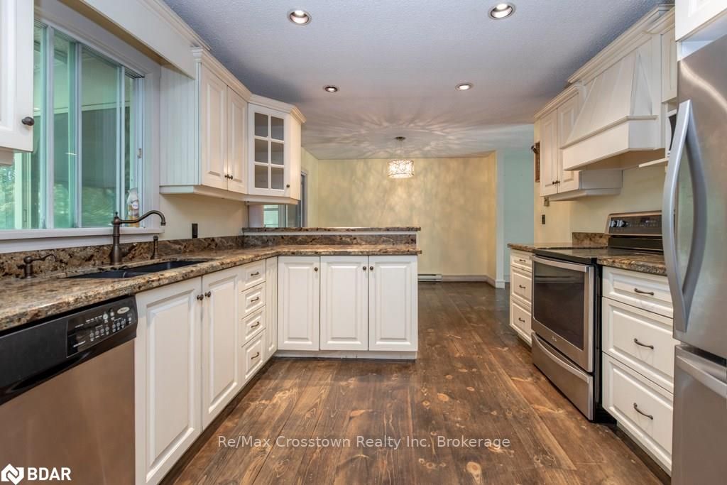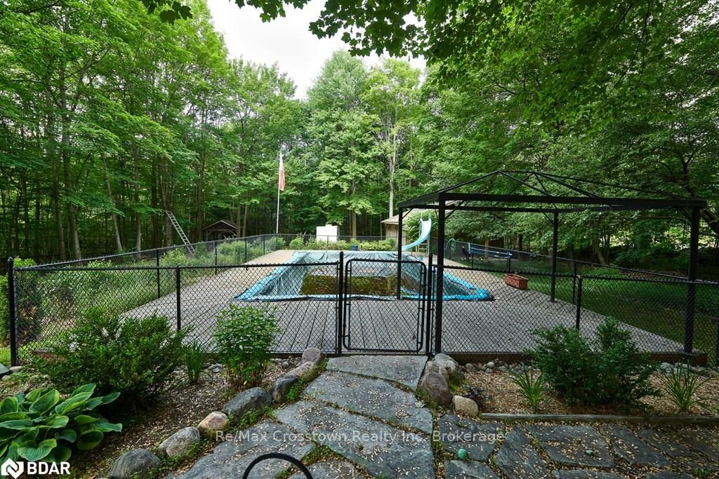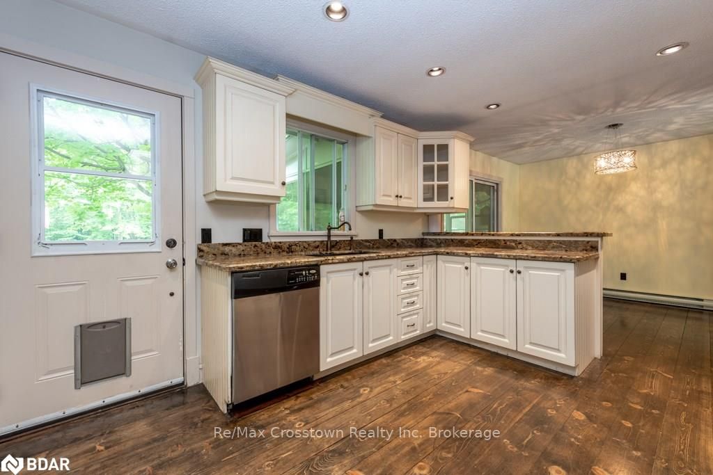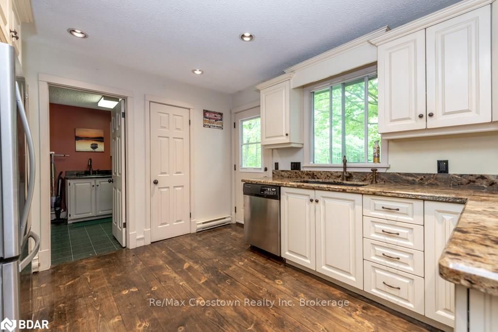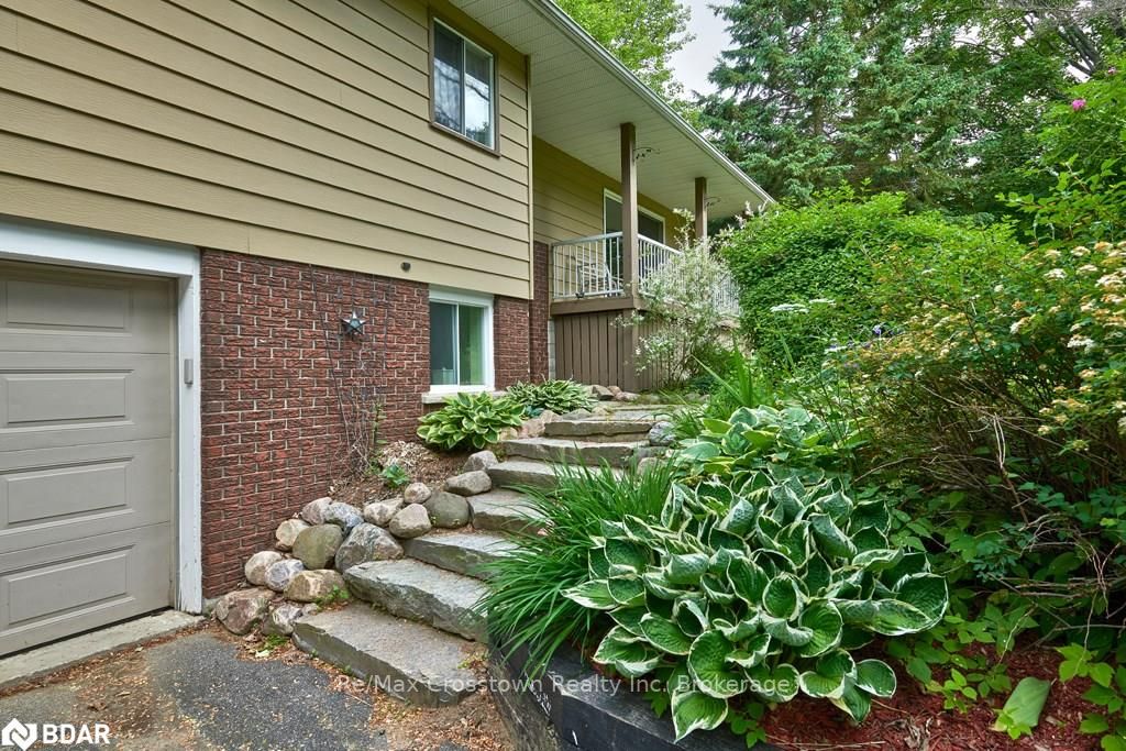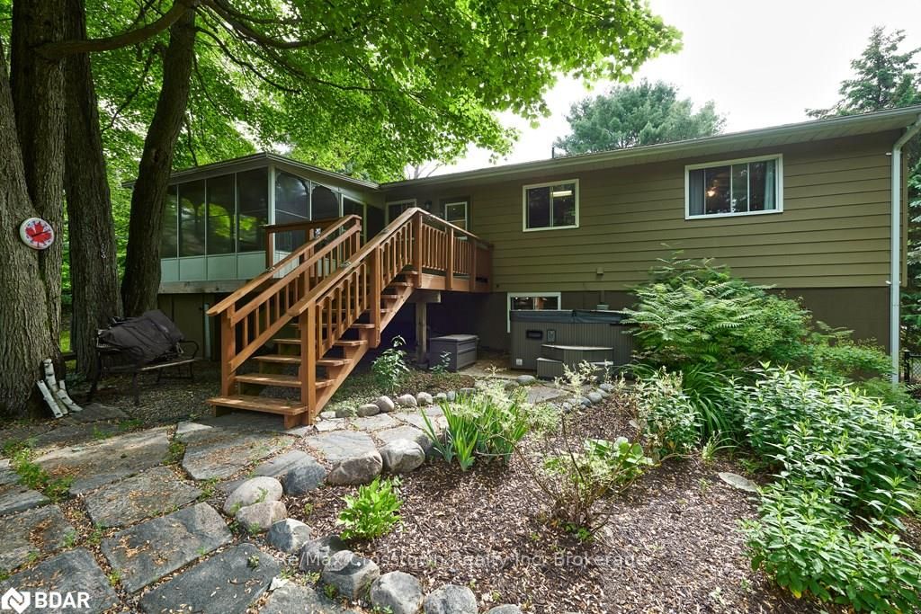 Amazing Property to kick back and enjoy cottage living in-town! Backing onto A Green Belt Own by The Town of Bracebridge! Large (107X250') property features attached garage with heated storage. A generous size heated in-ground pool and hot tub, professionally landscaped oases. Totally fenced in. A custom detached 32'X27' insulated workshop/garage with radiant in-floor heating and water. Attached carport. Apple & Maple trees and yes, a sugar shack to make your own maple syrup. Gazebo and fire pit to fully enjoy your piece of paradise. This 2+1 bedroom, 2 bathrooms custom kitchen with granite counter tops, main floor laundry, 3 seasons sun-room, walk out from basement offers over 1900 sf of living space. This is a must see!