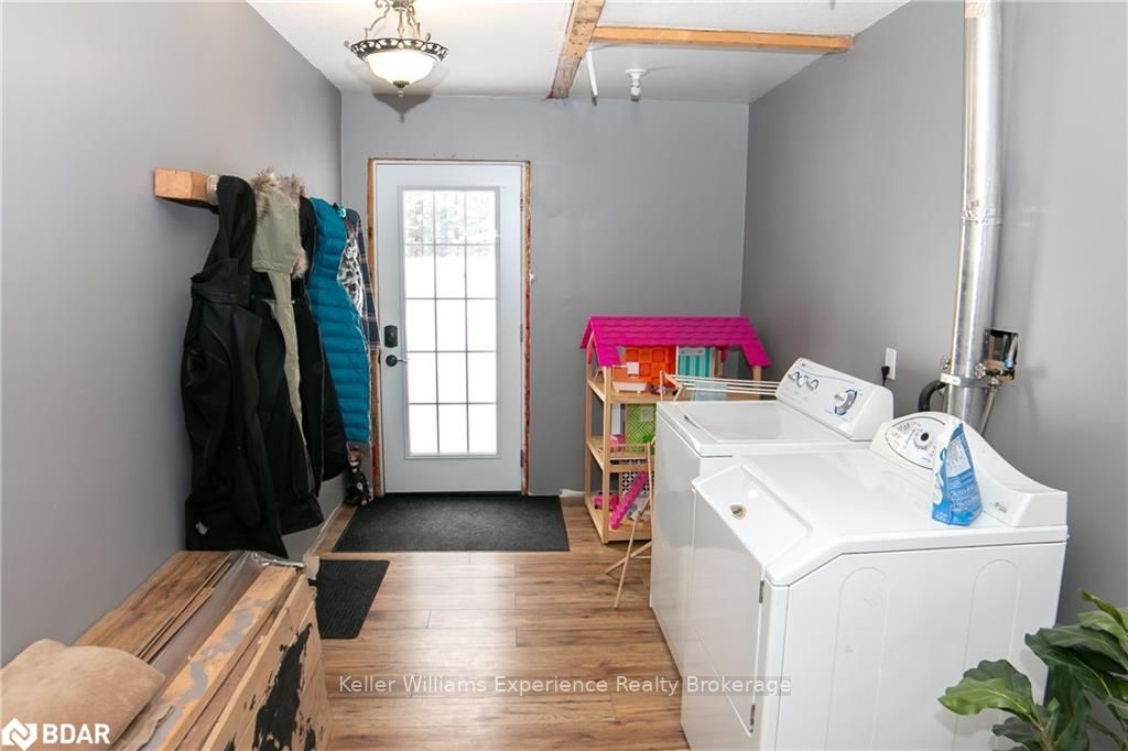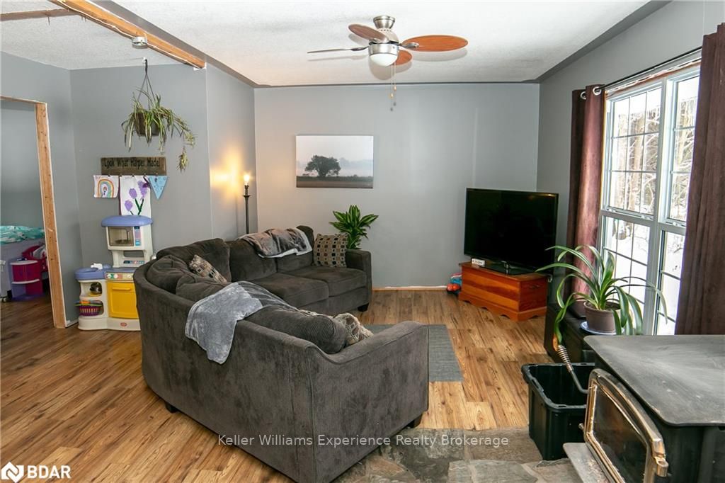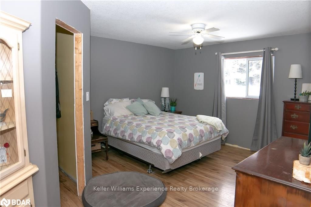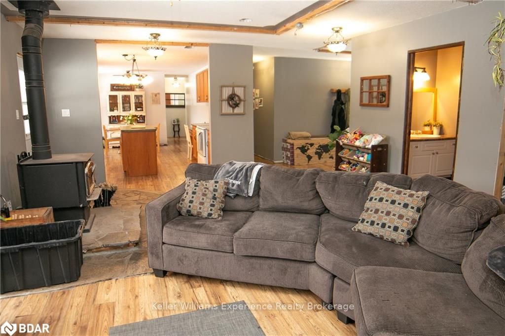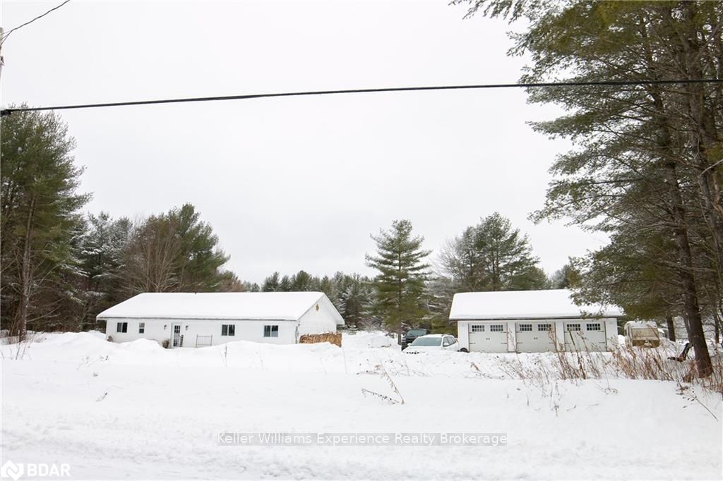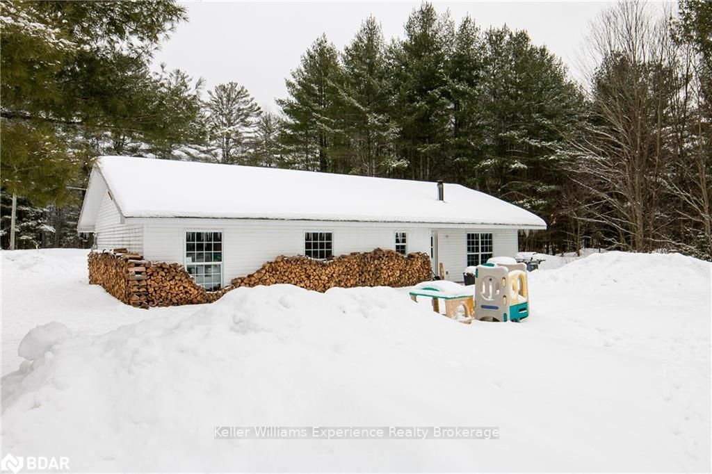 Charming home situated on just over 17 acres in beautiful Bracebridge. Located just minutes from the highway and the Muskoka Airport, this private piece of paradise showcases a pond and lots of space for toys. Featuring a one storey home with a large eat in kitchen with island, spacious living room and four bedrooms (all with walk in closets) master has 3 piece en suite. Laminate floors throughout, stone floors at entry way and main bathroom. Detached 3 car garage is heated! Home is heated with a wood burning stove and radiant floor heating throughout! Perfect for year round living or summer retreat!