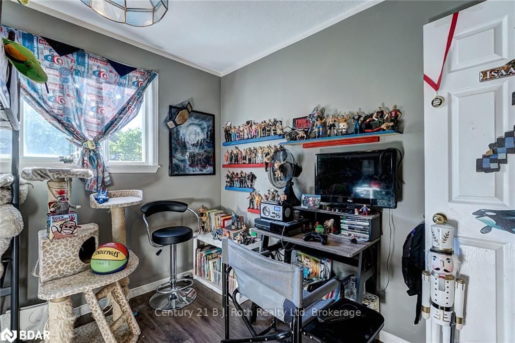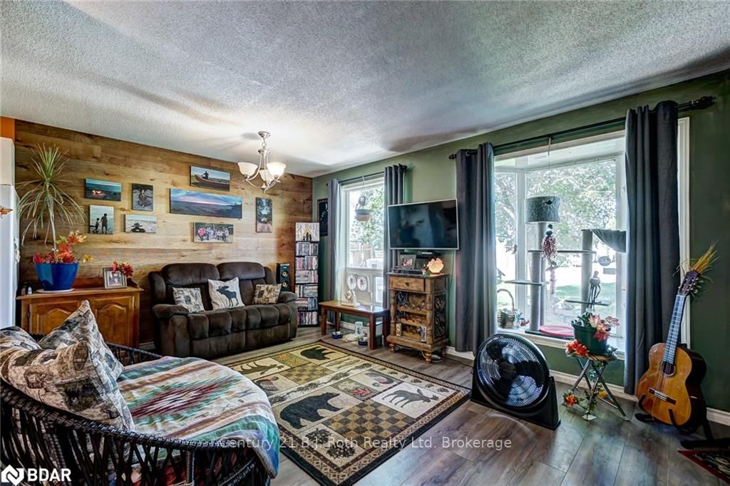 LOCATION, LOCATION!!! In the quaint northern town of Bracebridge, you will find 1 Pinecone drive nestled in a family friendly community, within minutes walk to schools, business centres, and ALL your shopping needs. This clean and cozy 3 bedroom 1 bathroom home, offers approx. 1000 sq. ft. of living space, and ample outdoor space for BBQ's, and the children to play. A tastefully landscaped front yard, has a new deck with privacy fence, for sitting under the shade of the mature maple tree. Enjoy the morning/afternoon sunshine through the big bay window in the living room, or cozy up to the gas fireplace that warms your toes during the winter months. Each bedroom is generous in size, with large windows, letting in an abundance of natural light. Beautiful laminate flooring has been professionally installed, and walls have recently been painted. Garage turned man cave/shop, can easily be converted back into one car garage. Easy access from garage to rear yard which offers another deck,