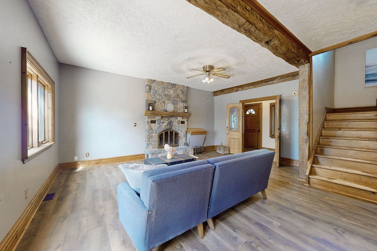 Charming Century Home With Many Original Features and Updates For Today's Living. Enjoy Both Small and Large Gatherings on The Huge Wrap Around Veranda. You Will Love The High Ceilings Throughout the Home, Beadboard Detailing In the Kitchen, Reclaimed Barn Beams in the Family Room, Wood Burning Fireplace, and Vaulted Ceiling In the Primary Bedroom. And Nearly Half an Acre To Call Your Own. Retreat To The Back Deck For Sunset Views! Enjoy Not One, But Two Large Garages, Use One As A Workshop/Studio. Storage Space Above Garage Is Accessible By A Pull-Down Staircase. Country Living Just Mins From Bradford, Cookstown, Barrie, Newmarket and Schomberg. Just Off Hwy 27, Close to Hwy 400 and Hwy 88. In the Charming Community of Newton Robinson. Complete With Steel Wheel in Basement Used to Make Wagon Wheels by Previous Blacksmith Owner.100 Amps to the House and 100 Amps to the Garage (200 Amps total to the property). 2 Wells, One services the house, the other is used for the garden and garage. Forced Air Through-out with the exception of baseboard heating in 3 Bedrooms.