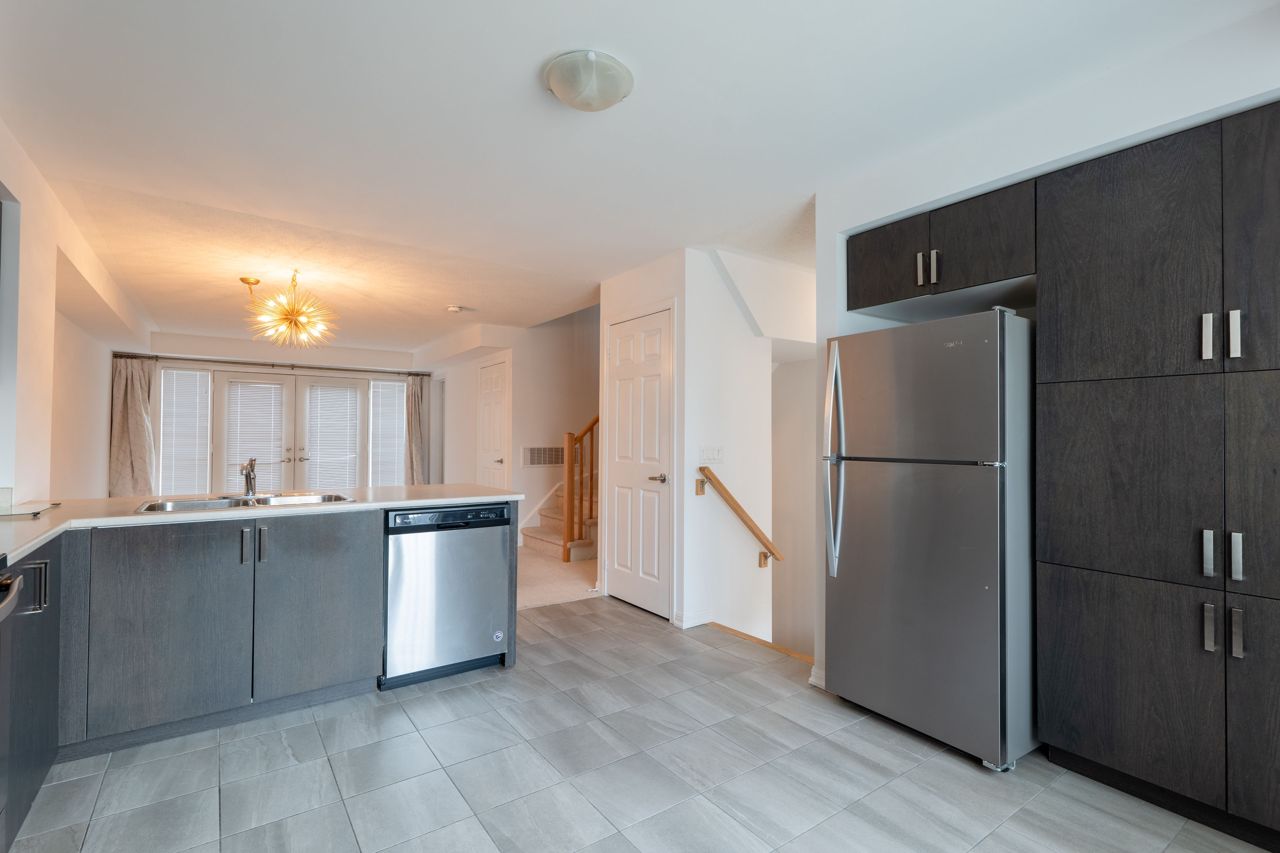 Welcome to your future home! This stunning condo townhouse nestled in close proximity to a serene park and a picturesque pond, offers the perfect blend of modern living and convenience. It features open-concept living, dining, and kitchen area with stainless steel appliances. This immaculate dwelling offers two spacious bedrooms, each accompanied by its own ensuite bathroom. Additional features include second-floor laundry, a one-car garage, and a substantial deck, ideal for outdoor barbeques or enjoying a tranquil morning coffee. Moreover, this property enjoys a superb location, in close proximity to schools, Highway 407, shopping centers, public transit, and parks.