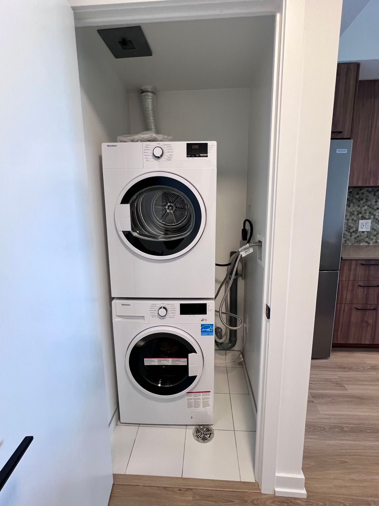 Brand New and Bright 1 Bed + Den South Facing Unit in Master Planned Community by Top Builder, Daniels in Mount Pleasant Village, Northwest Brampton. Only Steps from the Mount Pleasant GO Train Station, Library, Fortinos, Longos, Starbucks, Pharmacy, and More Amenities. Easy Access to Major Highway and Downtown via GO Transit. Open Kitchen with Quartz Countertops, Stainless Steel Appliances, and a Convenient Centre Island. Floor to Ceiling Windows. Ample Visitor Parking in the Building. 1 underground Parking very close to the elevator and 1 locker included.S/S Appliances (Fridge, Oven, Microwave, Range Hood, B/I Dishwasher), Washer And Dryer, All Existing Electric Light Fixtures.
