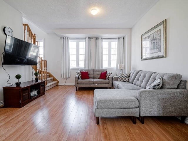 Approx 3 Years New Gorgeous 3 Bedroom Freehold Town Home. Open Concept Great Room With Spacious Kitchen, Granite Counter Top In Kitchen With Stainless Steel Appliances. Master Bedroom With Walkout To Balcony. Main Floor Finished Rec. Room Can Be Used As A Den. Main Floor Laundry Room. Fully Fenced Backyard. All Existing Elf's, Window Coverings, Stainless Steel Fridge, Stove, B/I Dishwasher, Clothes Washer & Dryer.