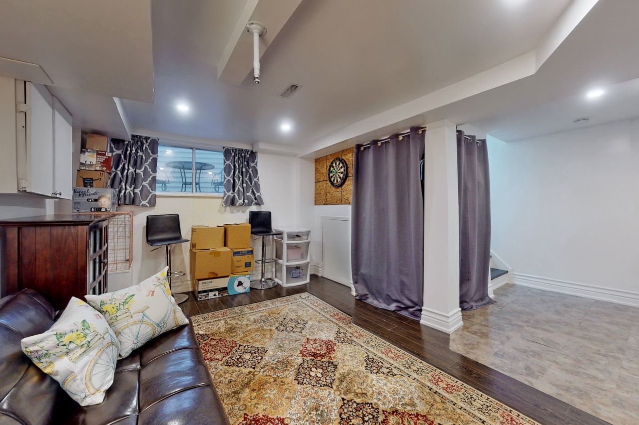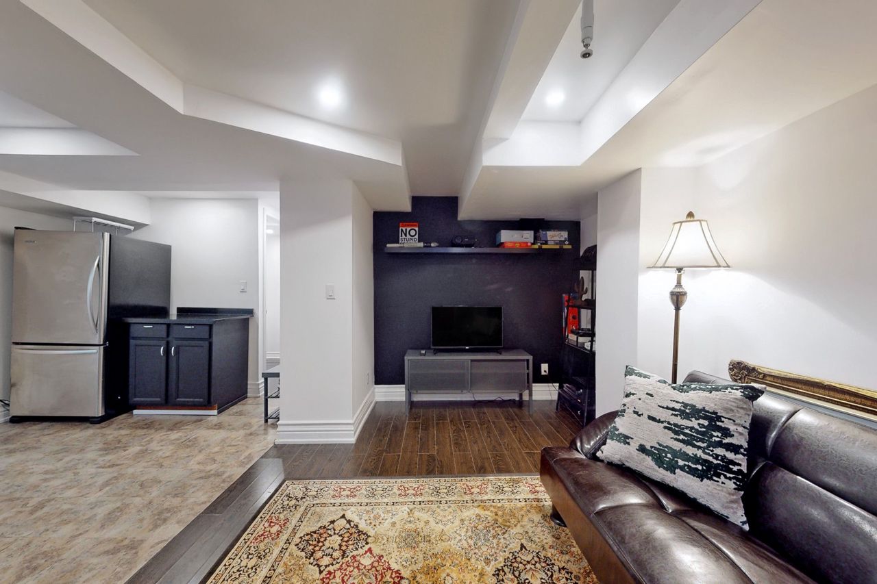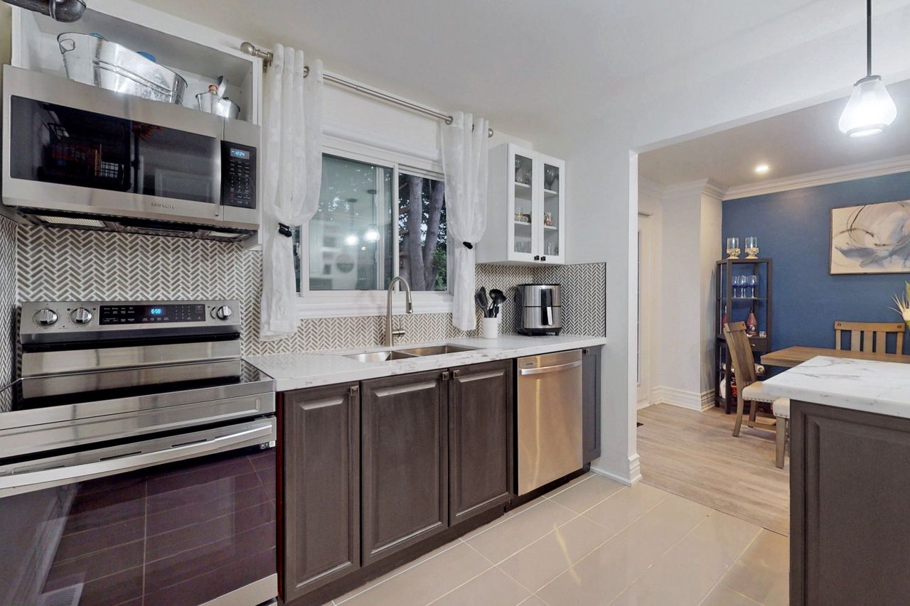 Recently Renovated Throughout! Fabulous Starter Home Situated At The End Of A Quiet Court With A Large Private Yard Backing Onto Parkland and Access to Playground. This Spacious And Renovated Home Features Recently Renovated and Redesigned Kitchen With New Quartz Countertops, New Cabinetry, Flooring And New Stainless Steel Appliances, Laminate Floors On All Levels, , Potlights, Crown Molding, Smooth Ceilings, Large Baseboards, Wifi Outlets In Rooms, And Freshly Painted Throughout. Finished Basement With Large Windows. Lot Widens To 31.5 Feet.High-End New Appliances, Fully Renovated Kitchen, Bathrooms Including New Powder Room & Stand-up Shower in Bathroom at Lower Level, New Kitchenette W/Fridge in Lower Level, Flooring on Main Level & Freshly Painted. New Kitchen & Bay Window
