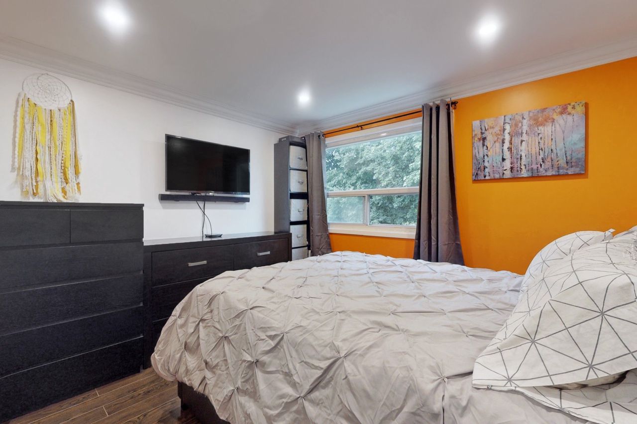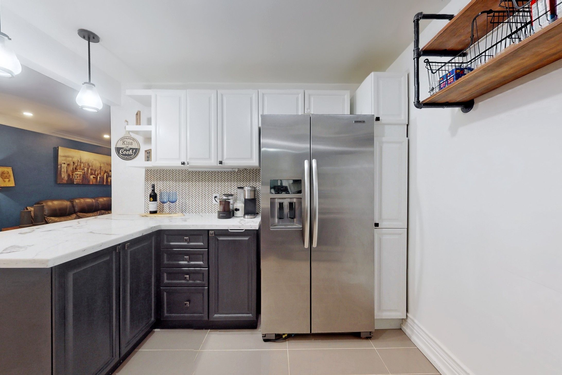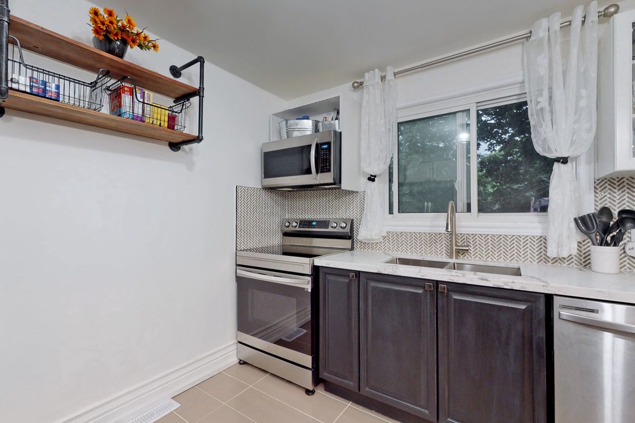 Recently Renovated Throughout! Fabulous Starter Home Situated At The End Of A Quiet Court With A Large Private Yard Backing Onto Parkland and Access to Playground. This Spacious And Renovated Home Features Recently Renovated and Redesigned Kitchen With New Quartz Countertops, New Cabinetry, Flooring And New Stainless Steel Appliances, Laminate Floors On All Levels, , Potlights, Crown Molding, Smooth Ceilings, Large Baseboards, Wifi Outlets In Rooms, And Freshly Painted Throughout. Finished Basement With Large Windows. Lot Widens To 31.5 Feet.High-End New Appliances, Fully Renovated Kitchen, Bathrooms Including New Powder Room & Stand-up Shower in Bathroom at Lower Level, New Kitchenette W/Fridge in Lower Level, Flooring on Main Level & Freshly Painted. New Kitchen & Bay Window