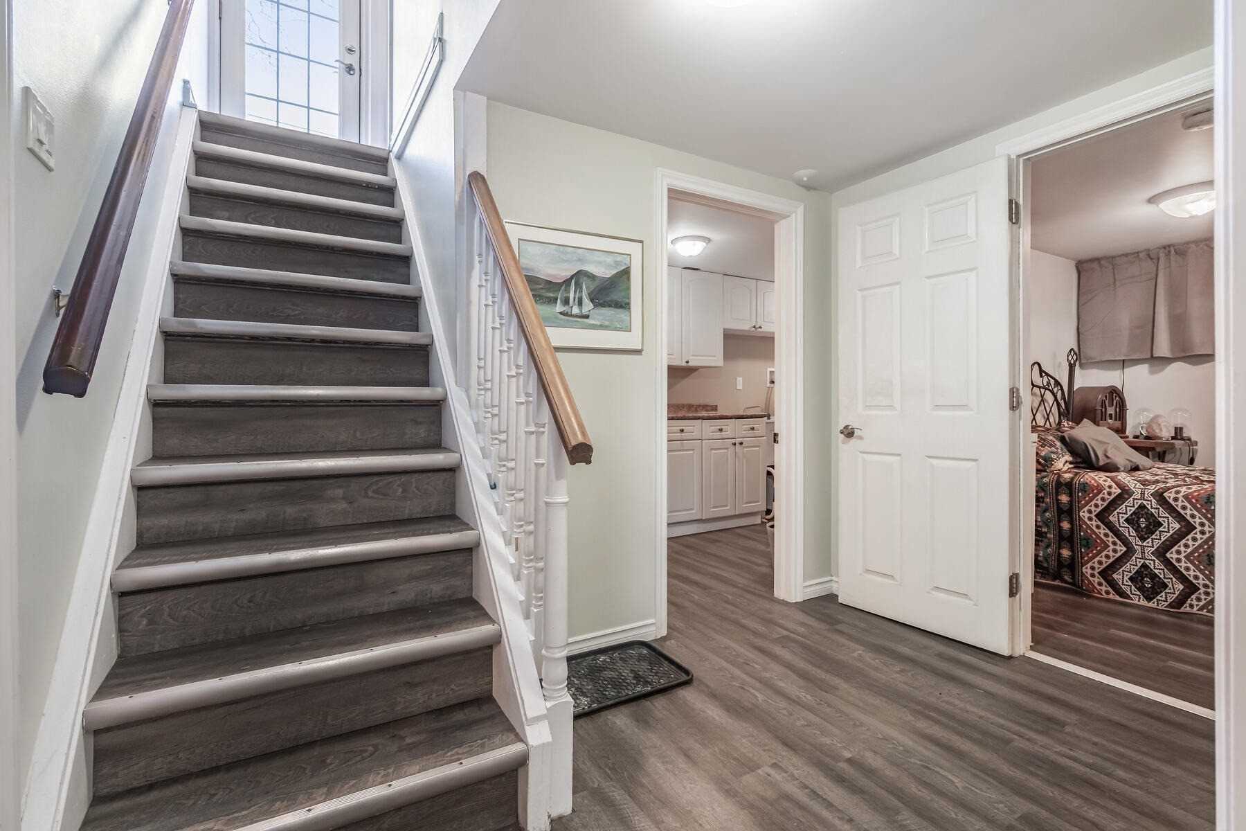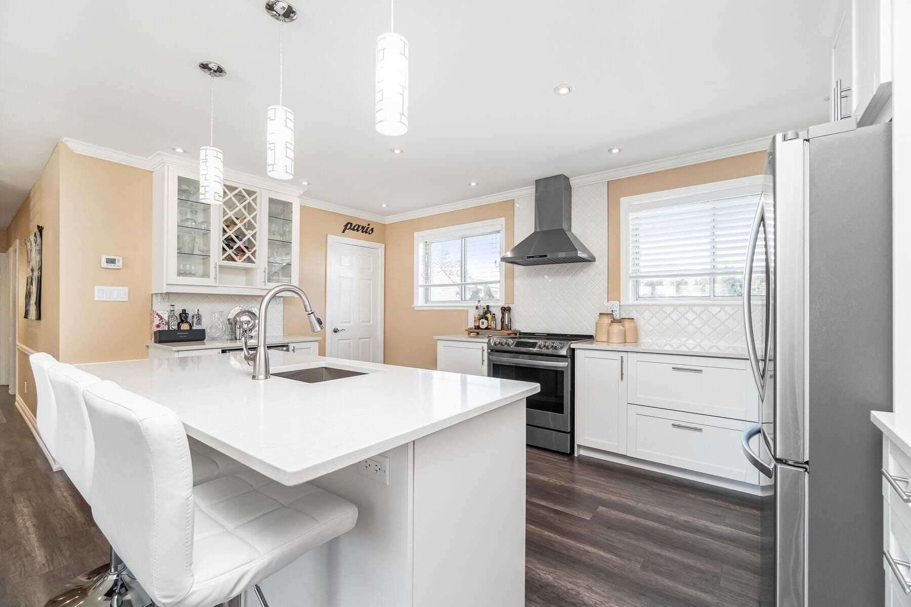 This Stunning, Completely Turnkey 4+2 Bedroom 2271 Sq Ft* Of Living Space In The Heart Of The Desirable Peel Village Neighbourhood. The Sweeping Floor Plan Is Made For Comfortable Multi-Generational Living & Entertaining. Upstairs Kitchen Has Been Reimagined And Is An Entertainers Dream W/ Quartz Countertops, Backsplash, A Large Center Island, White Custom Cabinets, S/S Appliances And Even A Bar! The Breakfast Bar & Adjoining Breakfast Nook Provide Lots Of Options For Casual Dining Or Entertaining Evenings. Garage Has Been Converted Into A Unique Primary Suite W/ Dbl Closets, Semi Ensuite Bath & Adjoins To Another Bdrm That Could Be Used As A Nursery, Sitting Room, Office - Lots Of Possibilities In This Space. Additionally, Tucked Behind The Kitchen Is Access To Lower Level, Offering A Completely Separate 2 Bed, 2 Bath Suite W/ Sep Entrance, Perfect For Extended Family. Luxury Vinyl In Lower, Engineered Waterproof Hardwood On Main.