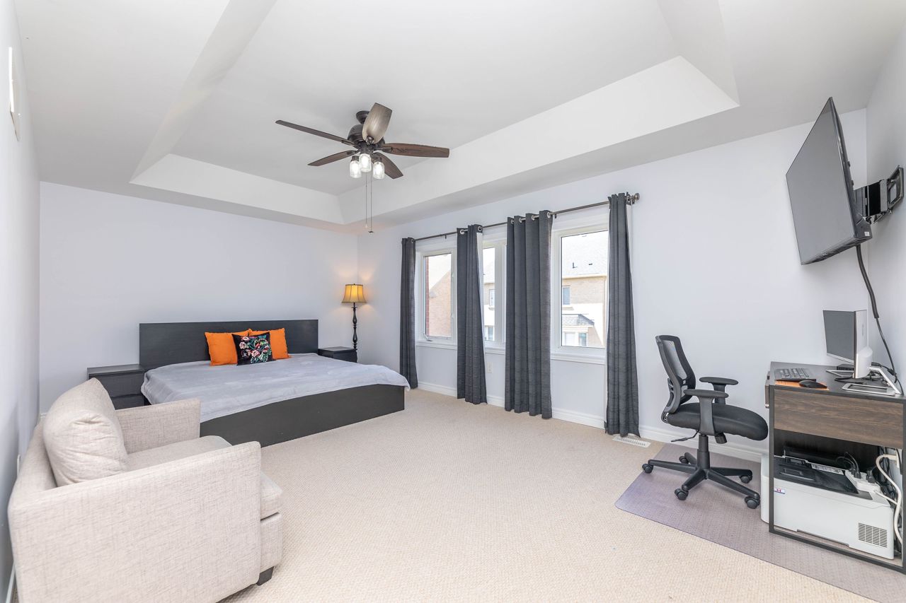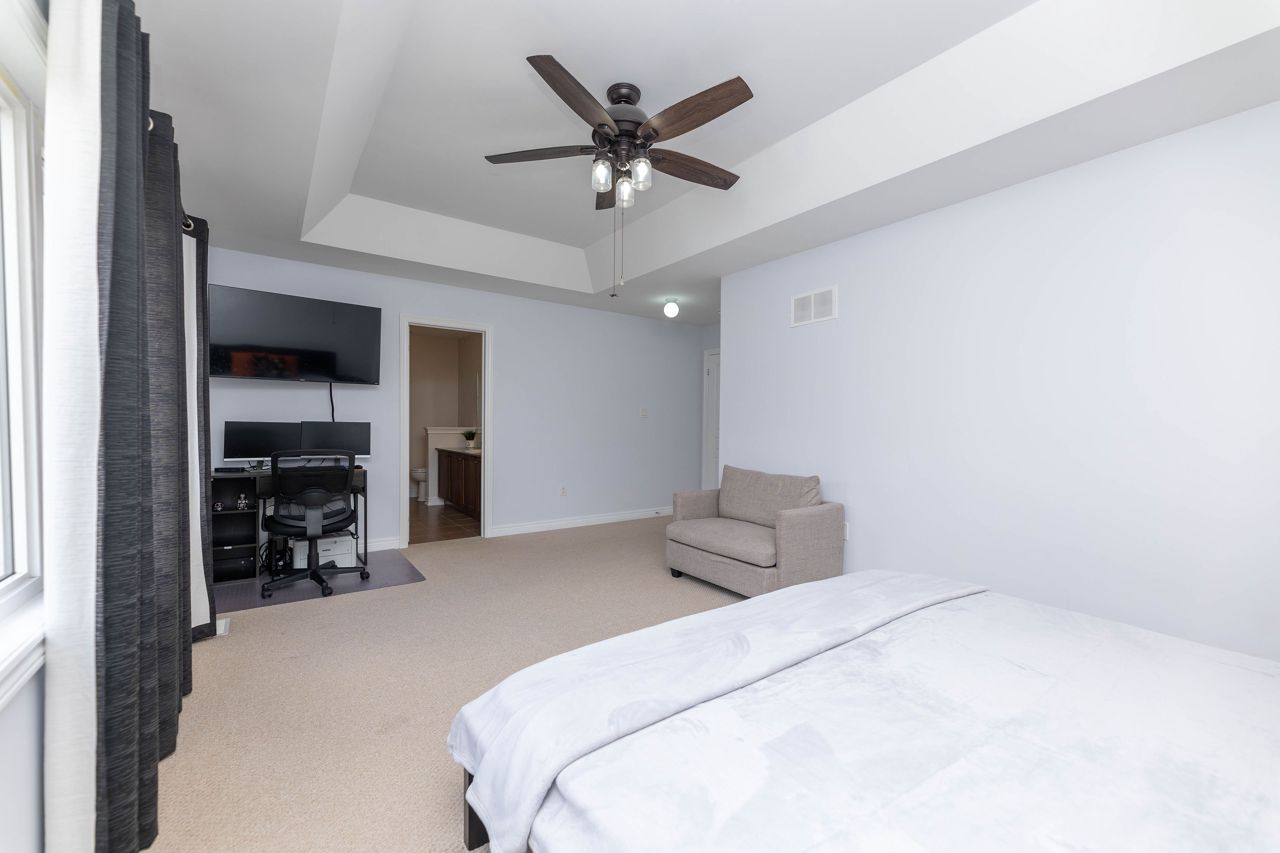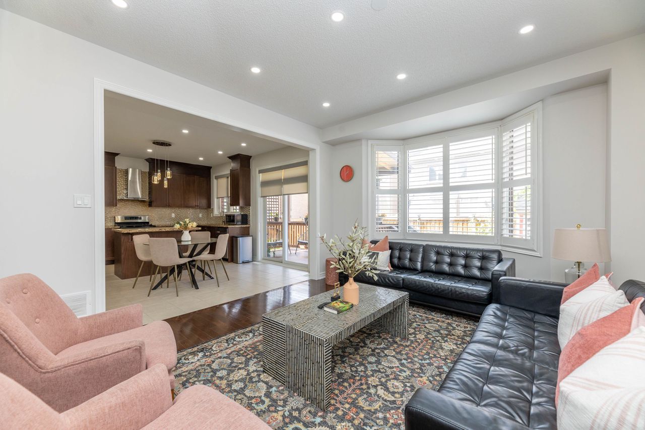 Discover the perfect blend of sophistication and coziness in this stunning detached home situated in the highly desired Credit Valley neighborhood. Positioned at the sought-after Queen and Chinguacousy intersection, this home offers a peaceful cul de sac location and a spacious driveway that can accommodate up to 8 cars, including garage parking. Step into a seamlessly flowing main floor with an open-plan layout that effortlessly connects a spacious kitchen to the living room, enhanced with elegant granite accents. Upgraded stairs lead to 4 bedrooms, each boasting an attached washroom, while upgraded Berber carpets provide added comfort. Balcony offers breathtaking lake view. The separate basement entrance reveals versatile living space with potential for expansion, and the backyard canopy creates a serene indoor-outdoor retreat.