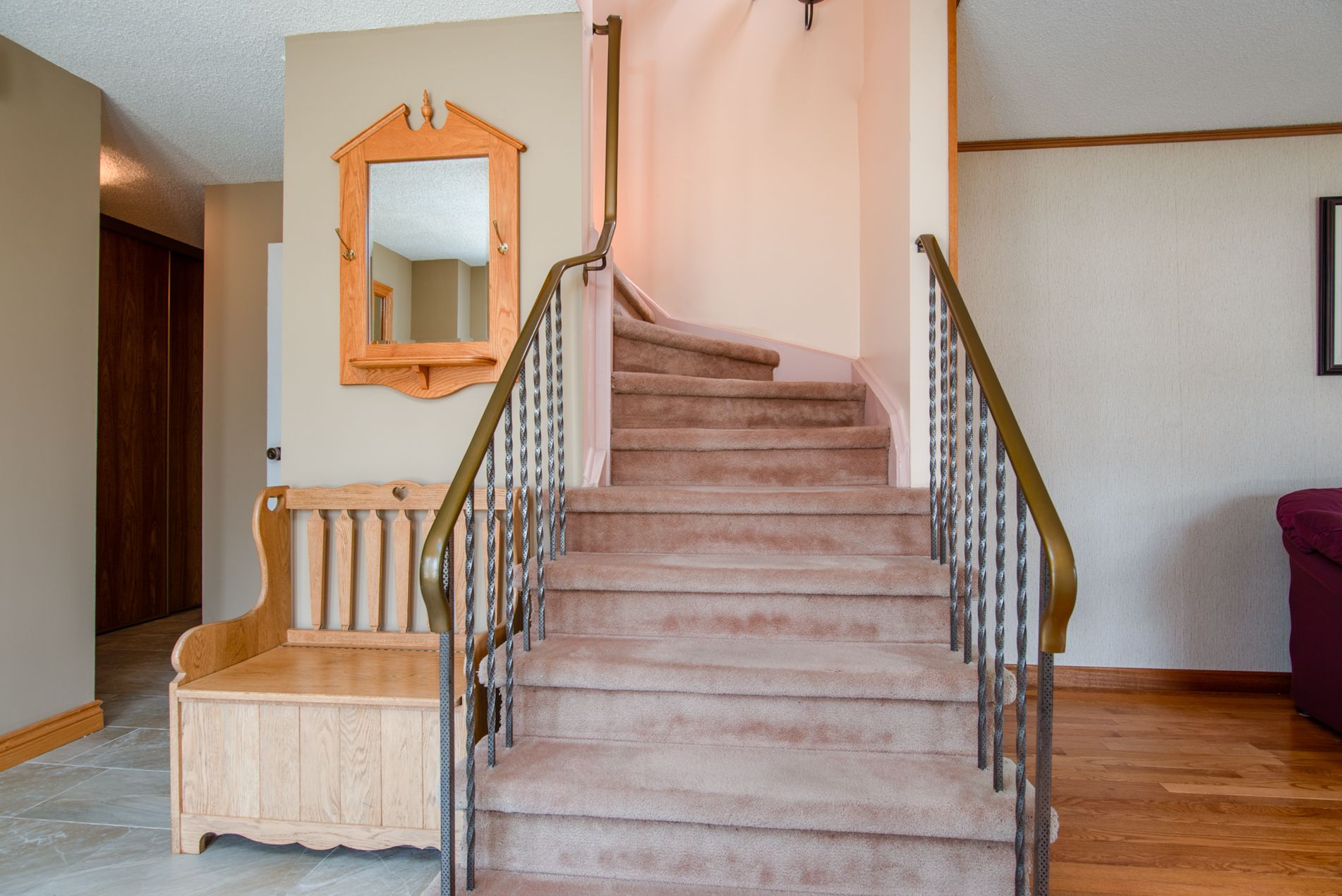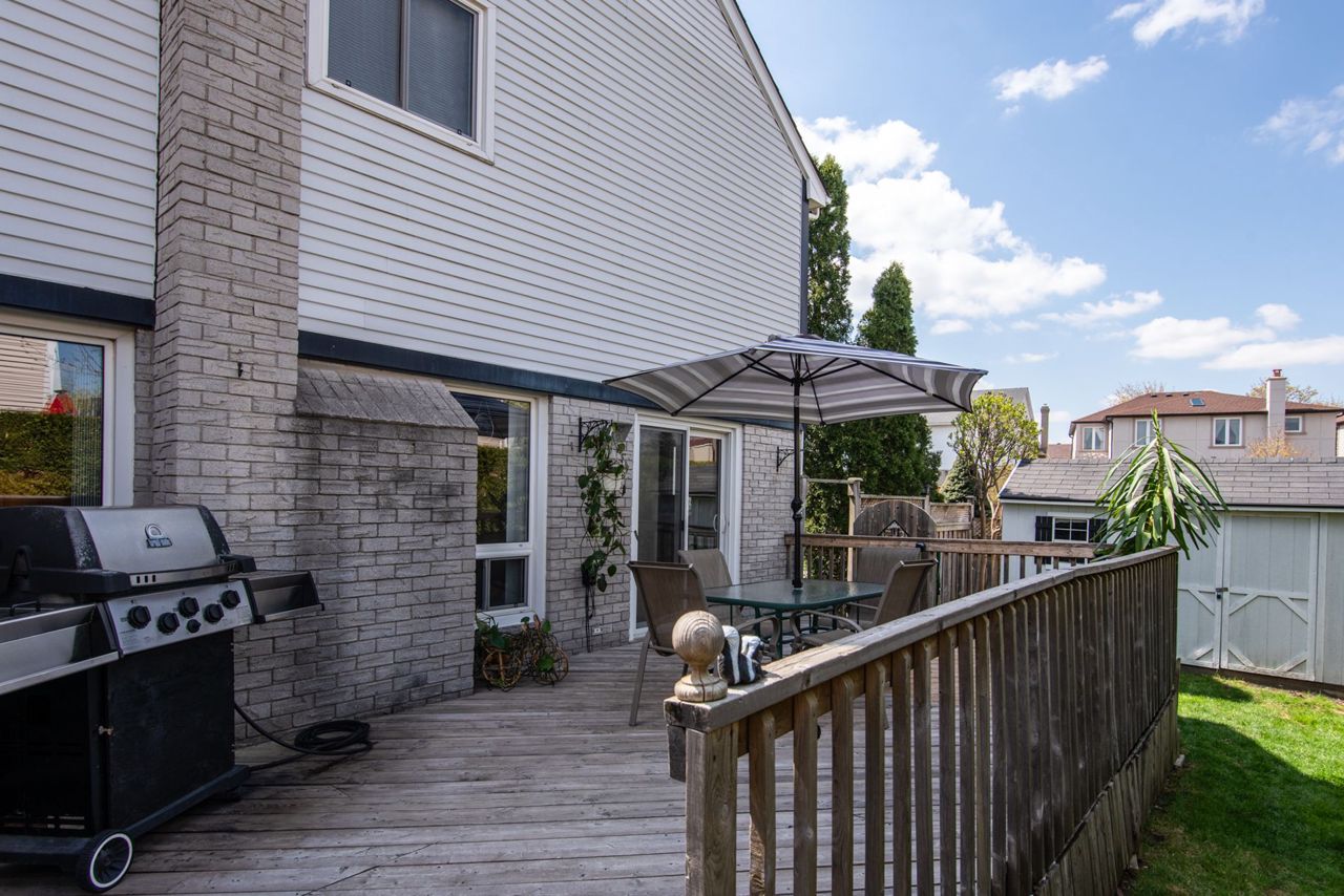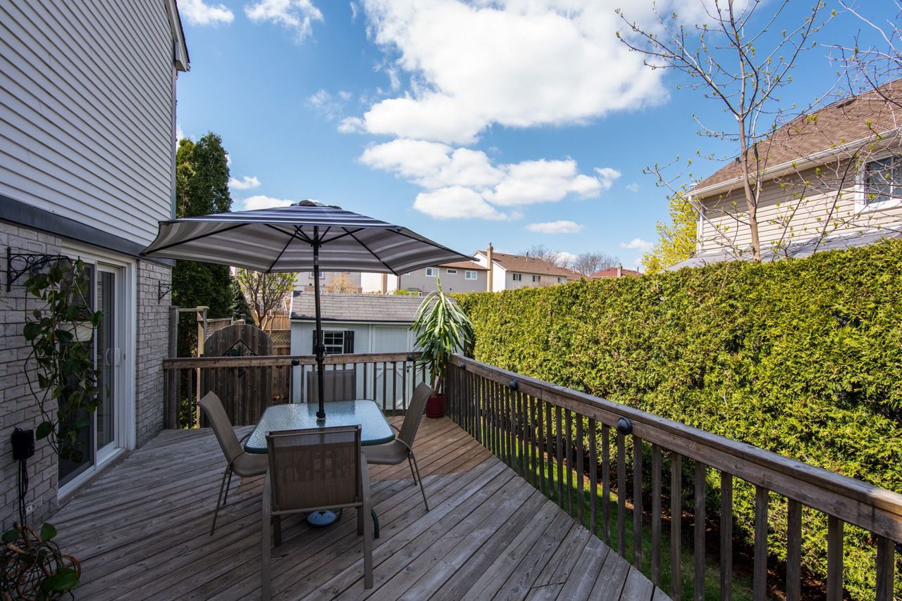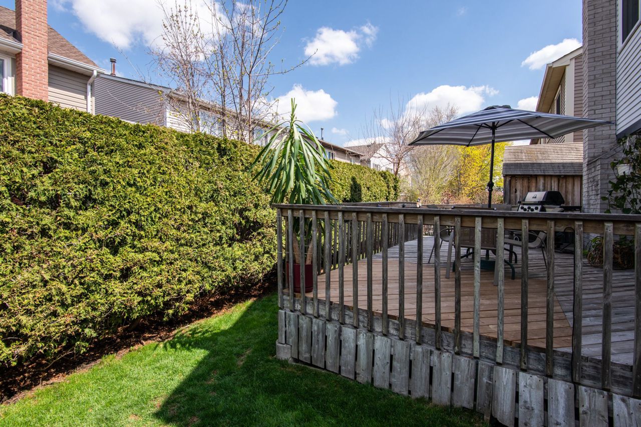 This well maintained three bedroom two bathroom home features a large foyer overlooking living room and spacious eat in kitchen. Large family room with gas fireplace, with lots of natural light. Hardwood and ceramic throughout the main floor. Walk out from kitchen to deck with gas hook up for BBQ and electrical has been roughed in for hot tub. Yard is private and completely fenced in with good size utility shed. Basement has lots of room for entertaining with built in bar. Numerous upgrades in recent years includes furnace, air conditioner, roof, blinds and cement pathway to front door. Walking distance to Professor's lake and numerous trails