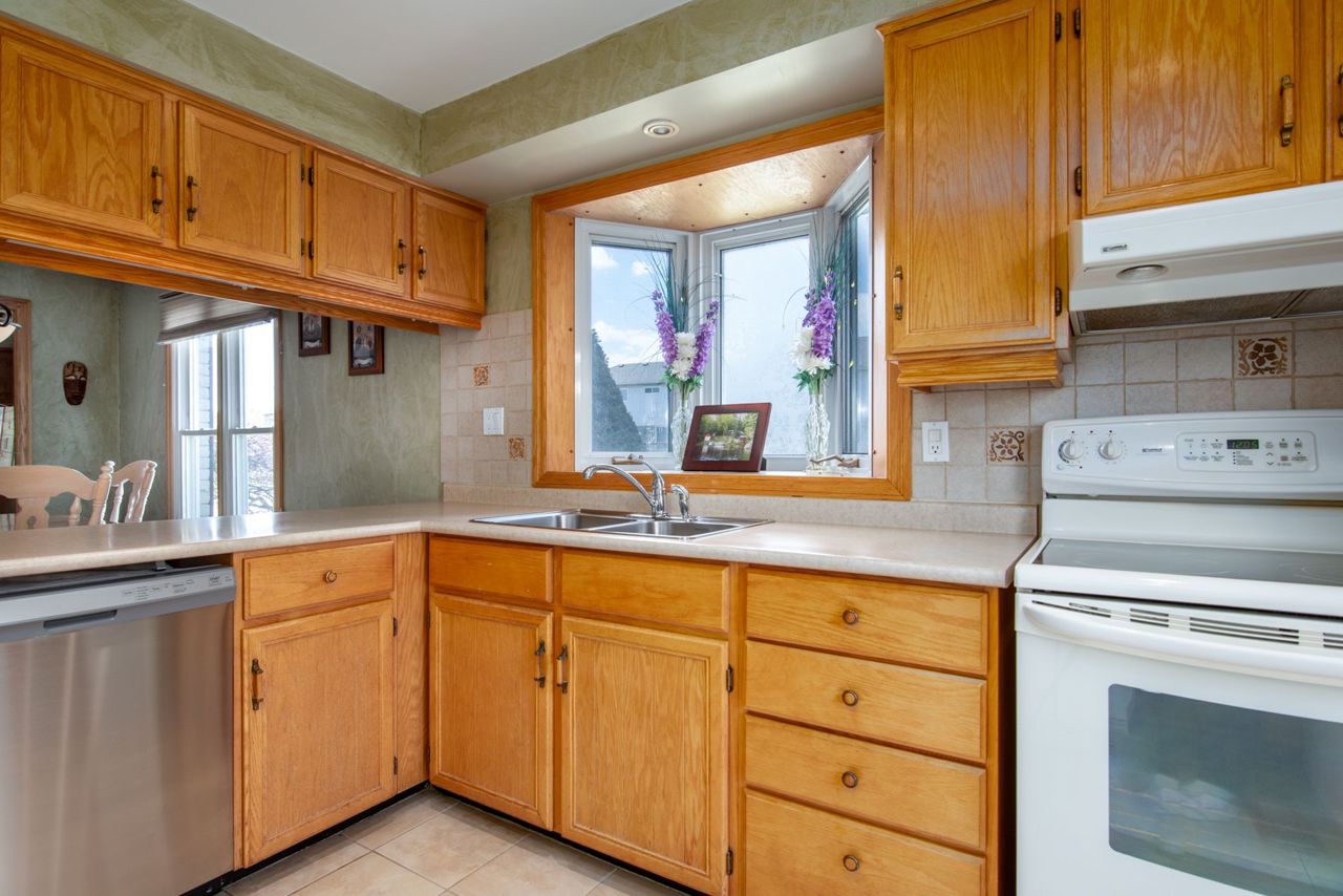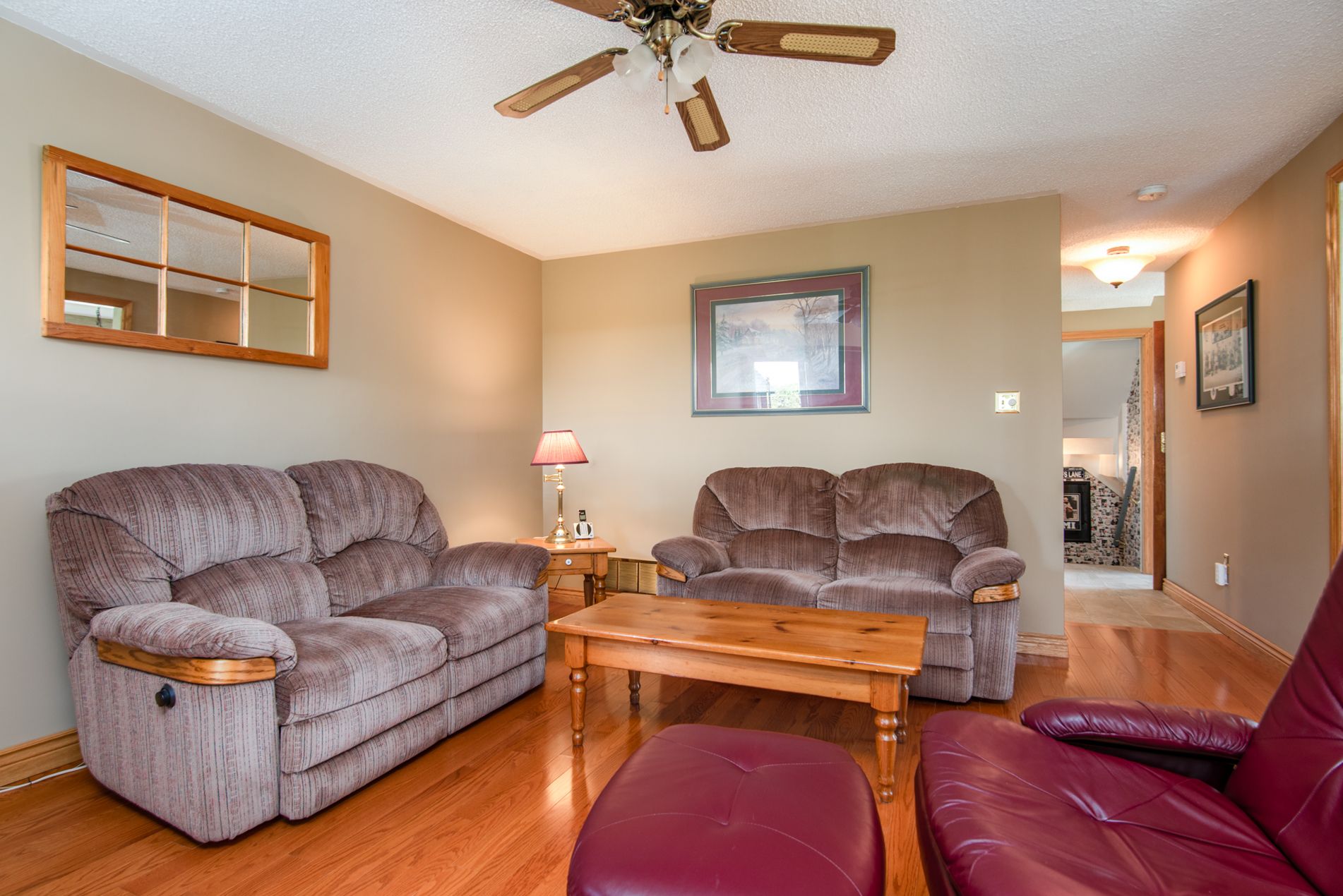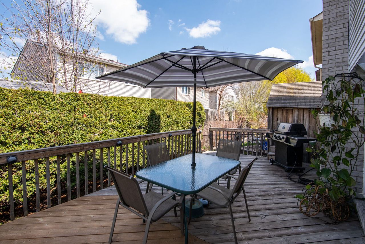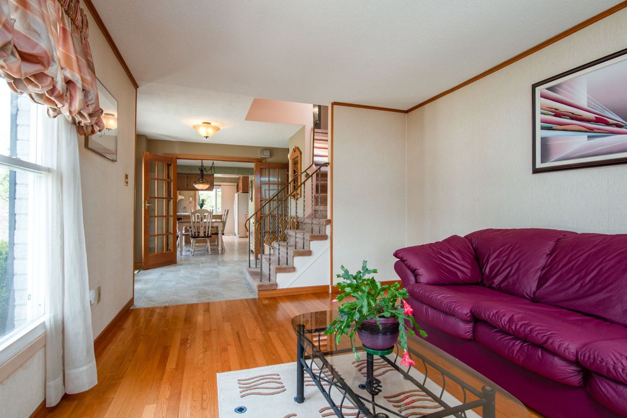 This well maintained three bedroom two bathroom home features a large foyer overlooking living room and spacious eat in kitchen. Large family room with gas fireplace, with lots of natural light. Hardwood and ceramic throughout the main floor. Walk out from kitchen to deck with gas hook up for BBQ and electrical has been roughed in for hot tub. Yard is private and completely fenced in with good size utility shed. Basement has lots of room for entertaining with built in bar. Numerous upgrades in recent years includes furnace, air conditioner, roof, blinds and cement pathway to front door. Walking distance to Professor's lake and numerous trails