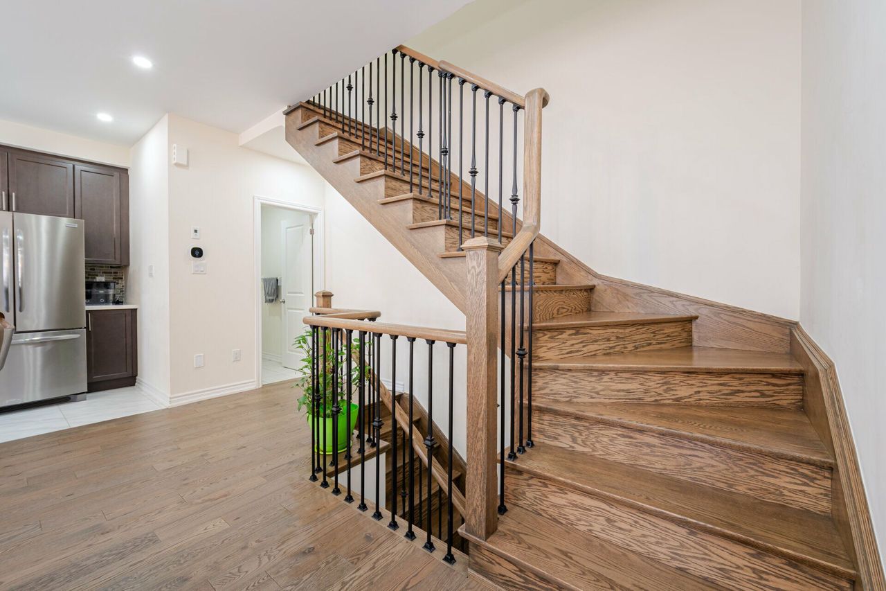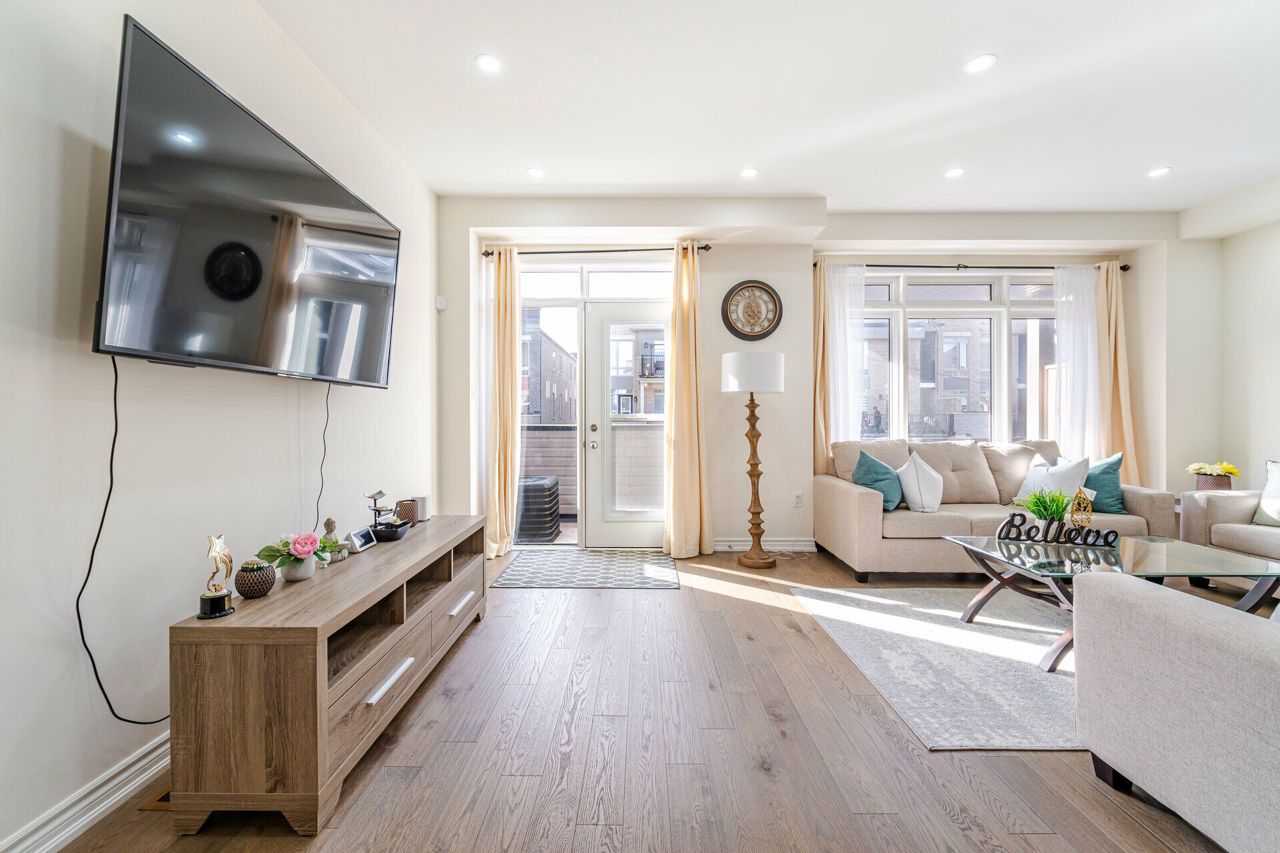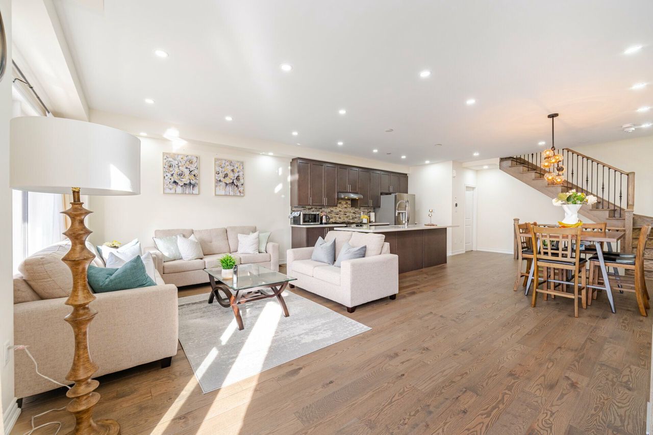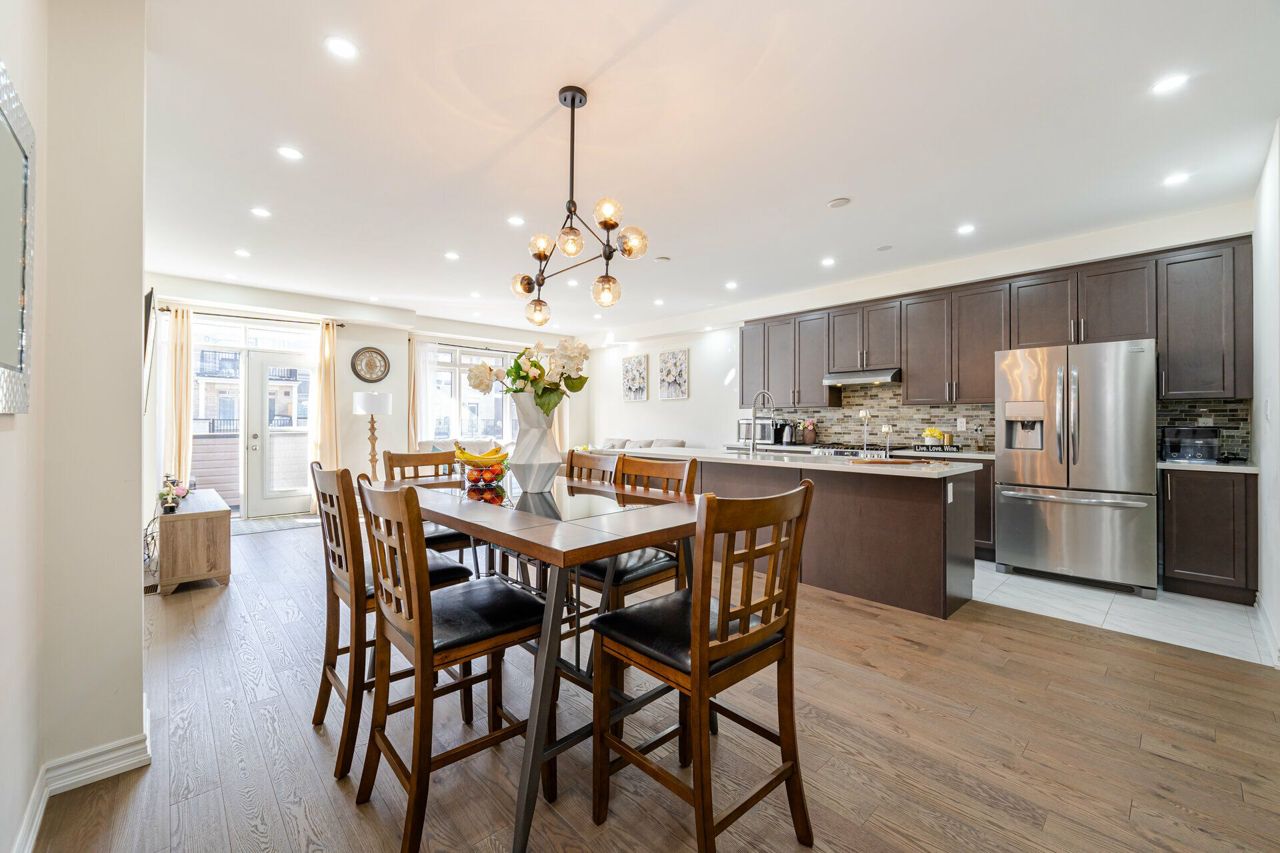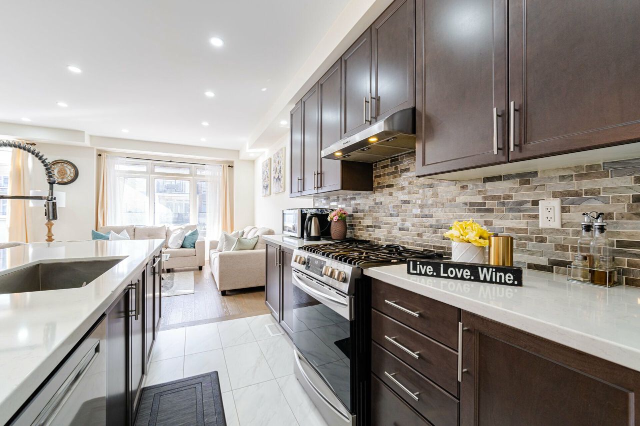 Truly a show stopper !! 3 bedroom 3 bathroom End-Unit freehold 1800 sqf as per MPAC situated on a quiet st. offering well-designed open concept lay-out, living and dining com/b, upgraded kitchen with eat-in, master with 4 ensuite , w/i closet and large balcony , all good size bedrooms, loaded with all kind upgrades. $$$$$ spent on high end upgrades. Upgrades Including High End Quartz Countertops, Upgraded Stainless Steel Appliances, Gas Range, Stainless Steel Hood, Modern Glass Tile Backsplash, Hardwood Floors, Hardwood Stairs, Wrought Iron Pickets, Double Balconies With Stunning Views, A/C Unit, Custom Shelving, Garage Door Opener, and much more. must be seen. steps away from all the amenities.