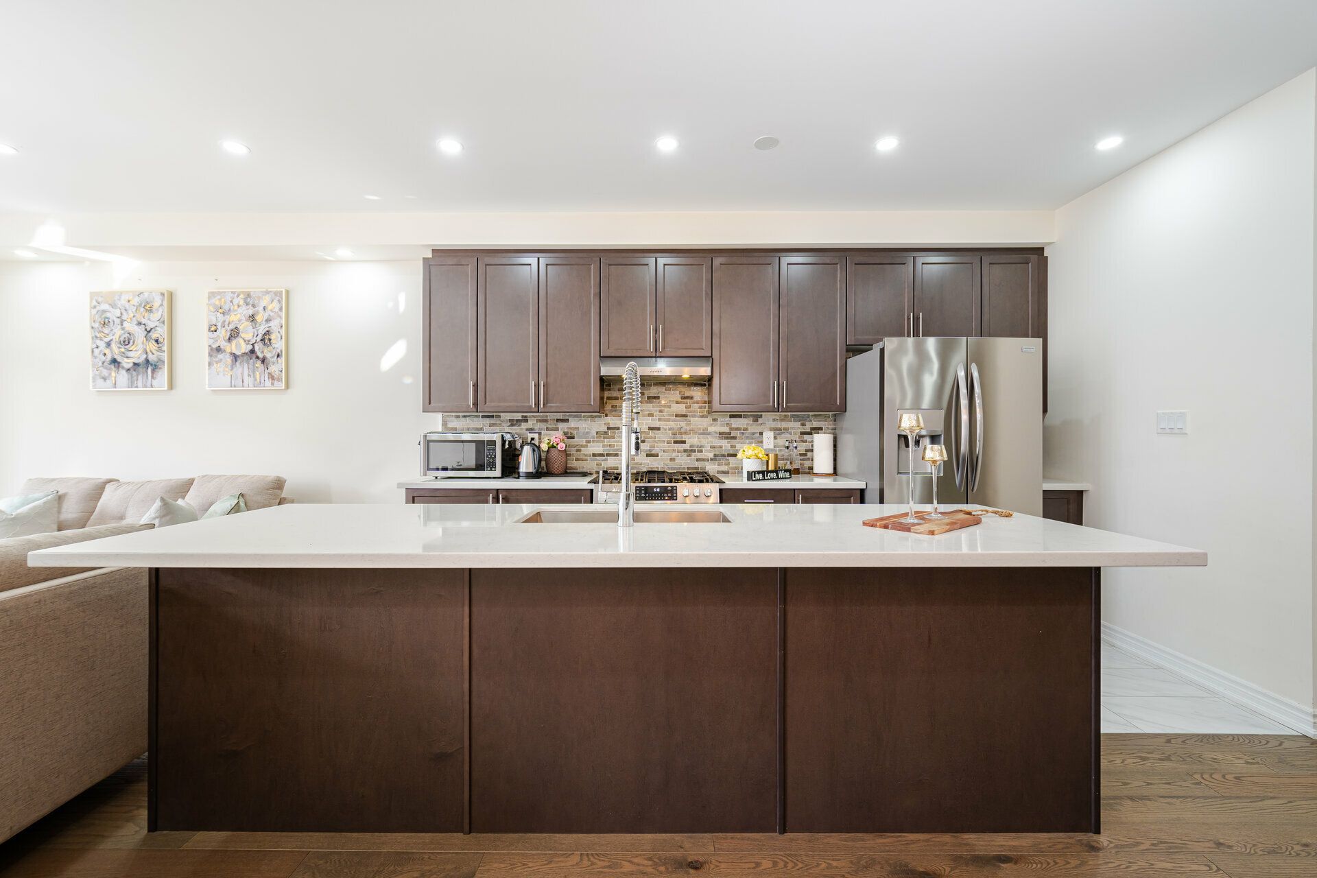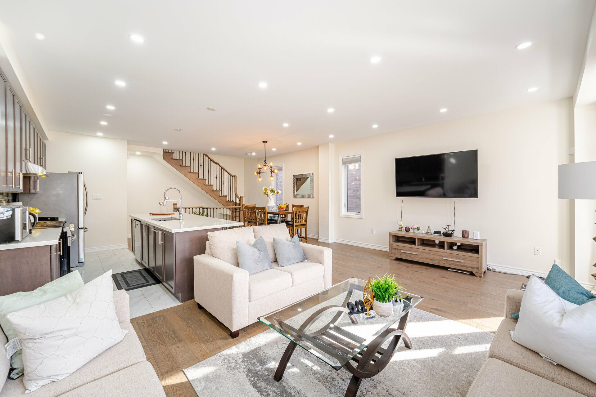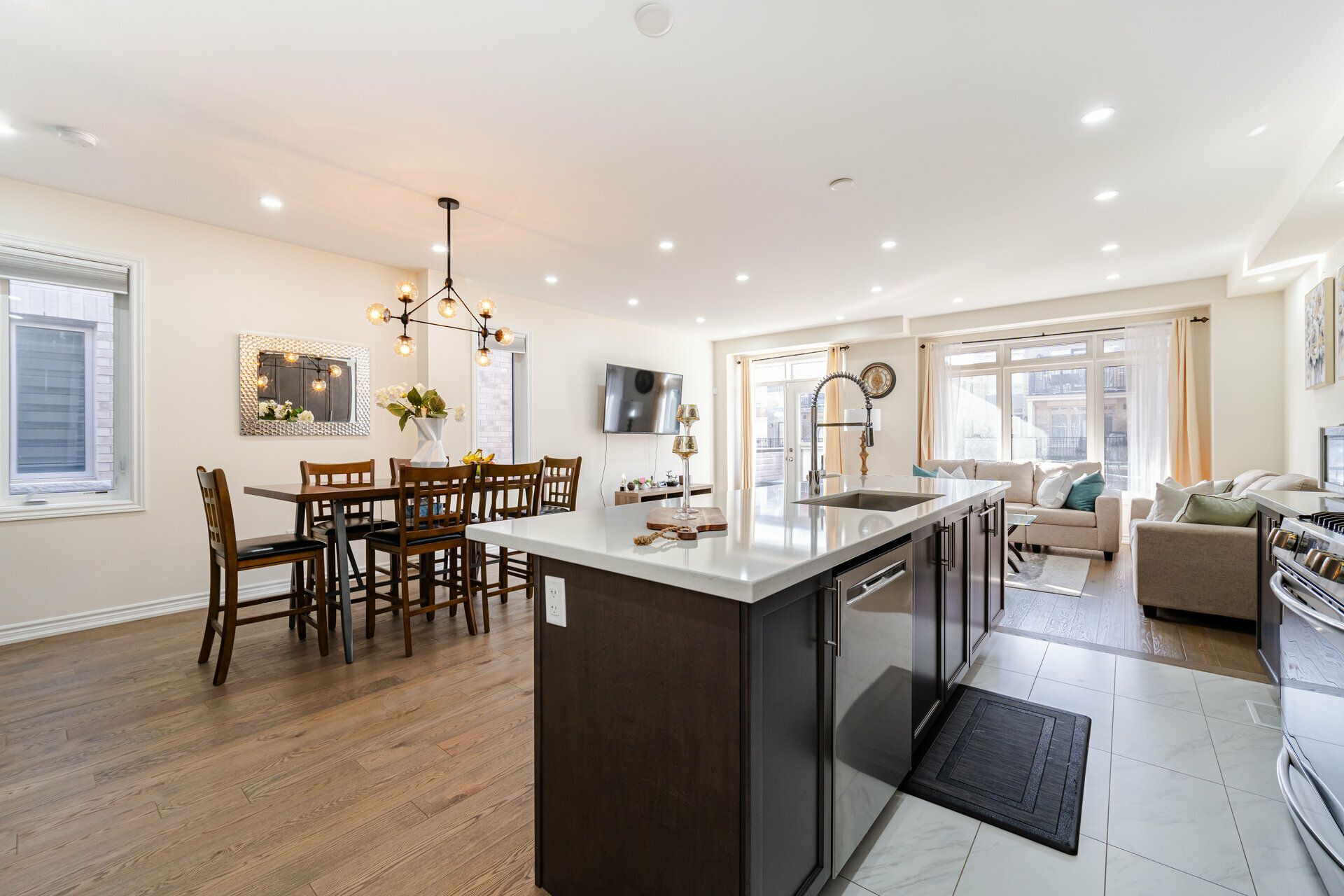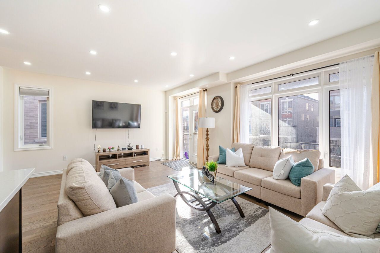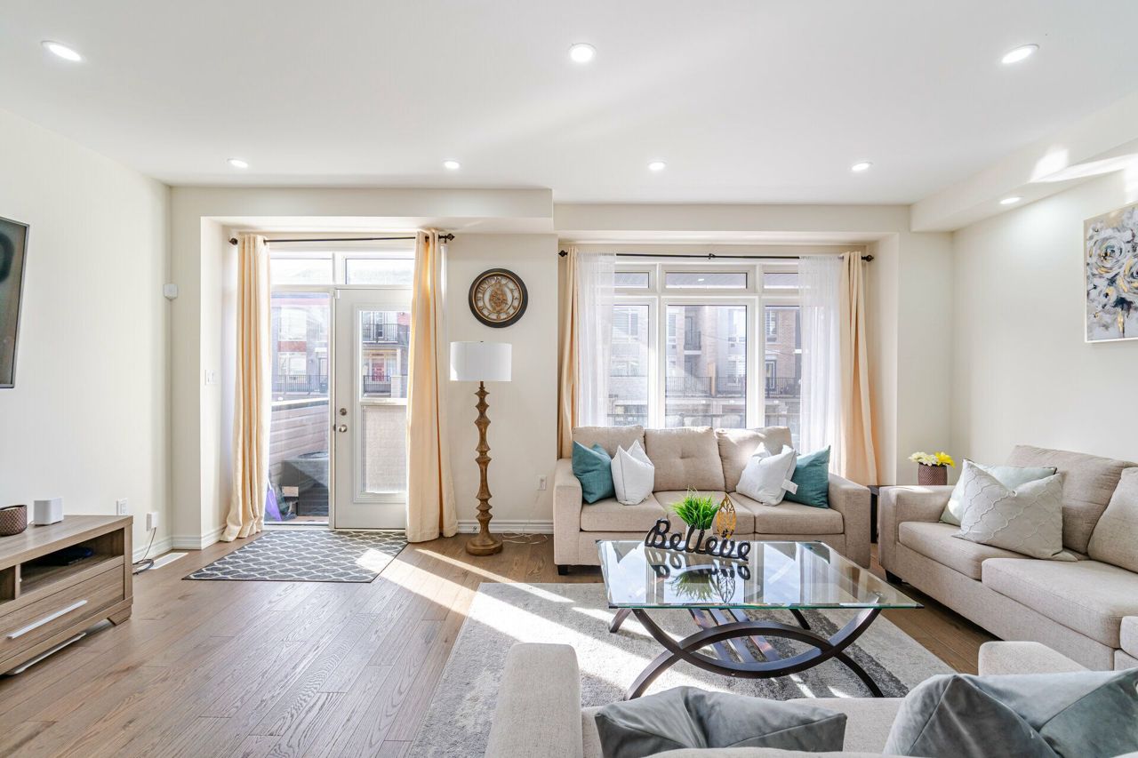 Truly a show stopper !! 3 bedroom 3 bathroom End-Unit freehold 1800 sqf as per MPAC situated on a quiet st. offering well-designed open concept lay-out, living and dining com/b, upgraded kitchen with eat-in, master with 4 ensuite , w/i closet and large balcony , all good size bedrooms, loaded with all kind upgrades. $$$$$ spent on high end upgrades. Upgrades Including High End Quartz Countertops, Upgraded Stainless Steel Appliances, Gas Range, Stainless Steel Hood, Modern Glass Tile Backsplash, Hardwood Floors, Hardwood Stairs, Wrought Iron Pickets, Double Balconies With Stunning Views, A/C Unit, Custom Shelving, Garage Door Opener, and much more. must be seen. steps away from all the amenities.