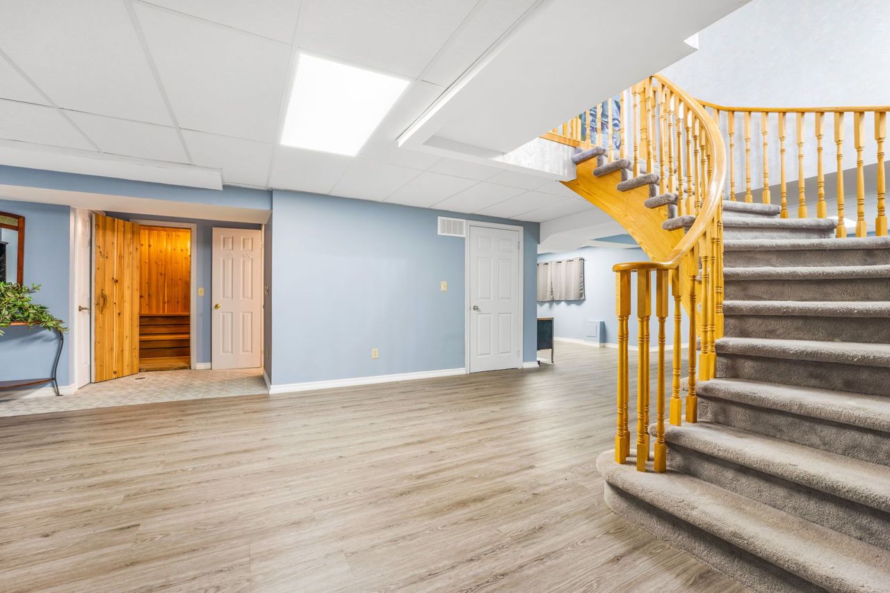 Spacious & Beautifully Maintained! Large 5 + 2 bedroom home with full walk-out basement and 5 bathrooms. Oversized Lot - 70' x 130' backing onto forested greenspace provides distance from neighbours and backyard privacy! Enter into a grand foyer and explore the large principal rooms on the main level. The oversized Kitchen has plenty of room for the cook, friends & family. The formal dining & living rooms each offer space for entertaining. The Family Room features a fireplace, walk-out to the backyard deck & a door leading to a 'surprise space'. Upstairs holds 5 spacious bedrooms, including a primary w/ 4 piece ensuite & double walk-in closets. Basement features, 2 more bedrooms & 2 more full bathrooms, large recreation areas, a sauna, storage & a walkout to the backyard. Driveway easily accommodates 3 cars plus the 2 car garage. The extra wide, extra deep lot on a quiet cul de sac is close to parks, trails and all amenities.All new doors & windows 2014, Eaves & downspouts 2015, Furnace 2016, Kitchen & Bathrooms 2016, A/C 2017, Driveway 2020, Basement vinyl floor with waterproof underlay 2020