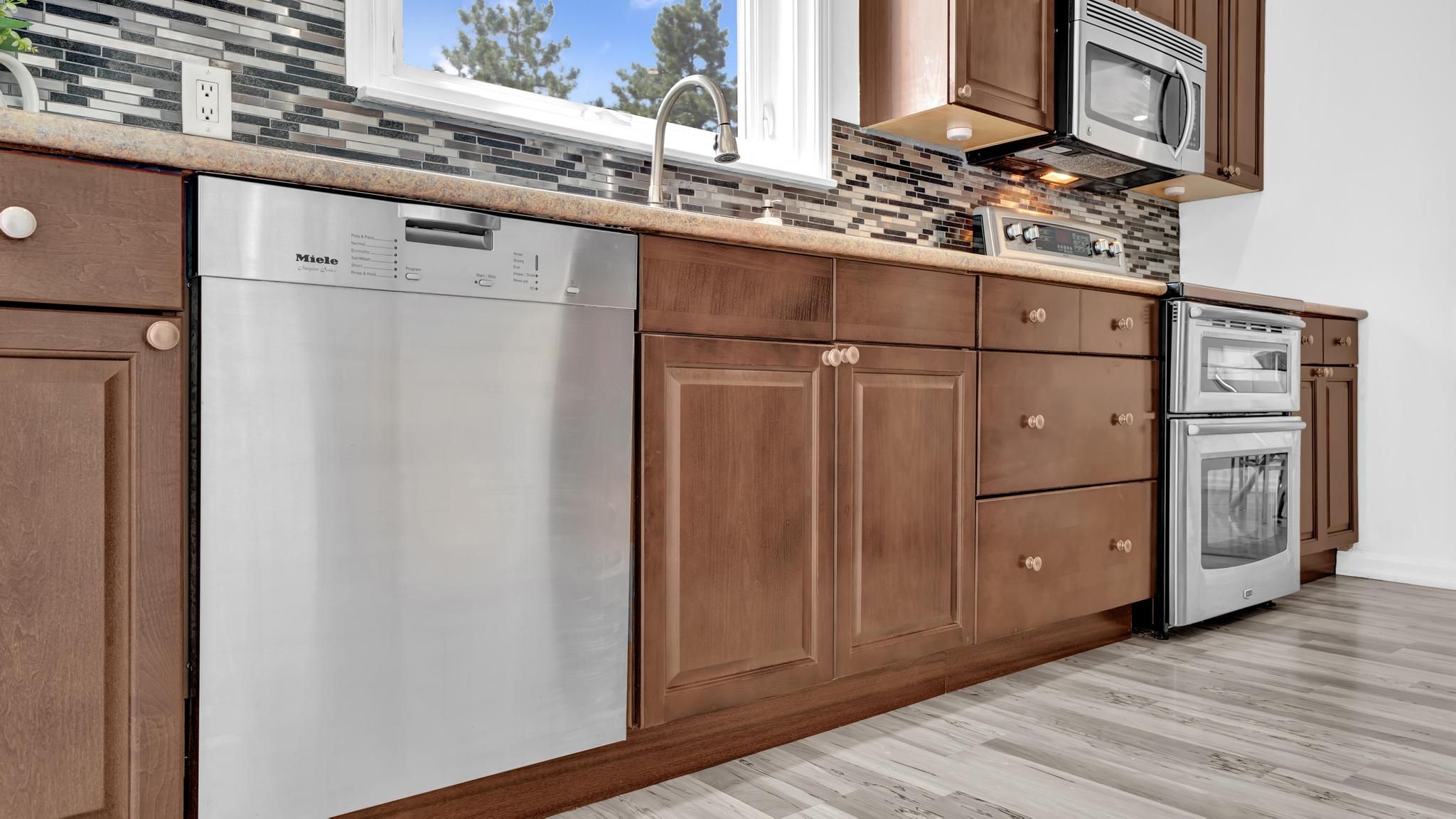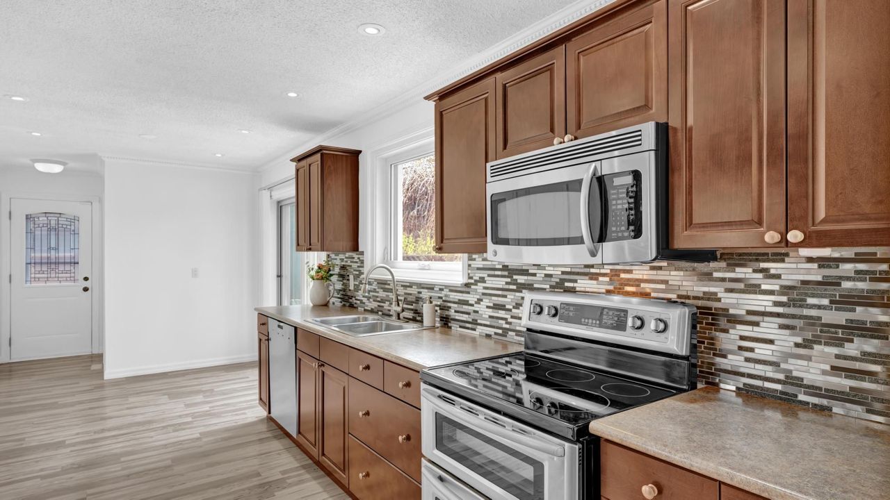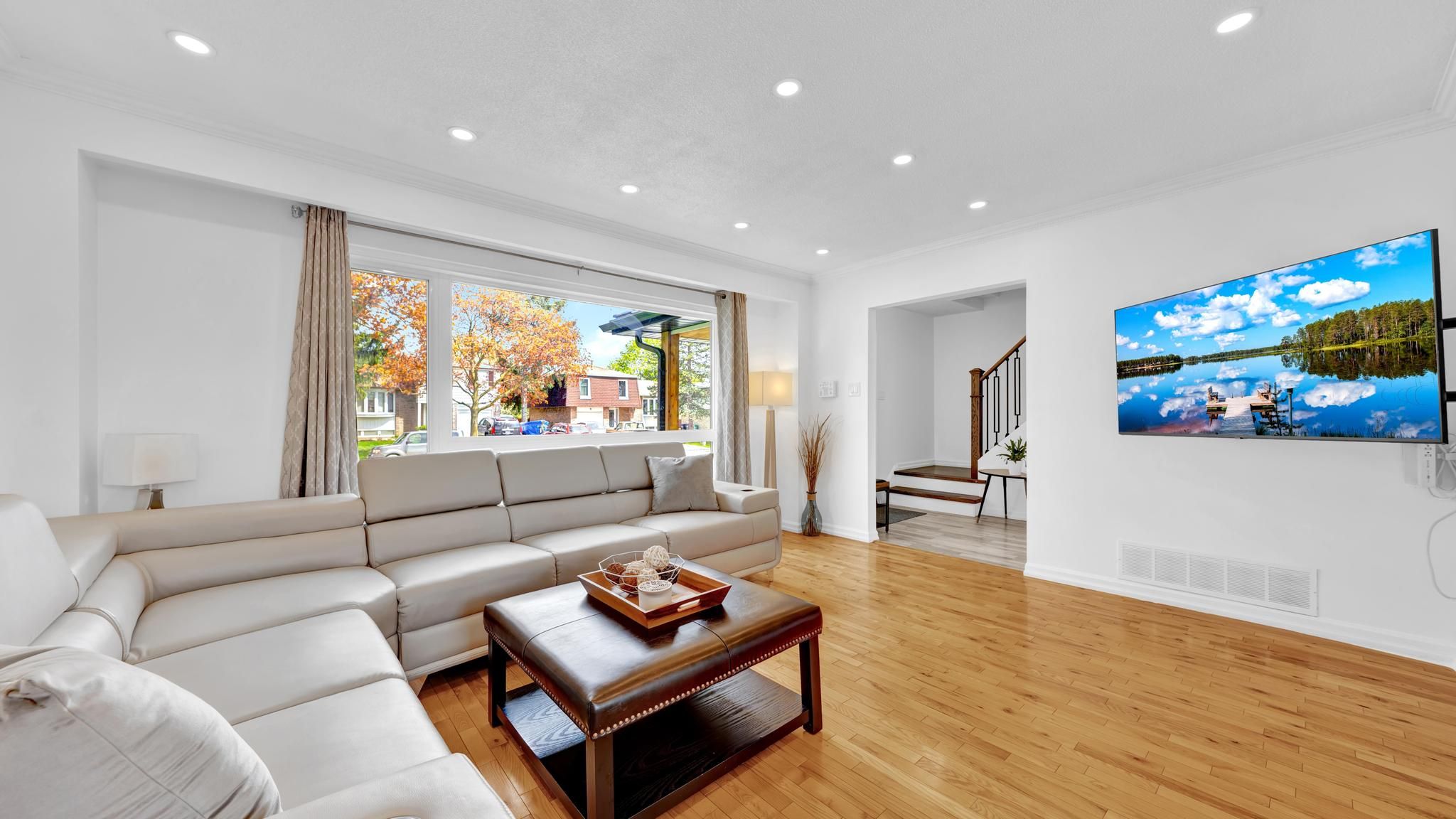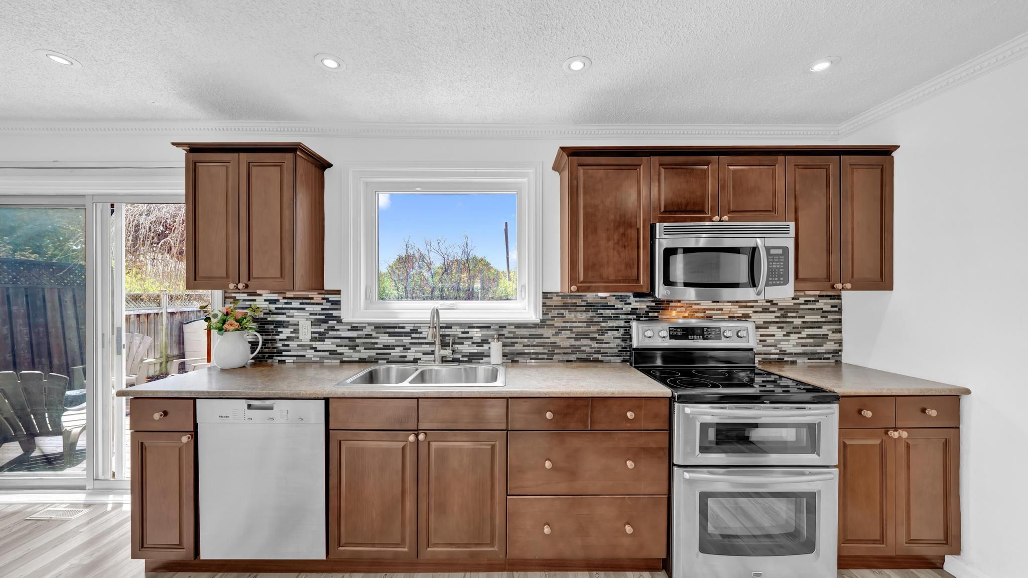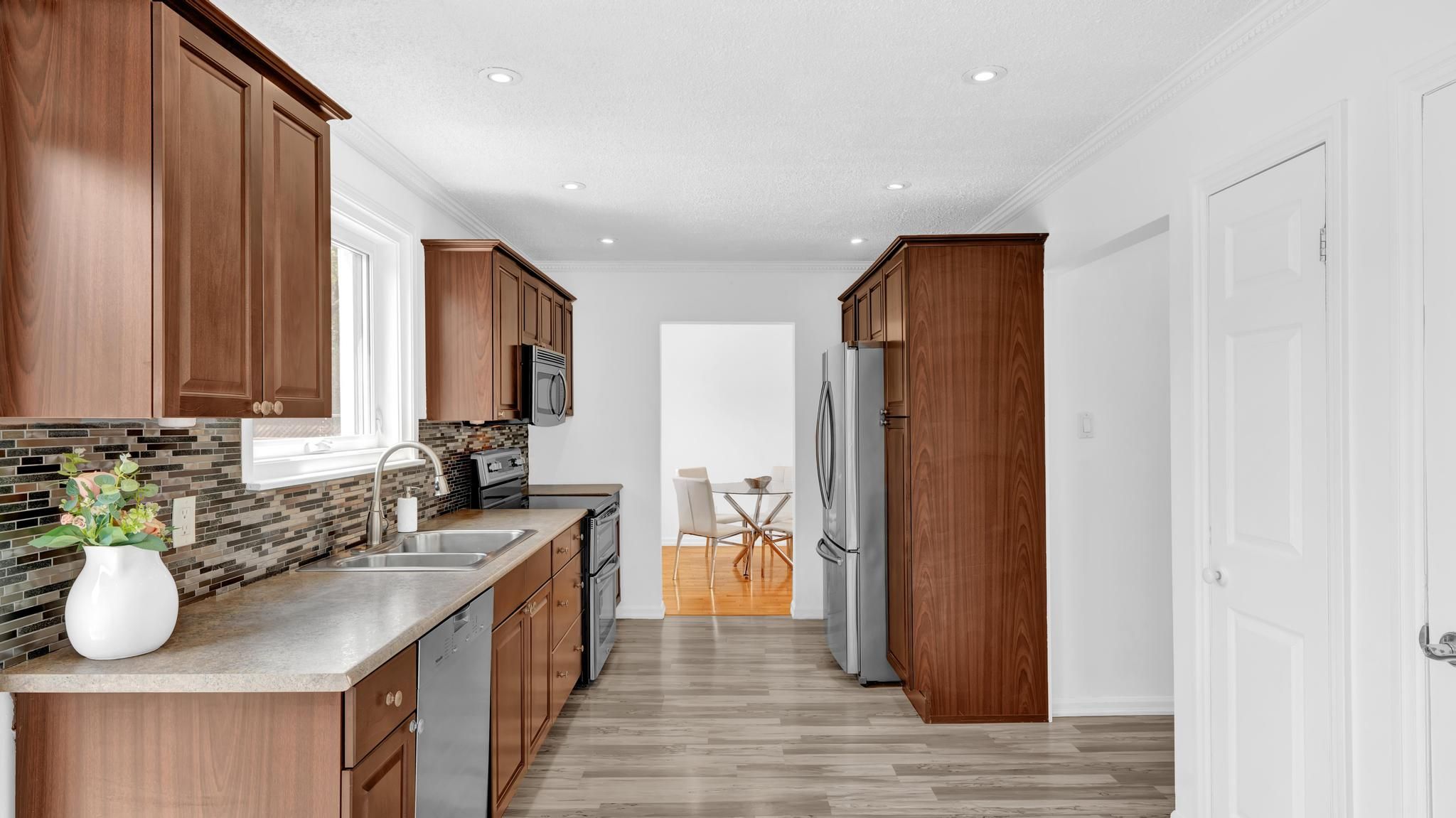 Your perfect family home is right here! This is truly a beautifully renovated (both inside and out) detached home on a large 50'x 120' lot facing a quiet, tree-lined residential street. The living room features a large picture window and a generous dining room. The ample-sized kitchen has newer kitchen cabinets, backsplash, and appliances; all stainless steel - fridge, stove, dishwasher, microwave, & beverage fridge. Walk out to the backyard oasis with a 32' x 16' in-ground saltwater pool - just in time for the summer and outdoor entertaining! There are no neighbours behind the backyard. Updates include pot lights, hardwood stairs with contemporary railings, new windows, double insulation, Alabaster white stucco, a new black metal roof, new garage door. The large rec room in the basement has new vinyl flooring and a gas fireplace. The laundry room has brand new top-of-the-line stackable washer & dryer.Other upgrades: Smart camera home security system, wireless smart thermostat. Don't miss the opportunity to make this gorgeous home yours!