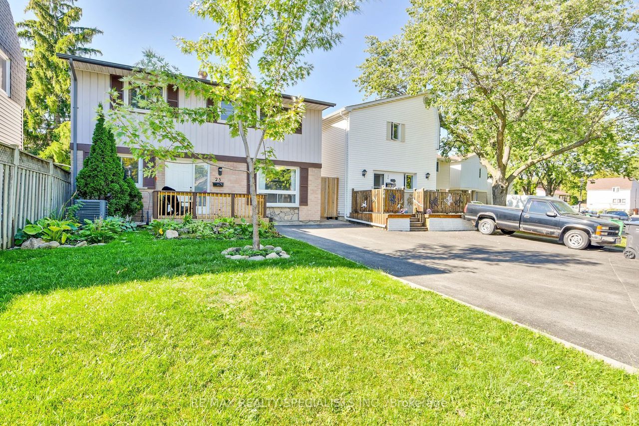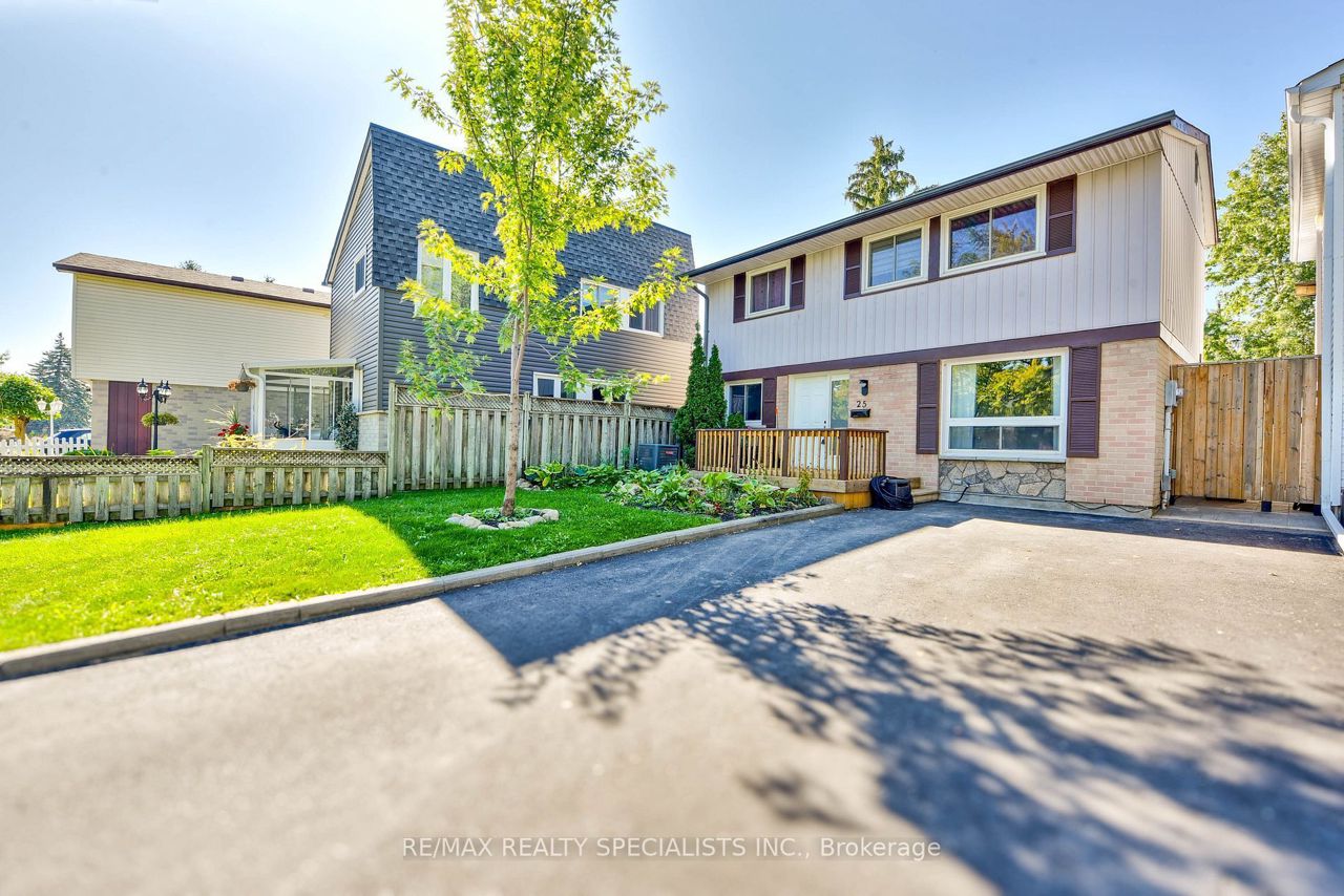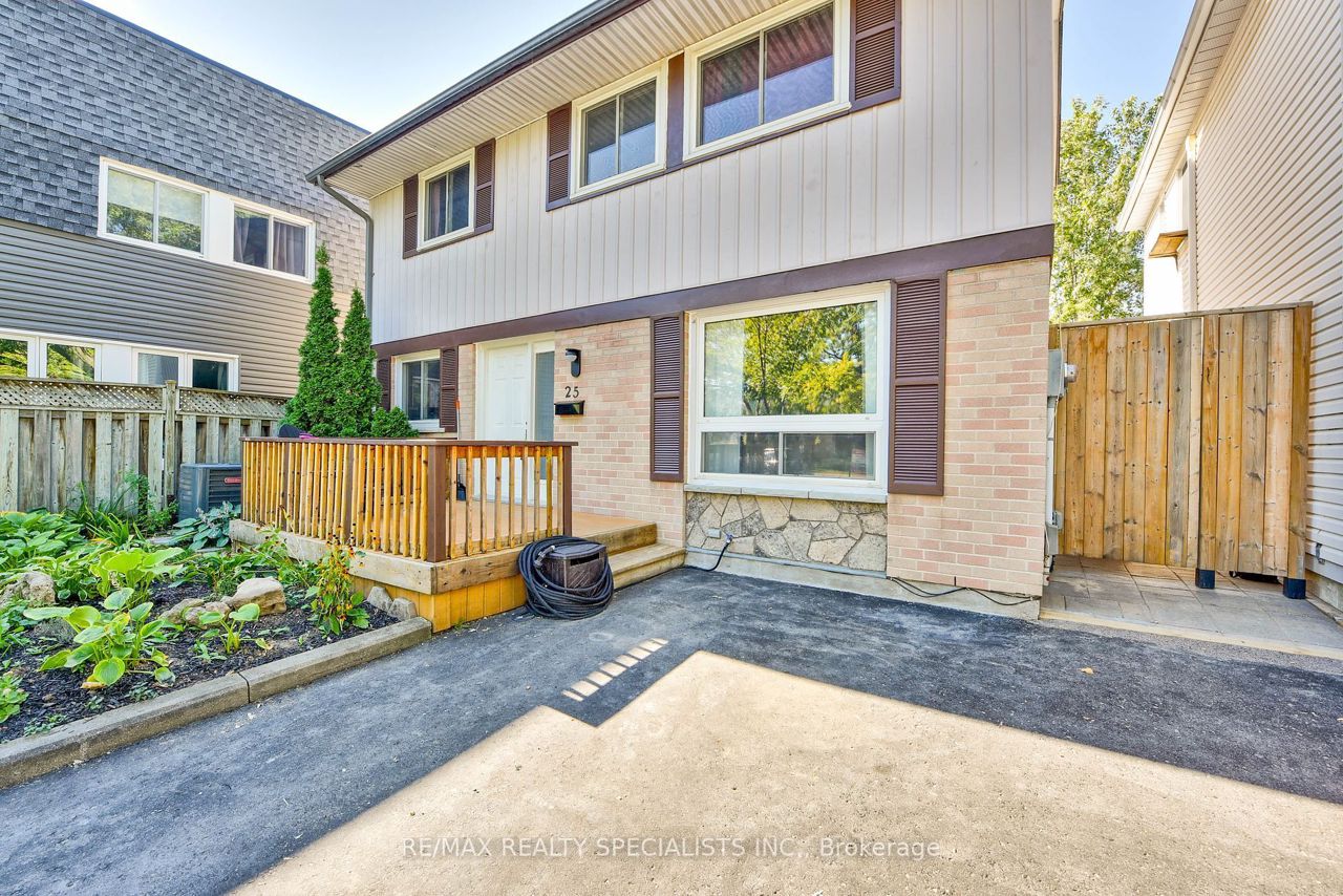 Welcome to 25 Homer Square, Brampton! Nestled on quiet private court, this upgraded and renovated detached home is perfect for first time buyers, young families, or those interested in upsizing or downsizing. Spacious lay out and modern updates throughout, it offers comfort, style, and convenience. Newly renovated, functional kitchen, with ample storage, generous counter space & breakfast bar over looking the front yard. Open-concept living /dining room with a walk out to a private backyard, featuring a tiled patio, two handy storage sheds, & a childrens playground. Family friendly lot with front porch and parking for 4 cars. Carpet free interior with laminate flooring throughout. Fully finished basement, featuring laminate flooring, laundry area with sink, and 3 piece bathroom. Newer tankless water heater (Rental),Roof 2017, Furnace & CAC 2019. This home is move in ready and designed to welcome its next family!