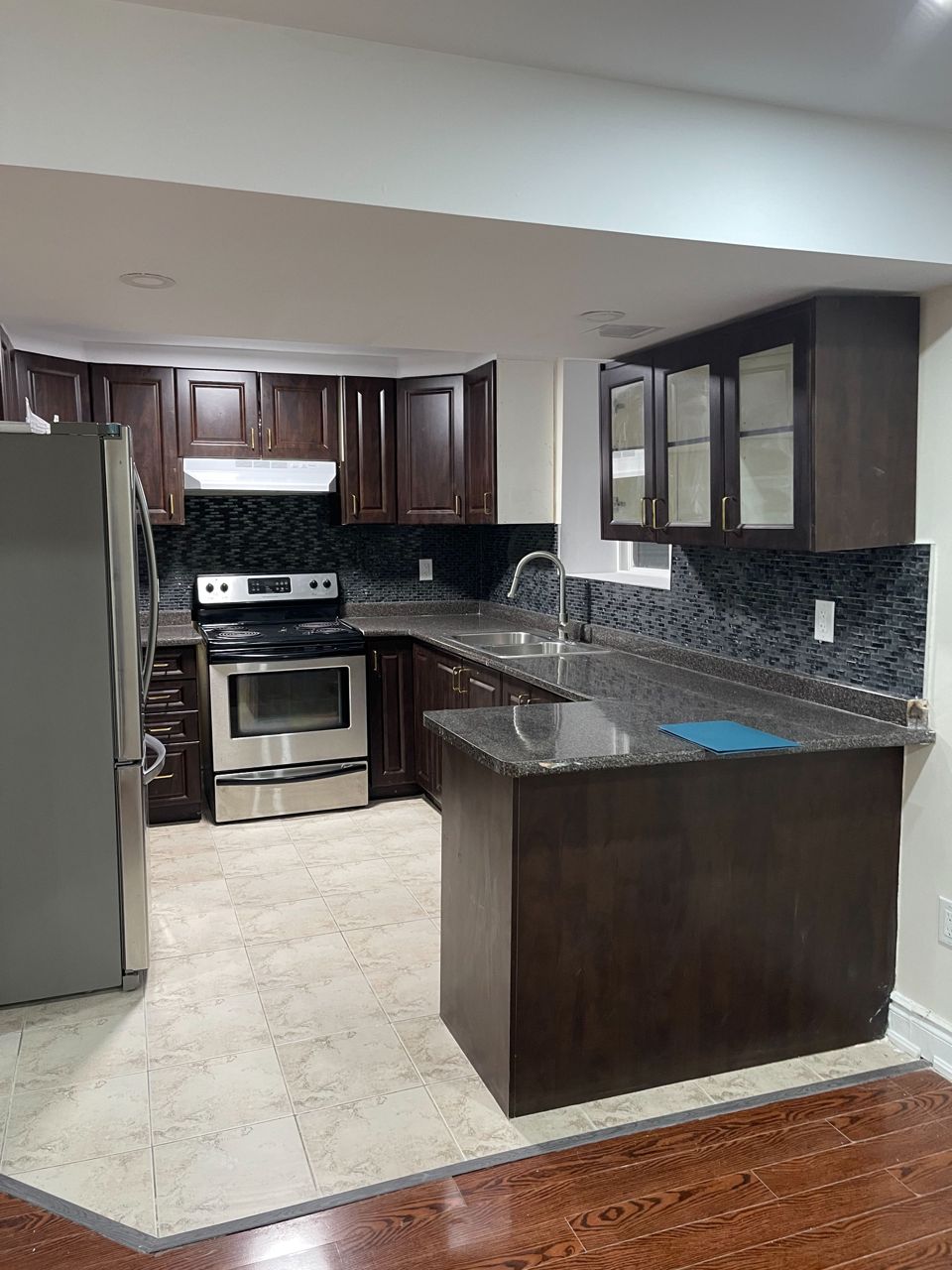 Wow! What a beautiful legal basement apartment. An excellent opportunity to live in the newly renovated & legalized basement apartment in a detached home located in the most convenient/ prestigious neighborhood. This unit includes : one good size bedroom, very spacious with open concept; Large kitchen with big windows, stainless steel brand new appliances, separate entrance, separate own ensuite laundry, one designated parking, huge brand new washroom - Rent $2100, all utilities inclusive.One car parking on the driveway. All utilities included; own private laundry.