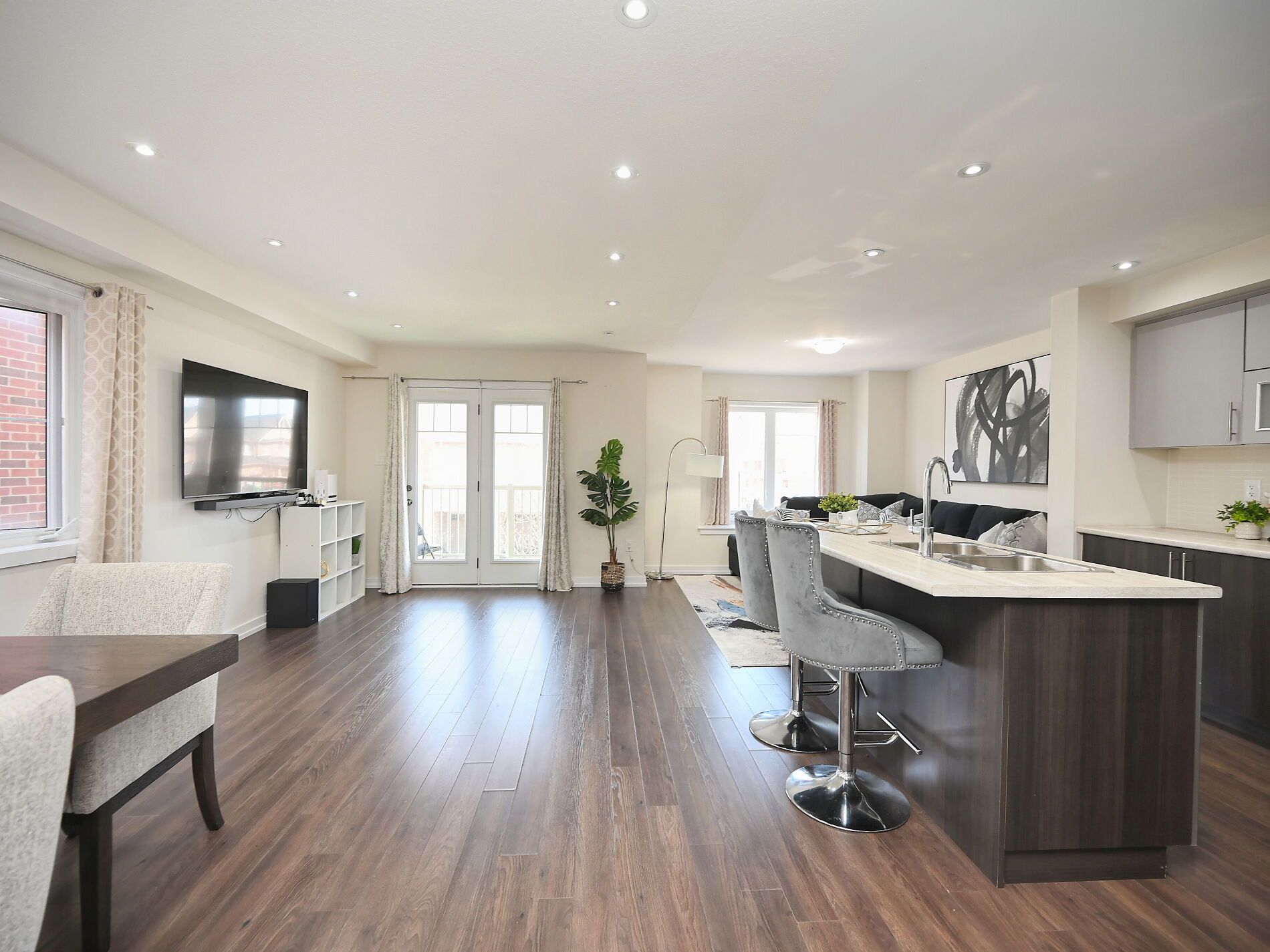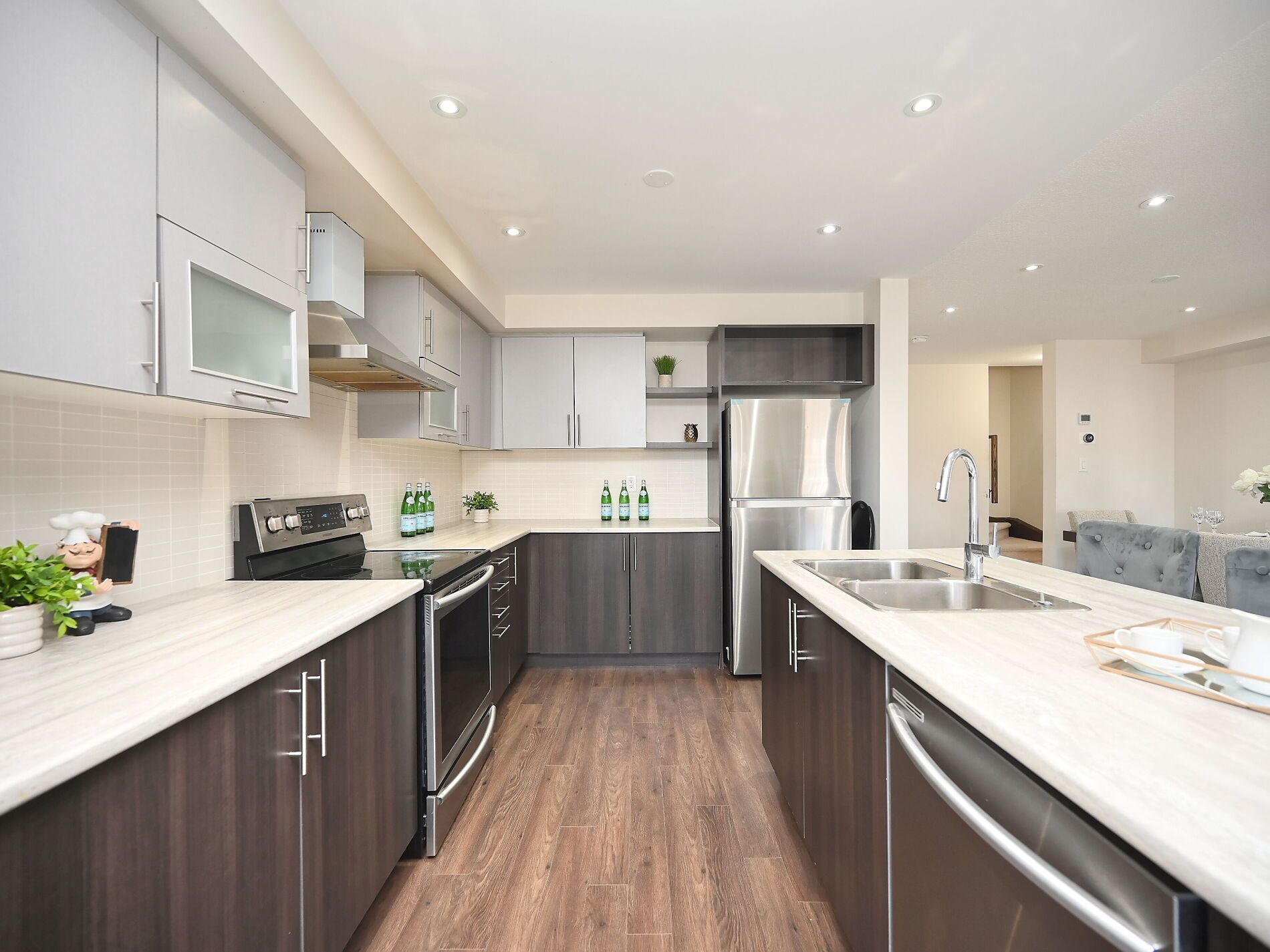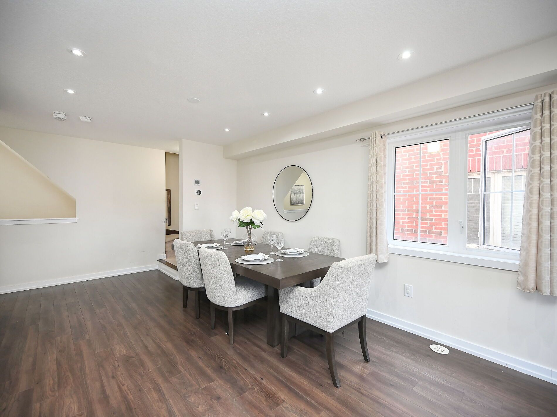 Stunning Freehold End-Unit Townhouse with 3 Spacious Bedrooms, Resembling a Semi-Detached, located in a Highly Sought-After Area. Features include a Double Door Entry Leads to Media room/ Den on main floor, Well-Designed Layout, Contemporary Open Kitchen with Stainless Steel Appliances, Family Room with Walkout to Balcony, Proximity to Mount Pleasant Go Station, Schools, Transit, and Shopping. The Home is Illuminated by Over 20 Pot Lights and Abundant Windows, Offering Plenty of Natural Light. Convenient Garage Access. Includes Stainless Steel Appliances (Rangehood, Stove, Dishwasher, Fridge), Washer & Dryer, Light Fixtures, Garage Door Opener with Remote, Window Coverings, and Nest Thermostat. This Property is a Must-See.