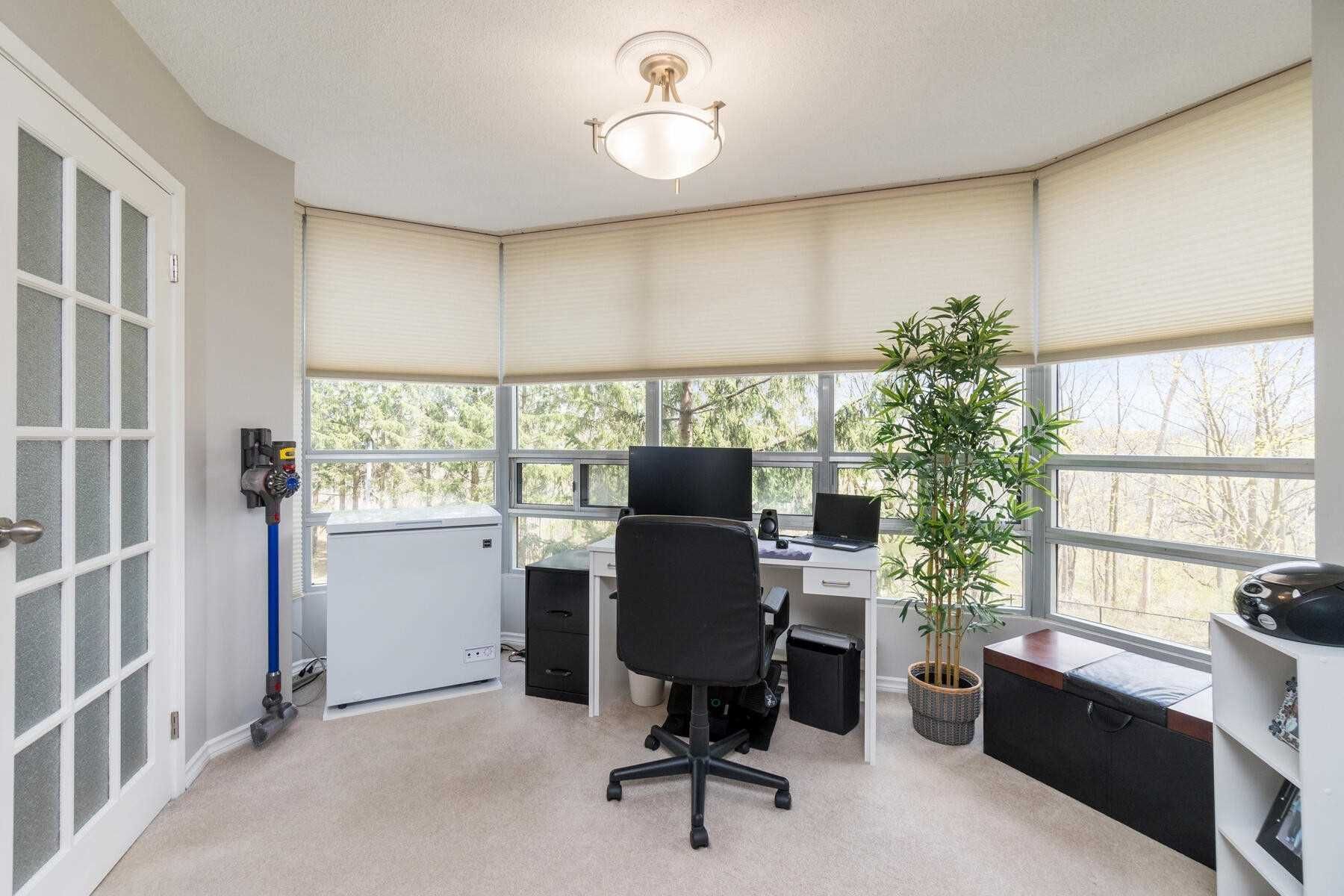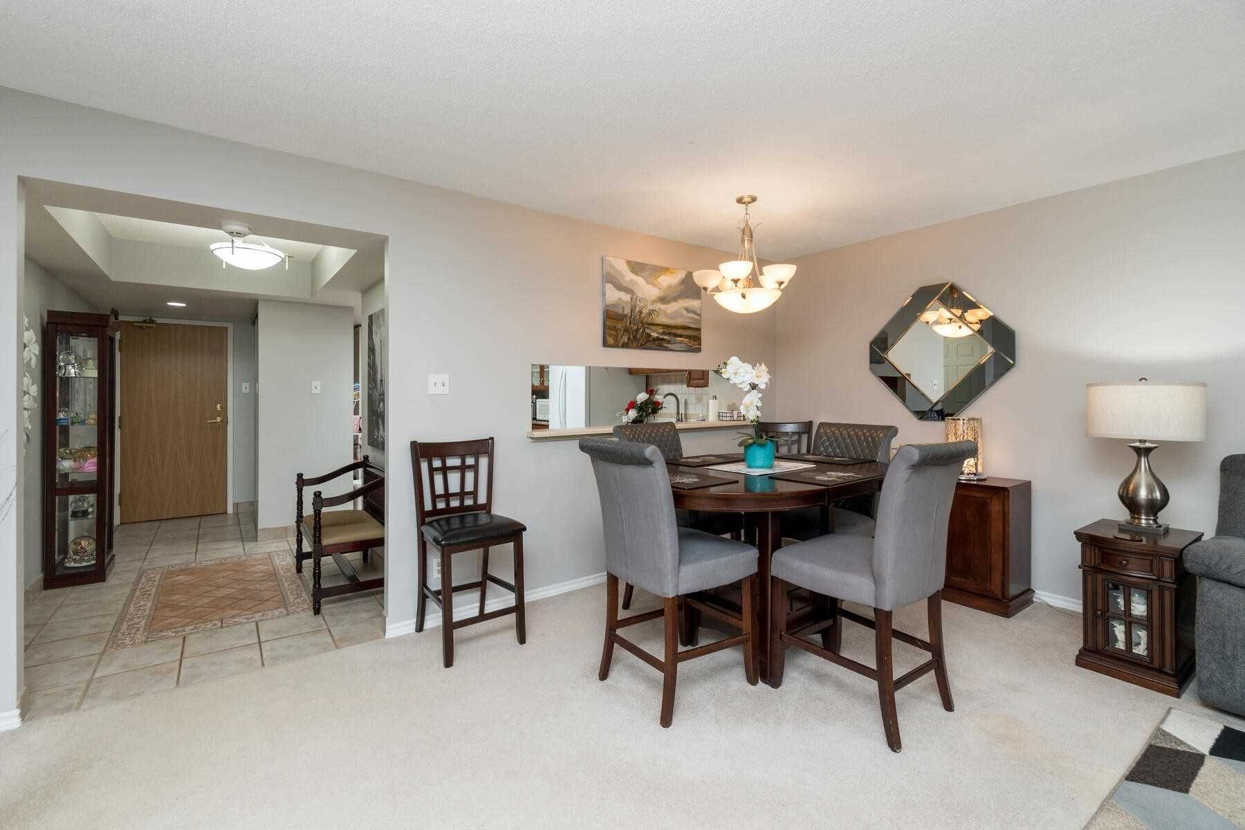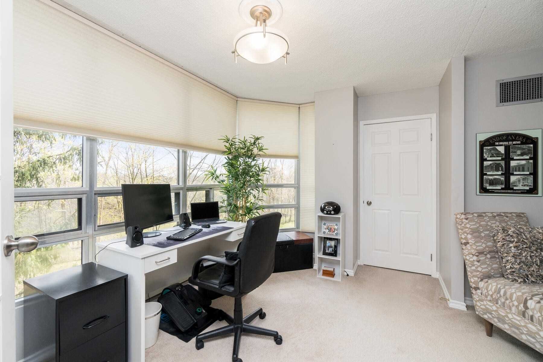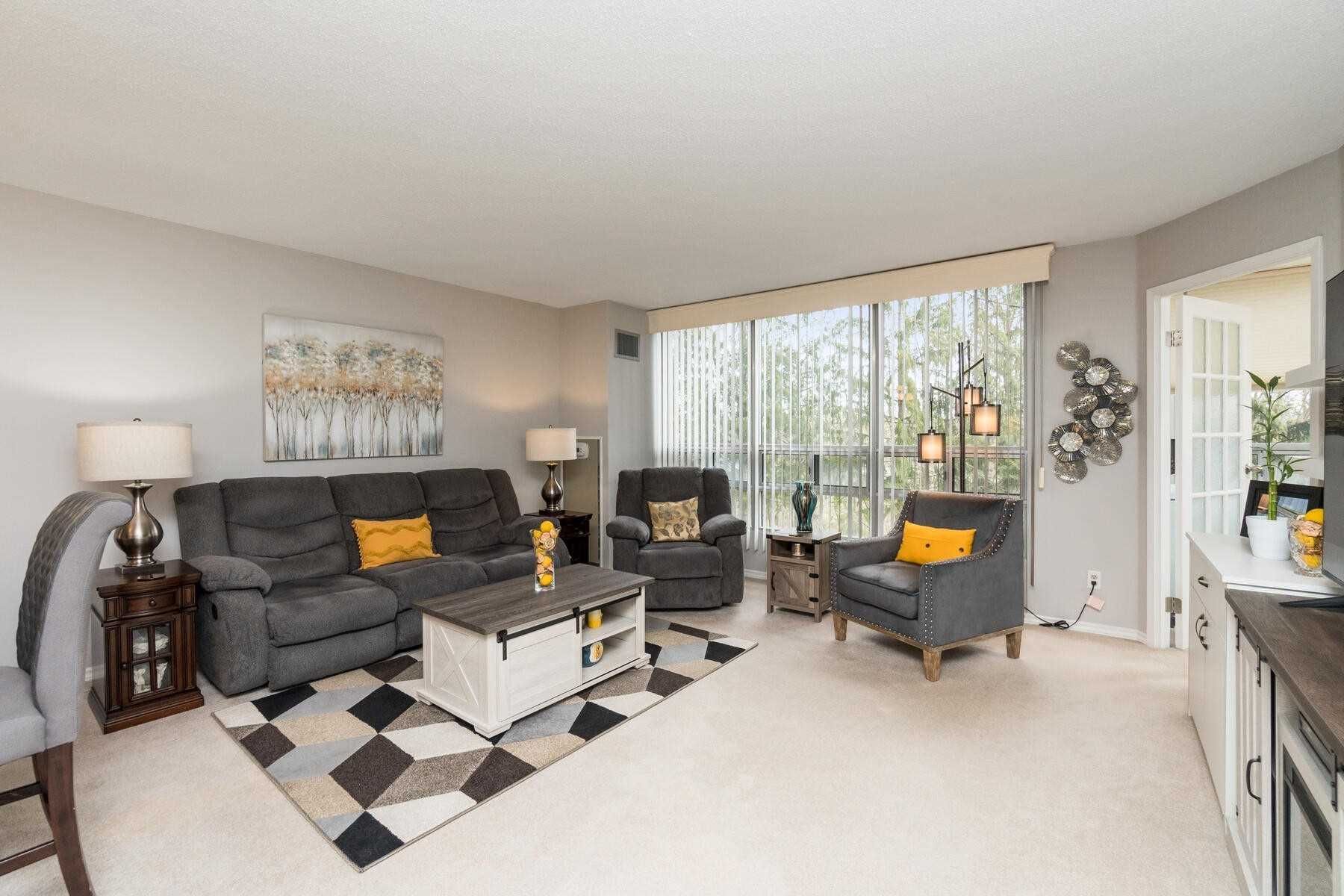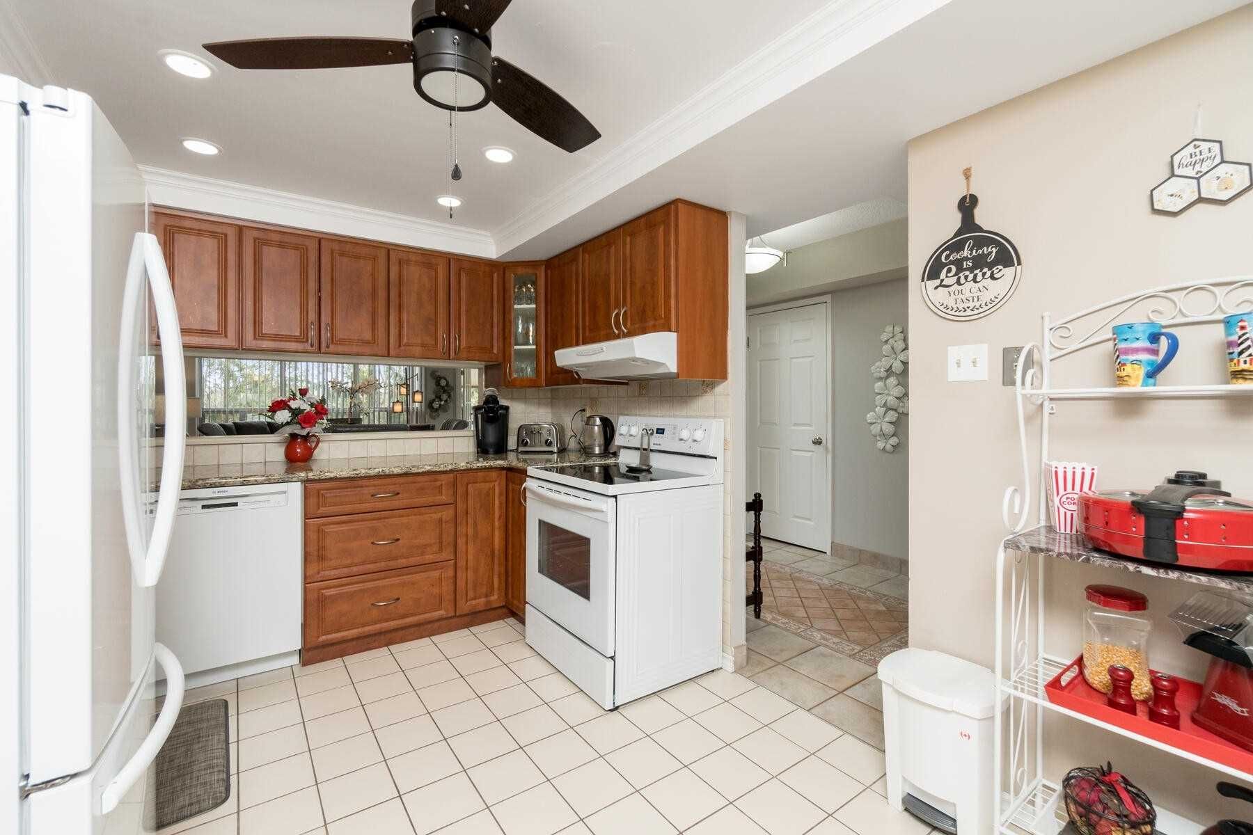 True Pride Of Ownership Shows In This Attractive And Spacious Condo With Easy Accessible 2nd Floor Location. Eat In Kitchen Offers 3 Appliances, Pantry, Pot Lights, Granite Counters, Ceiling Fan, & Ceramic Floor. Elegant Open Concept Living/Dining Room Combination W/French Doors Access To A Lovely Solarium W/Ravine View. Spacious Primary Bedroom, 3 Pc Ensuite, His/Hers Closets & 3rd Closet Too. 2nd Br Currently Used As Den, & Is Open To Solarium.Featuring In-Suite Laundry, 2 U/G Parking, & Owned Locker, Walking Distance To Shopping & Just Minutes To Hwy 410/407. Well Maintained Building With Renovated Hallways Throughout, Offering Great Amenities Incl. Pool, Exercise, & Party Rm.
