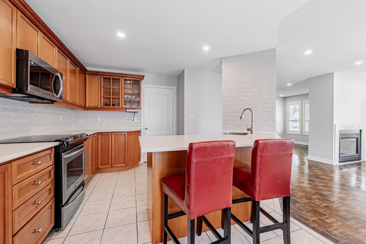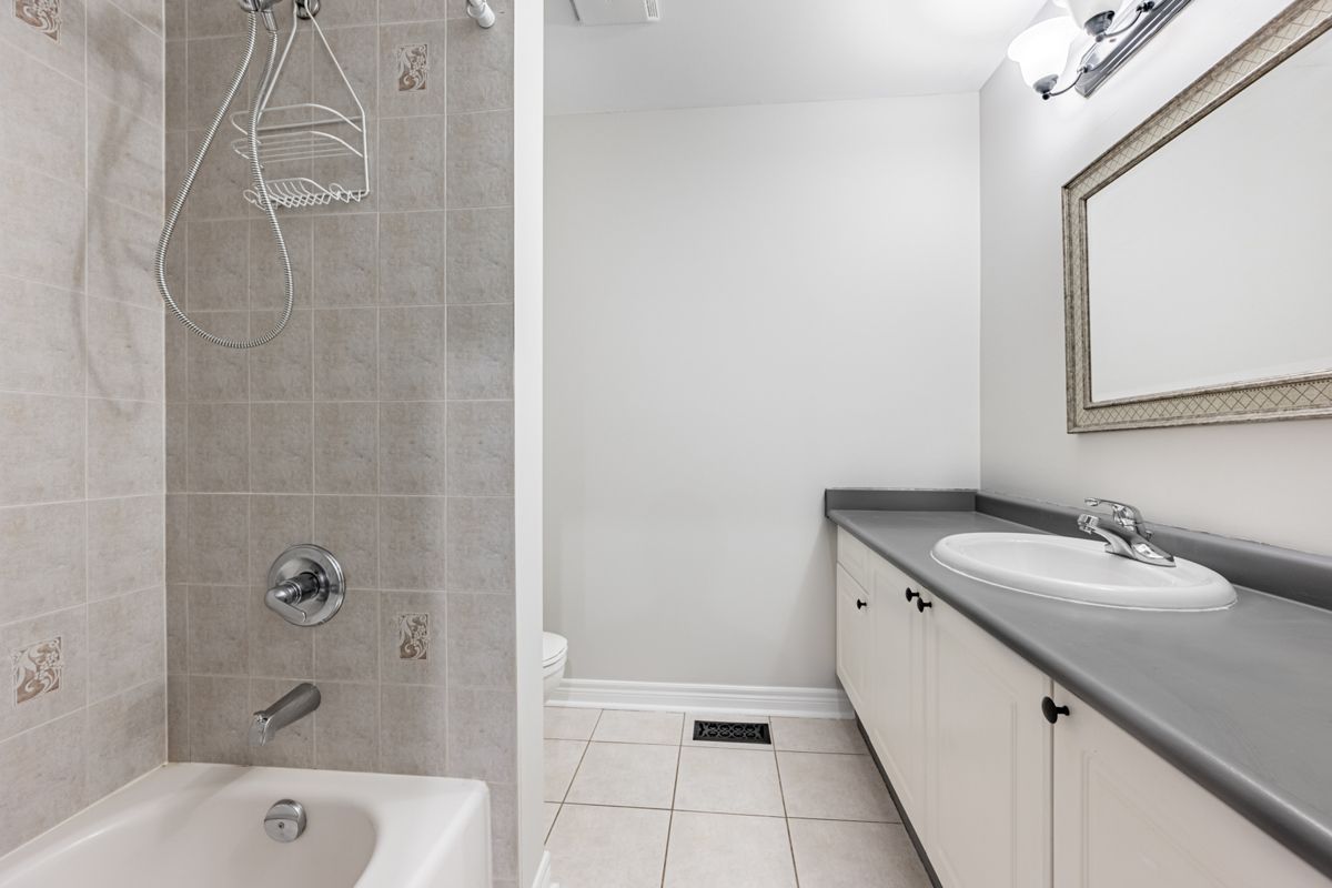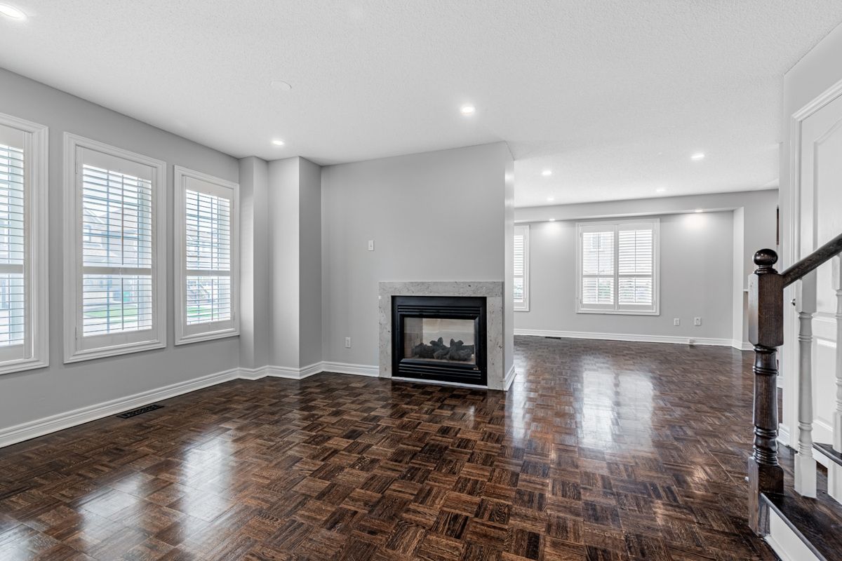 Situated on a large premium corner lot in a highly sought-after neighborhood, this stunning open-concept 4-bedroom, 4-bathroom home offers exceptional living. This beautiful residence boasts patterned concrete walkways and patio, an irrigation system, and a professionally finished basement with a 3-piece bath. Enjoy the elegance of a solid oak staircase and the convenience of a carpet-free interior. The spacious master suite features a luxurious 5-piece ensuite and a walk-in closet. The extended kitchen offers quartz countertops and a walkout to the yard. Additional highlights include main floor laundry with garage access, ample natural light through numerous windows adorned with California shutters, pot lights (2024) throughout, and a fresh coat of paint (2024). Modern amenities such as a Wi-Fi thermostat and a double-sided gas fireplace add to the home's appeal. Ideally located near Mount Pleasant GO, recreation center, schools, and walking trails, this home comes complete with stainless steel fridge and stove, built-in dishwasher, washer and dryer, window coverings, electric light fixtures, garage door opener, central vacuum, and a BBQ gas line. Don't miss out on this bright and sunny gem!Pool Table, TV in Basement With TV Unit & Couch In Basement.