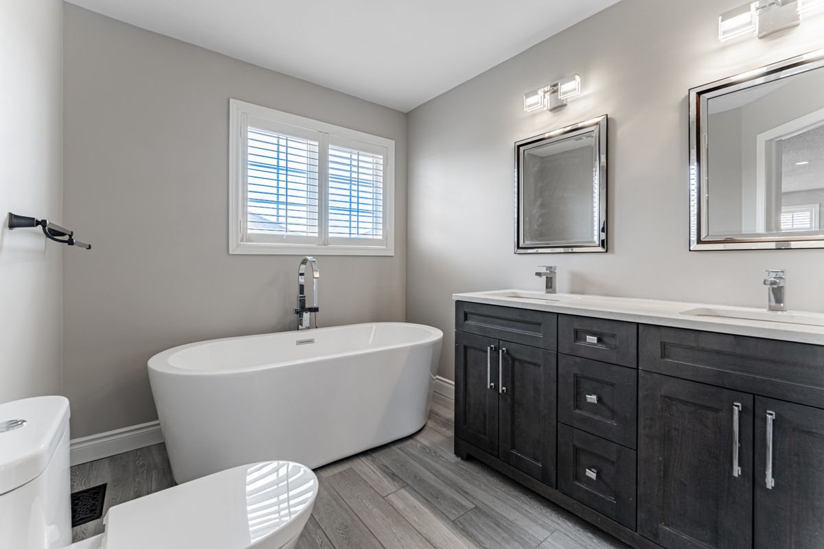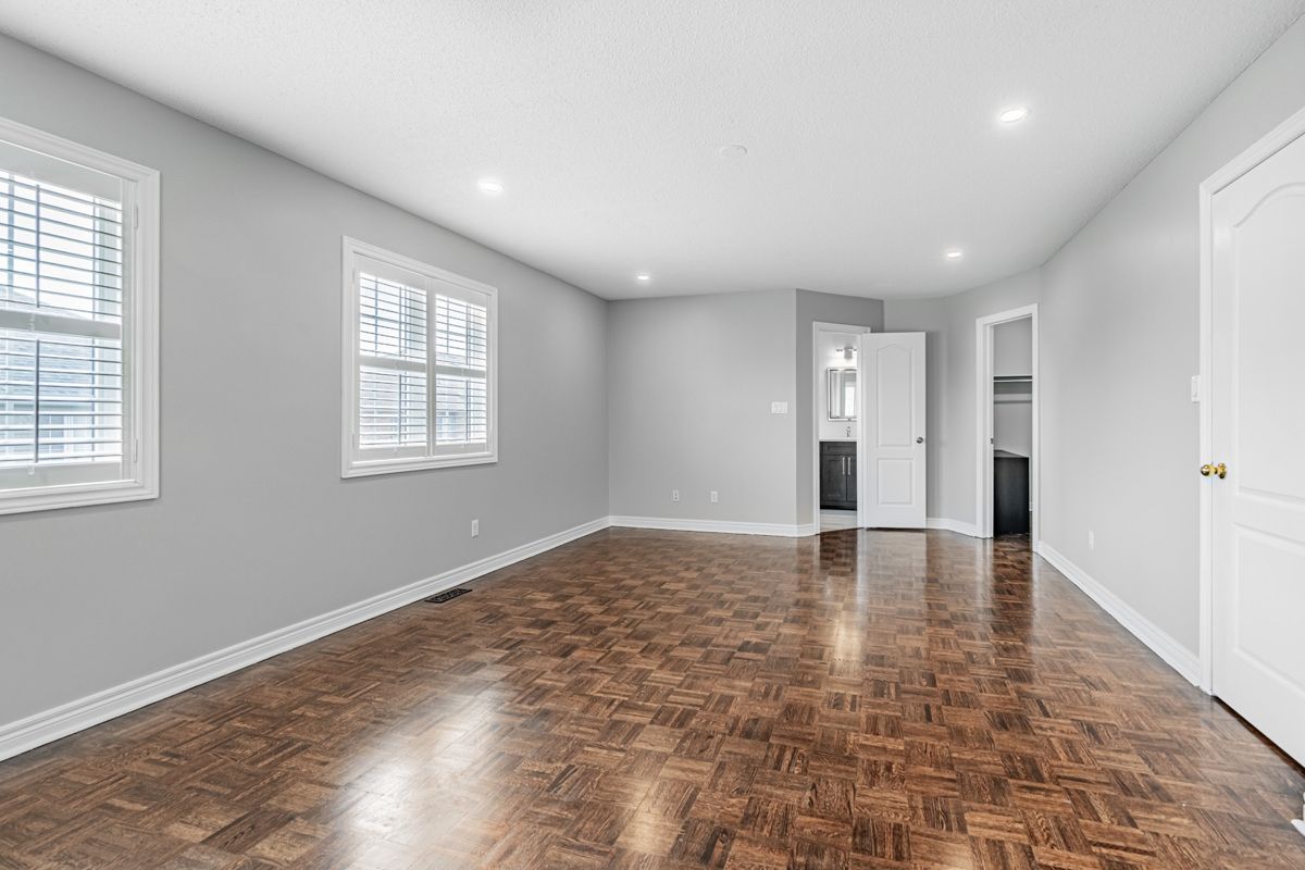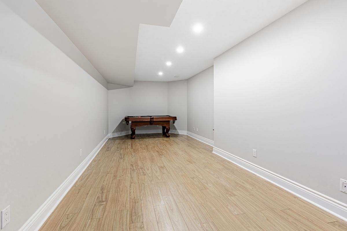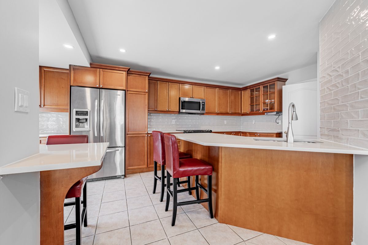 Situated on a large premium corner lot in a highly sought-after neighborhood, this stunning open-concept 4-bedroom, 4-bathroom home offers exceptional living. This beautiful residence boasts patterned concrete walkways and patio, an irrigation system, and a professionally finished basement with a 3-piece bath. Enjoy the elegance of a solid oak staircase and the convenience of a carpet-free interior. The spacious master suite features a luxurious 5-piece ensuite and a walk-in closet. The extended kitchen offers quartz countertops and a walkout to the yard. Additional highlights include main floor laundry with garage access, ample natural light through numerous windows adorned with California shutters, pot lights (2024) throughout, and a fresh coat of paint (2024). Modern amenities such as a Wi-Fi thermostat and a double-sided gas fireplace add to the home's appeal. Ideally located near Mount Pleasant GO, recreation center, schools, and walking trails, this home comes complete with stainless steel fridge and stove, built-in dishwasher, washer and dryer, window coverings, electric light fixtures, garage door opener, central vacuum, and a BBQ gas line. Don't miss out on this bright and sunny gem!Pool Table, TV in Basement With TV Unit & Couch In Basement.