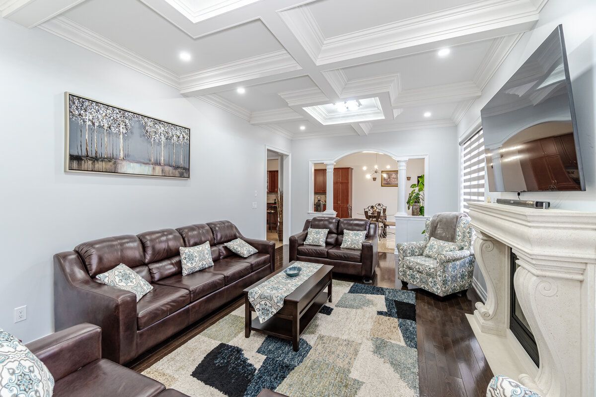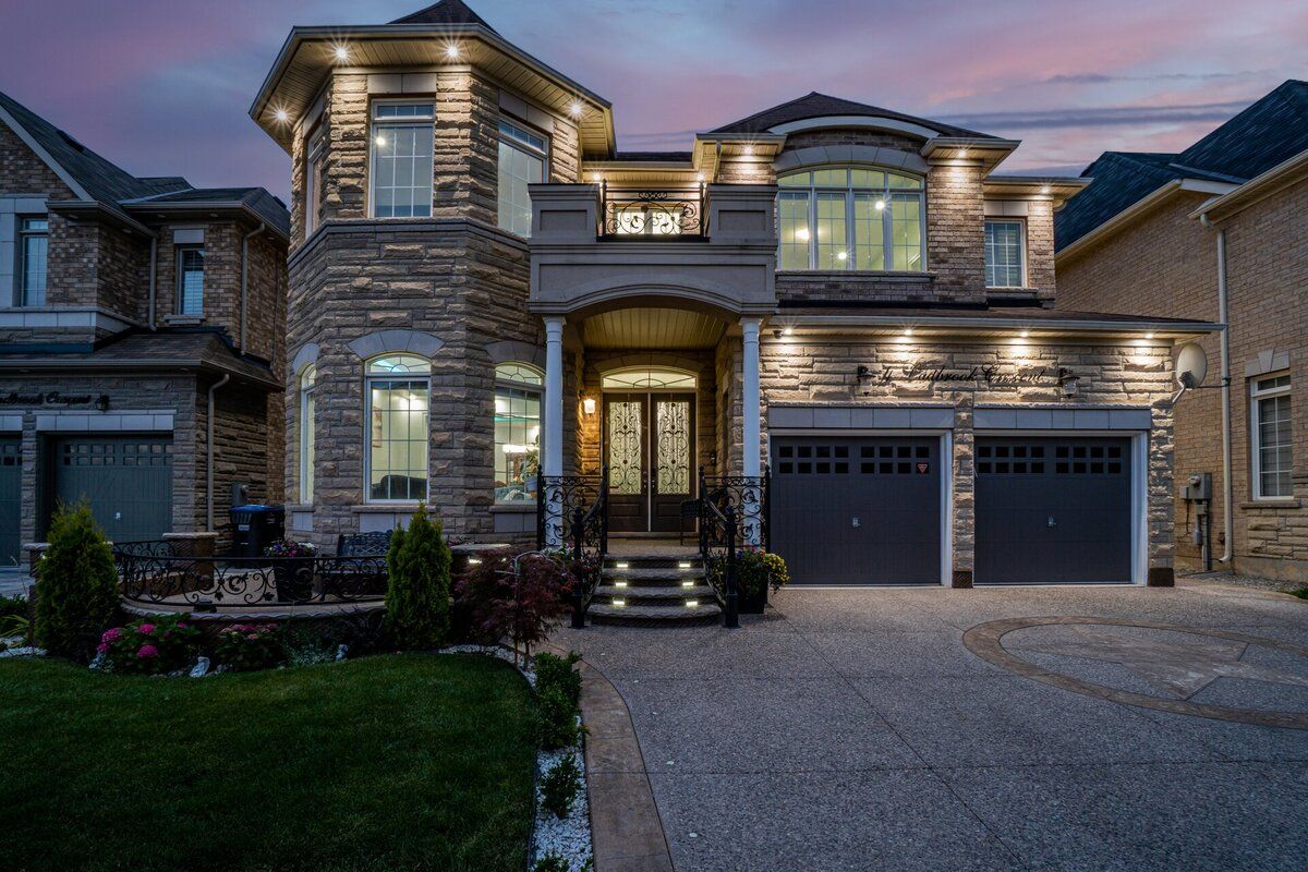 Absolutely Gorgeous 5 Bedroom fully upgraded with 10' ceiling on M/F & 9' on upper level, The Walnut 4410 sf Stone and brick elevation floor plan built by Royal Pine, Fully Hardwood in entire house with 24x24 Porcelain Tiles. Very well designed custom Wainscoting leads from M/F to upper level, 3 bedroom Finished Basement With Separate Entrance, Open Concept Living, Dining & family room has coffered ceiling with lighting. Office on M/F with built in Custom cabinetry, Modern Kitchen With Built In Stainless Steel Appliances, Centre Island, Breakfast area With Walk Out To backyard. M/F Laundry with custom cabinets. Primary Bedroom has W/I closet & 5 Pc Ensuite with upgraded Glass shower. All Bedrooms Are Very Spacious. No carpet in entire house..Loaded with Pot lights from inside & outside. Upgraded Exposed aggregate driveway and Stairs with custom lighting and Railings. Exposed aggregate poured on side and backyard.