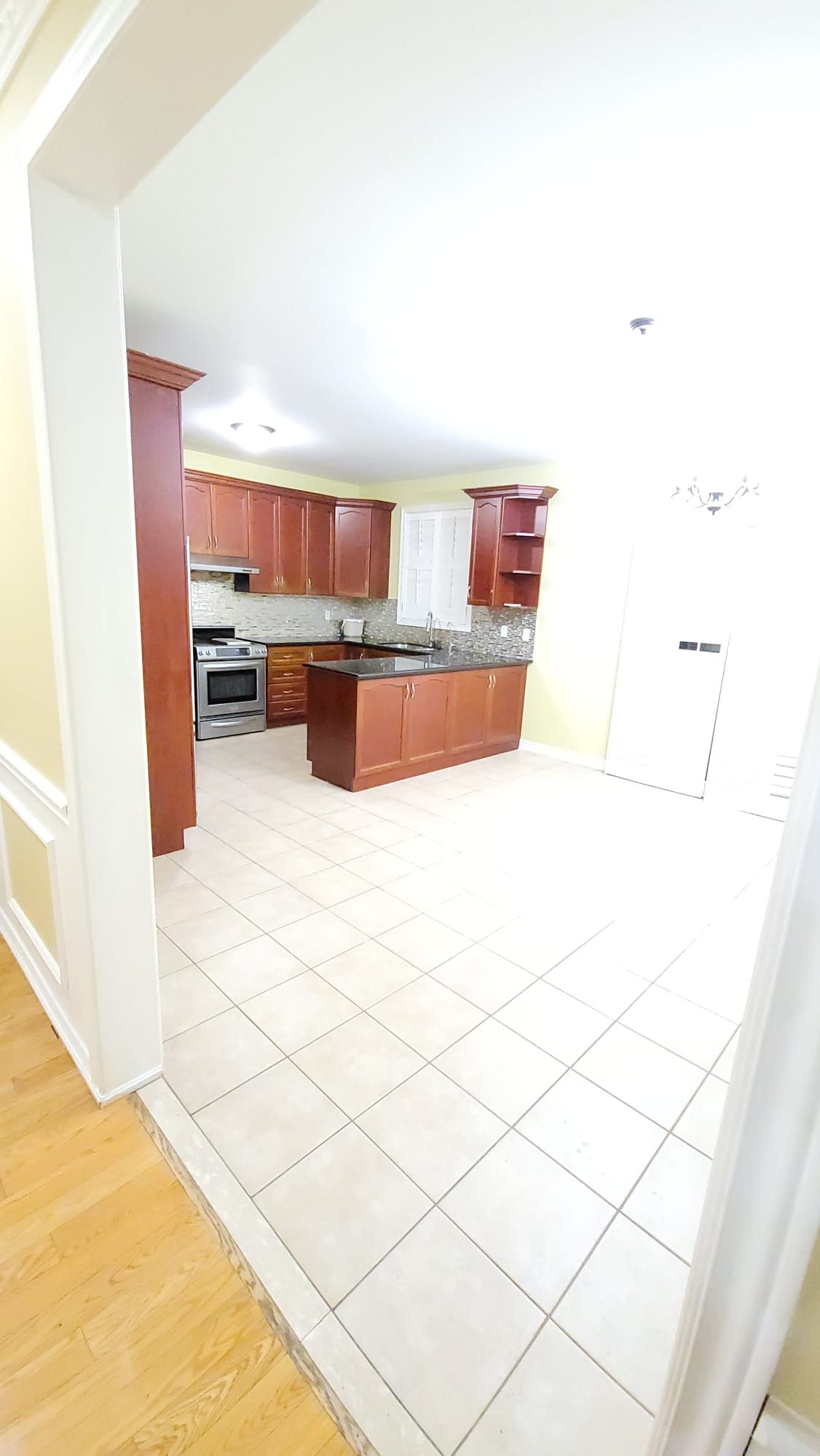 Concept Kitchen With Cherry Colour Cupboards, Marble Granite Counter Tops, Walk-Out Over Family