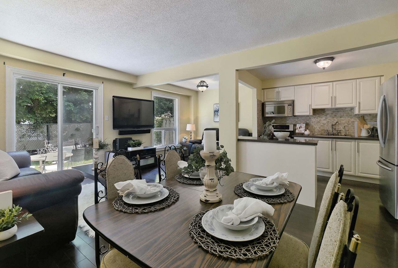 Perfect opportunity to become a homeowner in Brampton’s M section! Convenience plus - you can’t beat this location! Bright end unit townhome, feels just like a semi. Steps to Massey Park, trails, schools, churches, groceries, bank, transit, highway, and more. Open concept main floor with updated kitchen and large undermount sink, gas stove, new microwave rangehood, centre island for game nights and entertaining. Walkout to private fenced yard for your morning coffee and family bbqs. Huge primary bedroom with built-in closet, and two more spacious bedrooms for your growing family or office space to work from home. Lots of storage space. Updated main bath with walk-in shower. One car garage, 2 car parking. No neighbours behind.Condo corp maintains your grass in this quiet and low maintenance community! Outdoor pool for enjoying on sunny summer days. Updated kitchen, main bath, stairs, flooring throughout, & freshly painted. Maintenance includes VIP cable package.