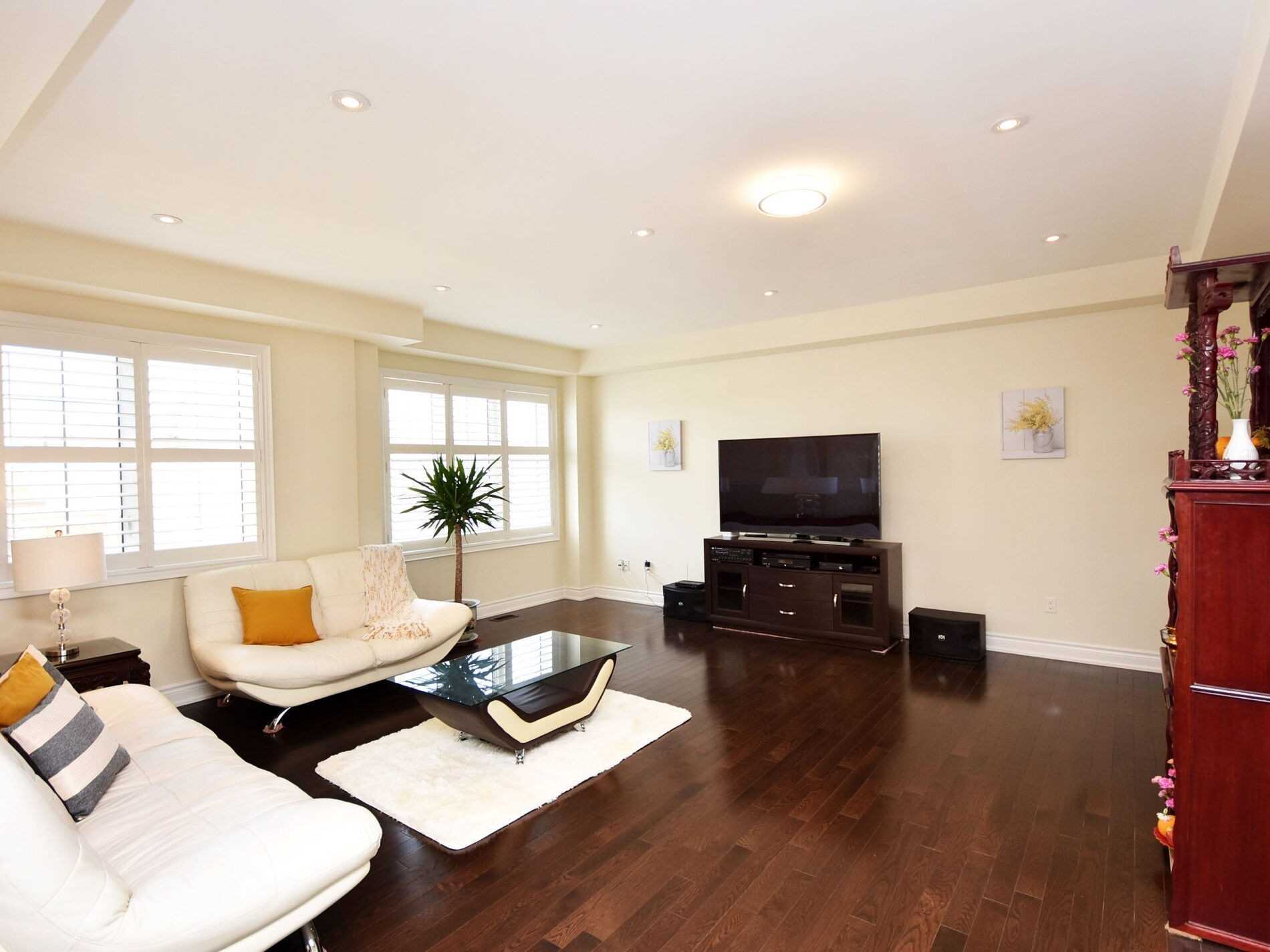 Hardwood Floor Combined W/Living California Shutters