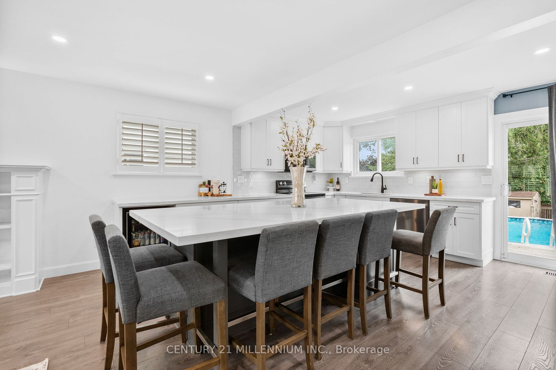 This is where modern living meets family warmth in the heart of Brampton! With 5 generously-sized bedrooms (one on the main floor for multigenerational living option) and an open concept living space, this home caters to the vibrant energy of a growing family. It features a modern Kitchen boasting quartz counters, loads of cupboard space, and a large island perfect for morning family gatherings. Bonus rec space on the lower level with built in desk area for perfect workstation, the kids to game or do their homework! Step outside and enjoy a fully fenced spacious yard ideal for BBQs, birthday parties, or watching the little ones play and grow with an above ground pool! Located in the desirable M section with loads of nearby parks, schools, shopping & amenities! Proximity to public transit & major highways. Large windows throughout that bathe each room in natural light,