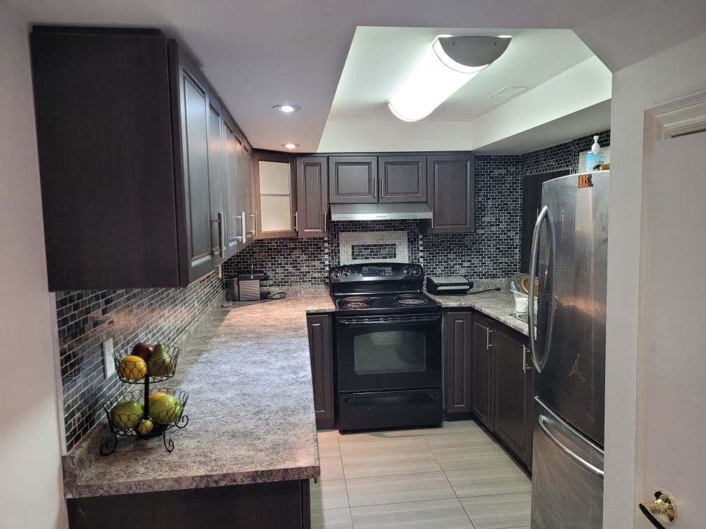 Bright & Spacious 1 Bedroom Basement Apartment In Excellent Location, Having A Large Living Room, living and dinning combined, Full-Size Beautiful Kitchen, Ensuite laundry, A Big Size Washroom With a Glass Door Standing Shower, Pot Lights, Landlord living upstairs, Close To Schools, Shopping And All Amenities Close To Mall, Bus Stop, School, Grocery Stores, Airport, Banks. Don't Miss Out This Incredible Opportunity!S/S Fridge, Stove, S/S Exhaust Hood, Ensuite Washer And Dryer, 1 Parking Spot On Driveway, Tenant Pays 30% of Utilities