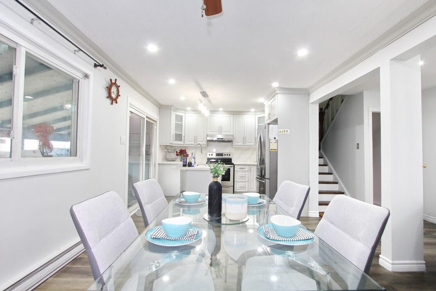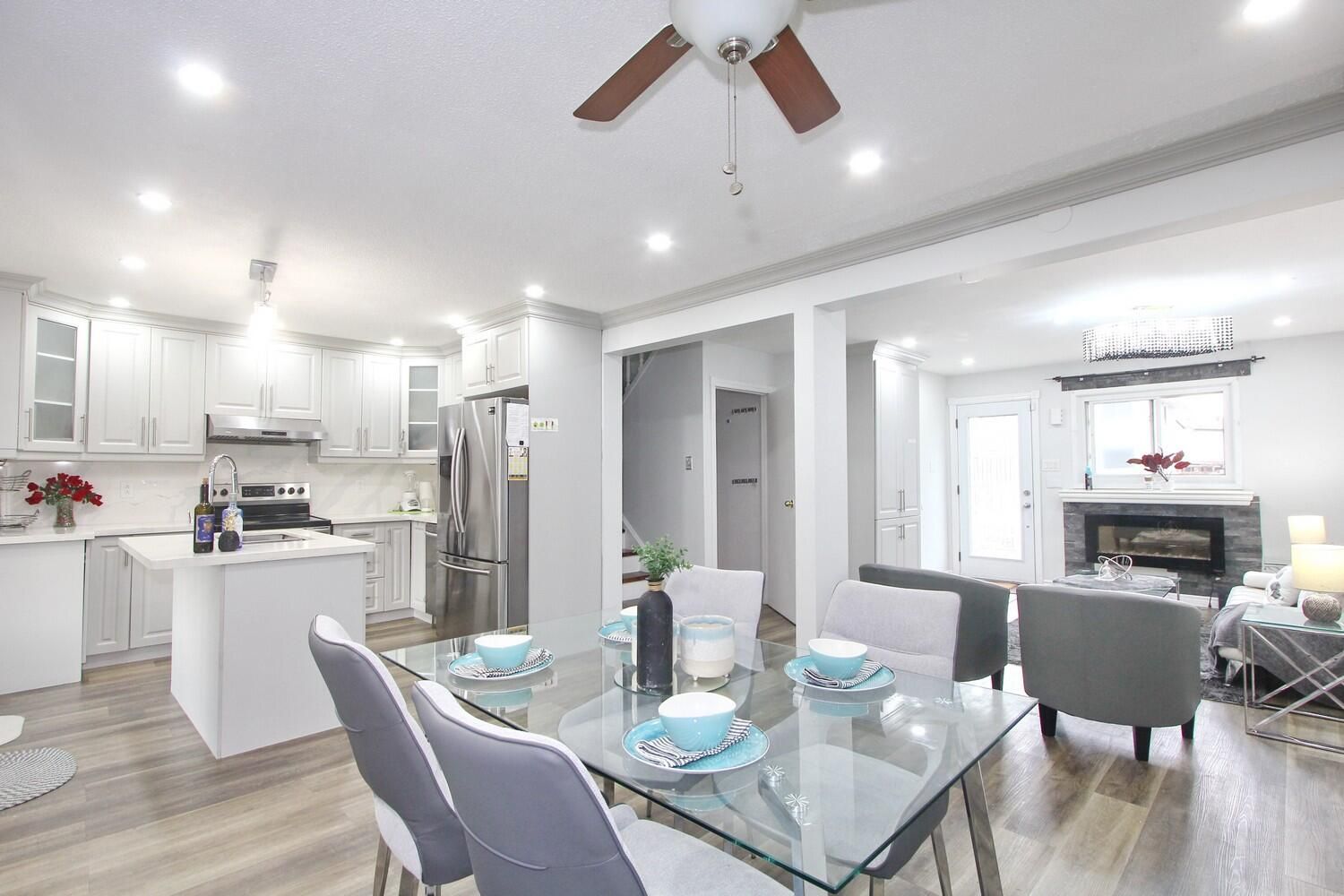Beautiful And Spacious Freehold Town House With In Very Close Proximity To Park And All Major Amenities. This House Is From Top To Bottom In 2019. Bedrooms Have Top Quality Laminate Flooring While The Living And Dining Have The Best One Can Desire With Sliding Door Leading To A Beautiful Deck And A Lovely Private Backyard. The Kitchen Is Updated With Brand New Stainless Fridge And Stove. The Basement Is Nicely Finished With A 4Pc Bathroom.Fridge, Stove, Washer, Dryer, Hot Water Tank, Ring Video Doorbell, Fireplace