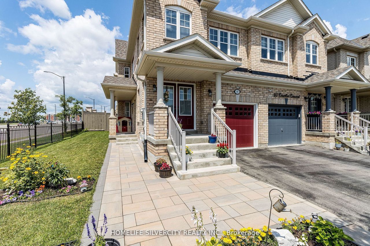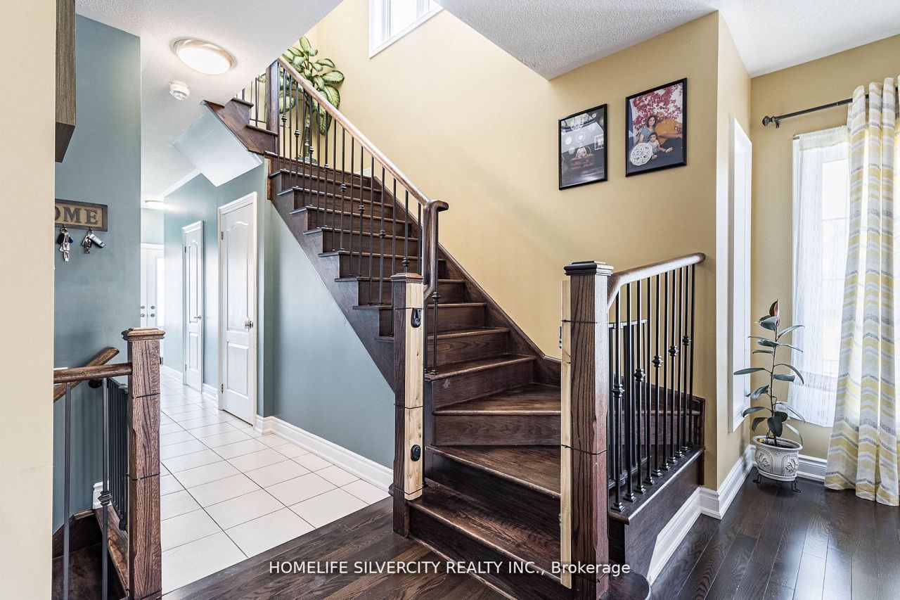 A Stunning Beauty to Own. Bright and Very Clean 4 Bedroom house with Premium Corner Lot in Credit Valley area ,approximately 1900sq ft and 9 Feet ceiling on Main Floor!! Separate Entrance to the Basement by Builder Covered with a Porch. Open Concept Layout, hardwood Floor in main Level, Hardwood Staircase with iron Spindles. New Laminate Floor in 2nd Floor. 4 Good Size Bedrooms, Master Bedroom comes with 4 PC Ensuite and Walk/In Closet. Laundry on Main Floor. Total 3 Car parking in House. New Stone Side Walk to the Basement. New professionally developed huge side yard & backyard Lawn. Many Extra Size Window for Natural Light flow in the entire home.Walking Distance to All Amenities & Mount Pleasant Go Station.